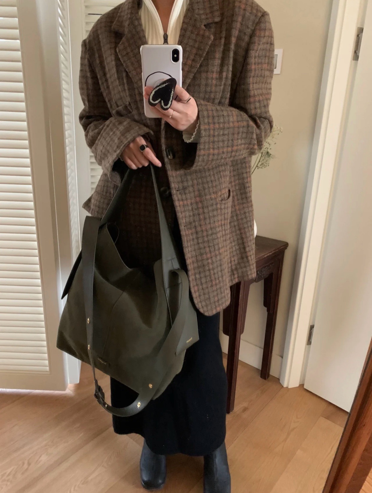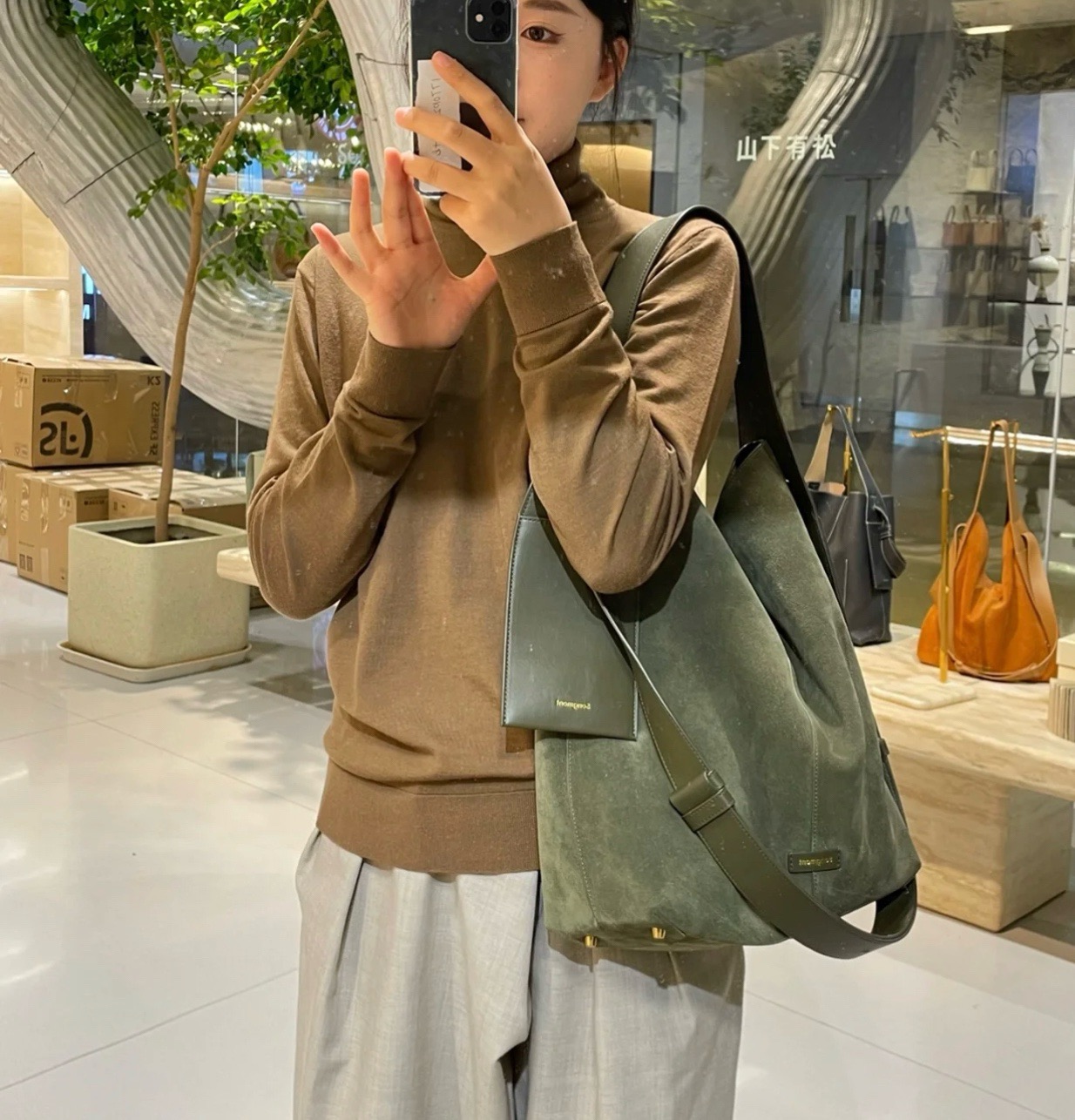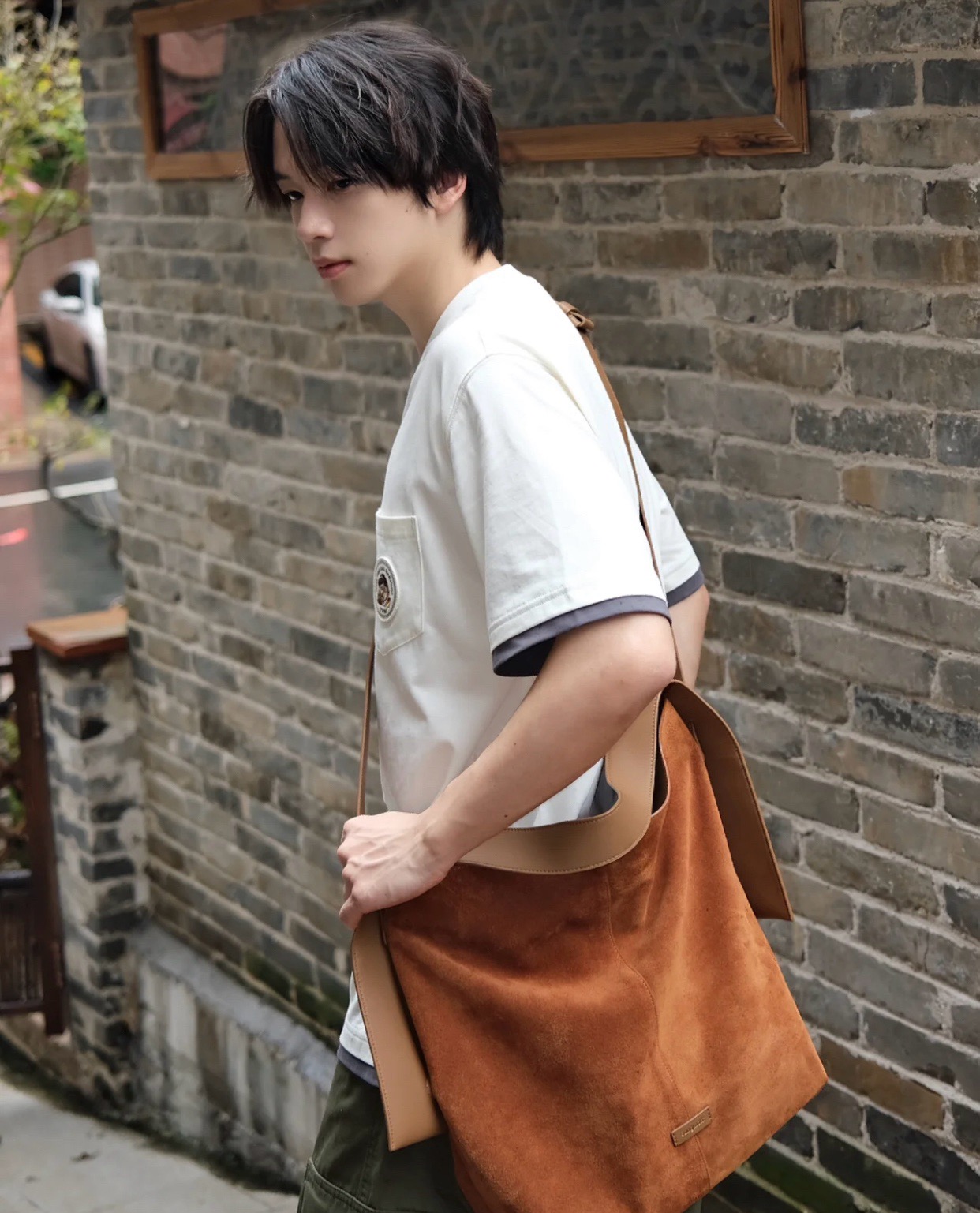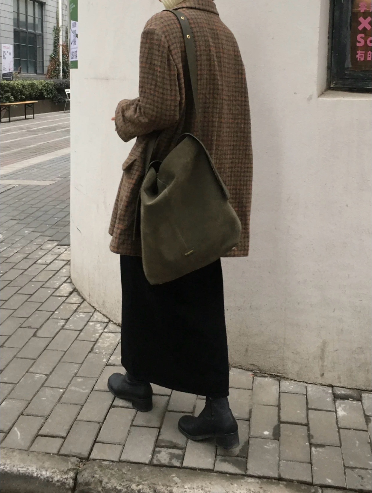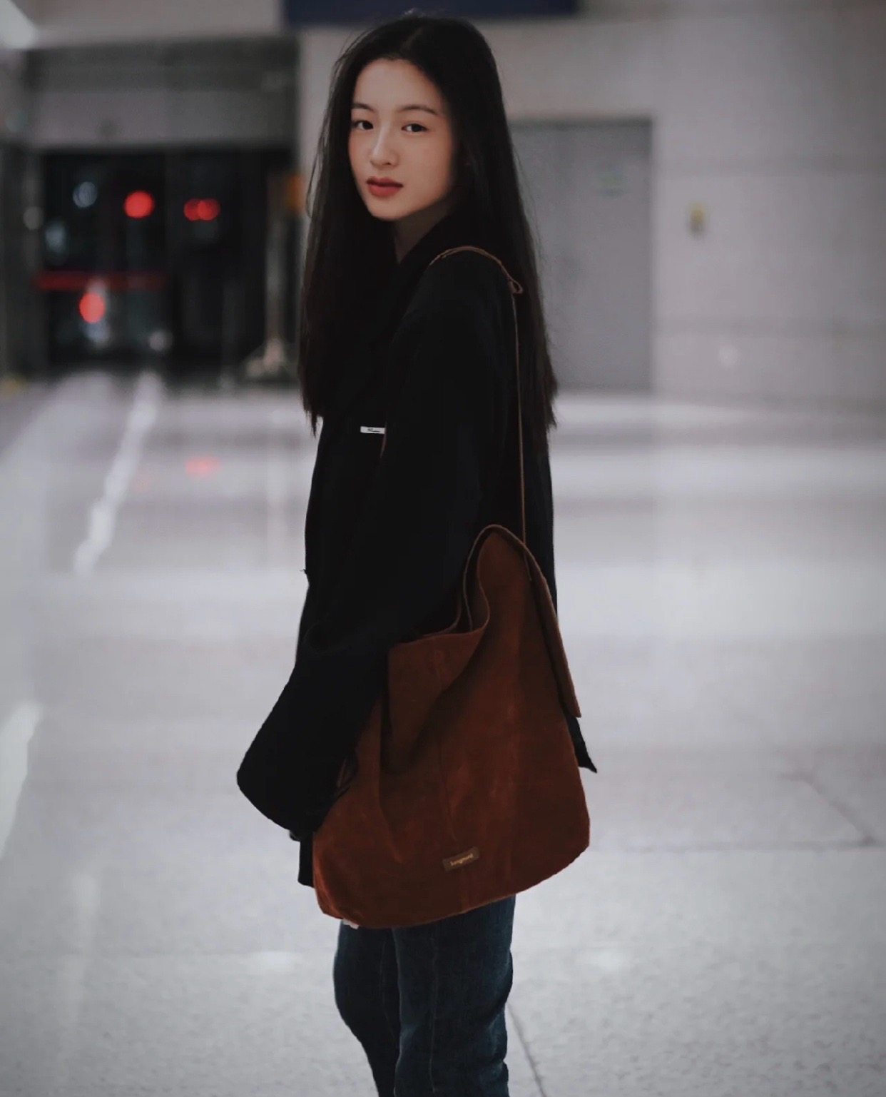 高圆圆同款!菘2580+!大号麂皮挂耳托特包通勤牛皮单肩手提包女,