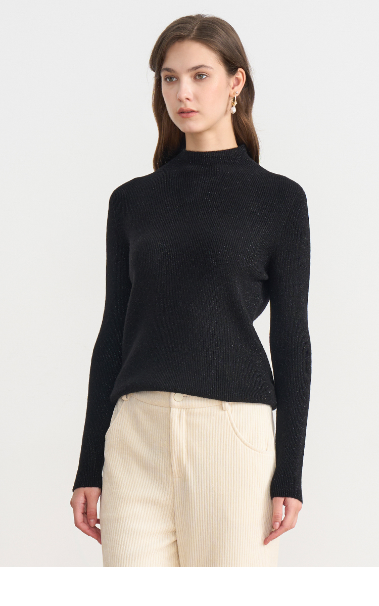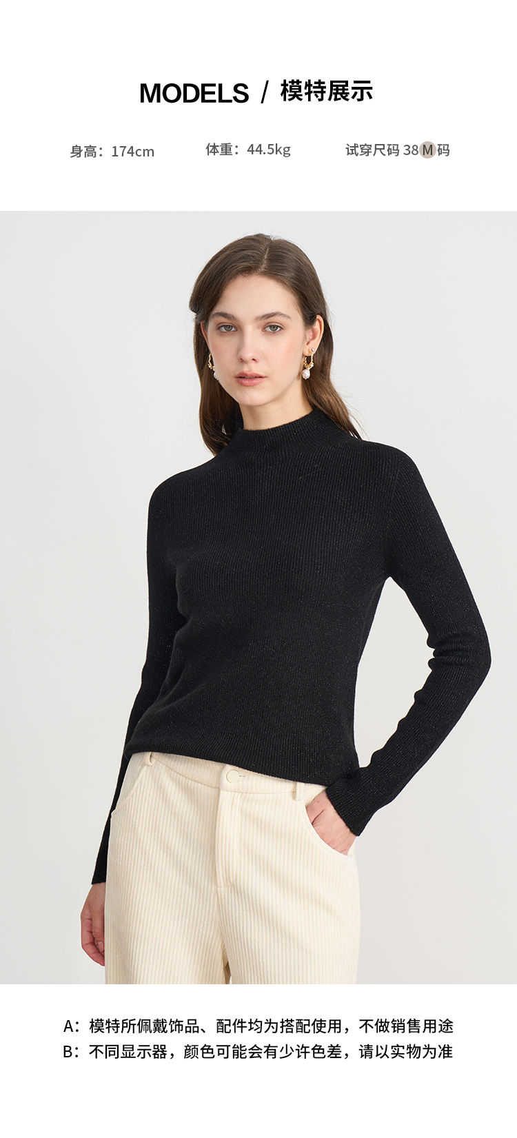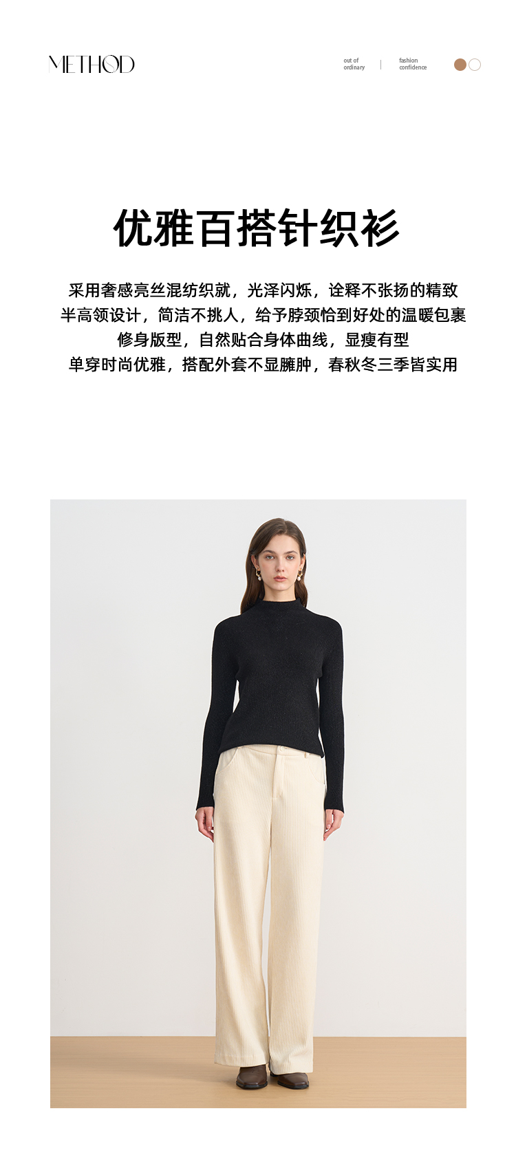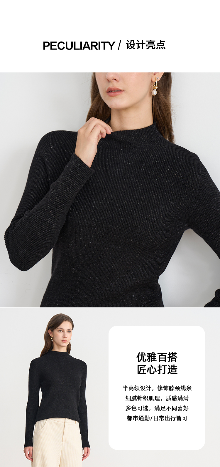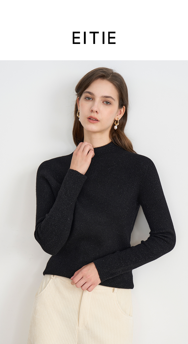 【金葱高领羊毛针织衫】EITIE爱特爱精致极简打底秋季新款针织衫D2501905