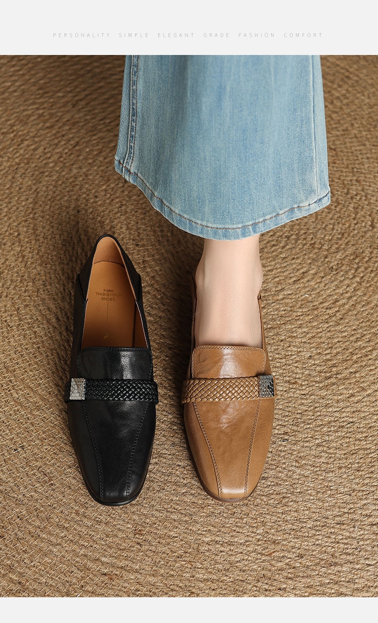 【预售5天】法式复古超软乎低跟小皮鞋女新款真皮方头中口单鞋通勤一脚蹬乐福鞋HCYYHD&6242