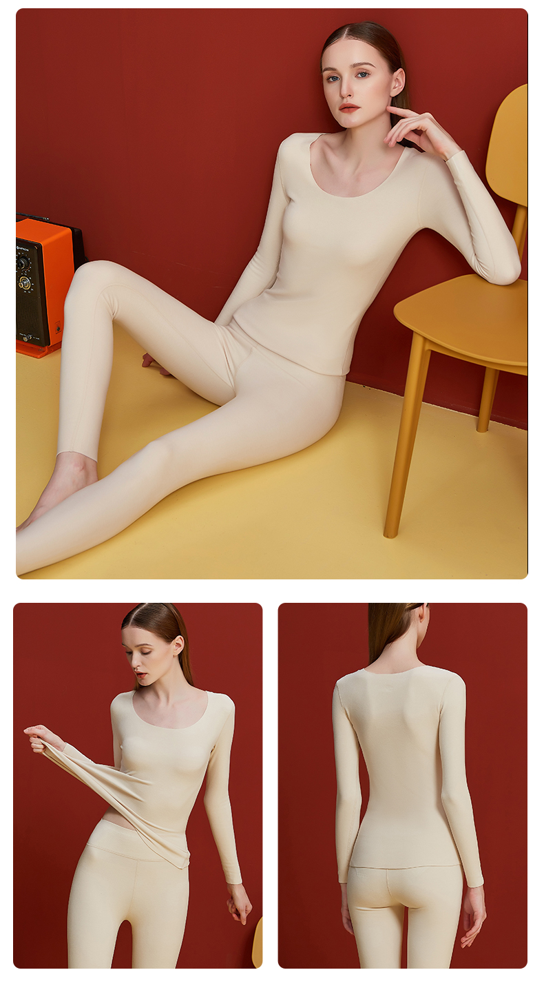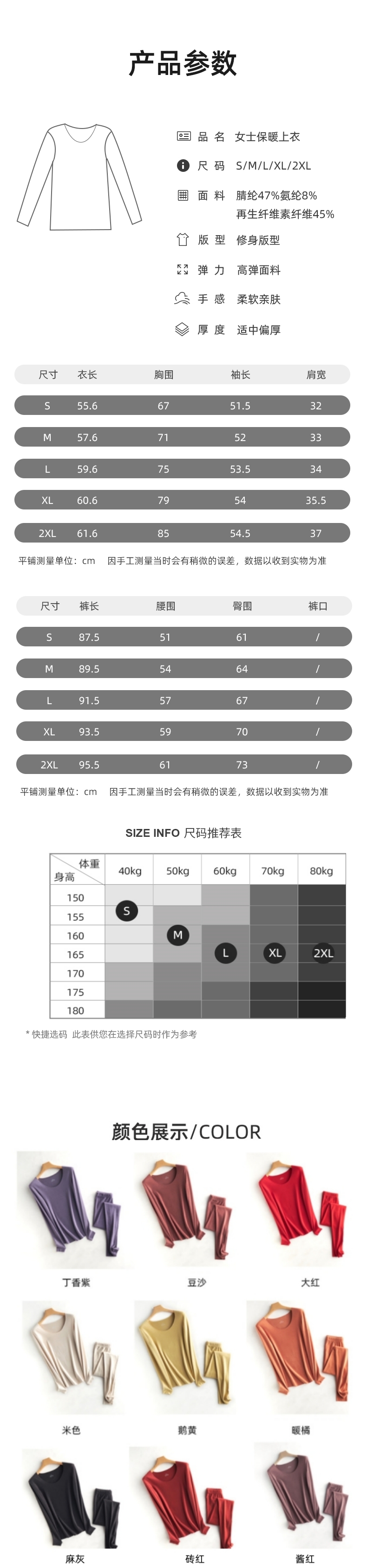 weyo秋冬新款女士双面无痕经典圆领亲肤舒适上衣保暖打底套装A10301、A10401