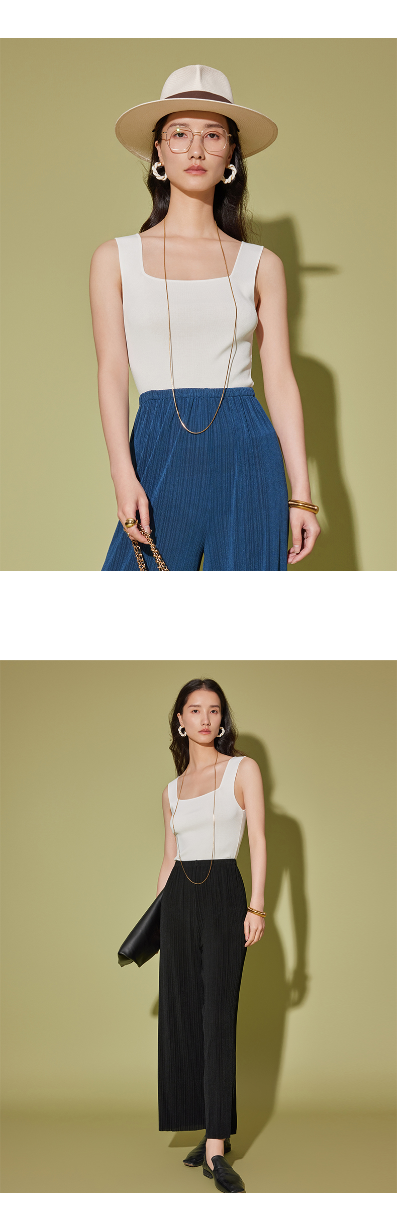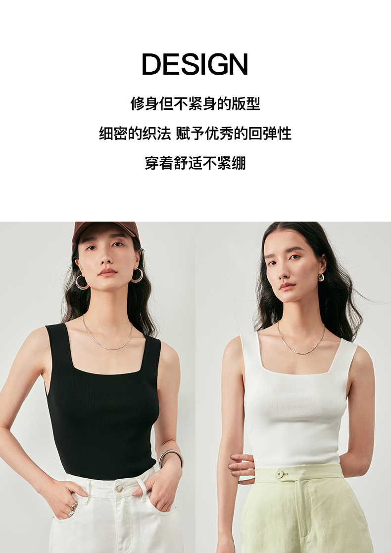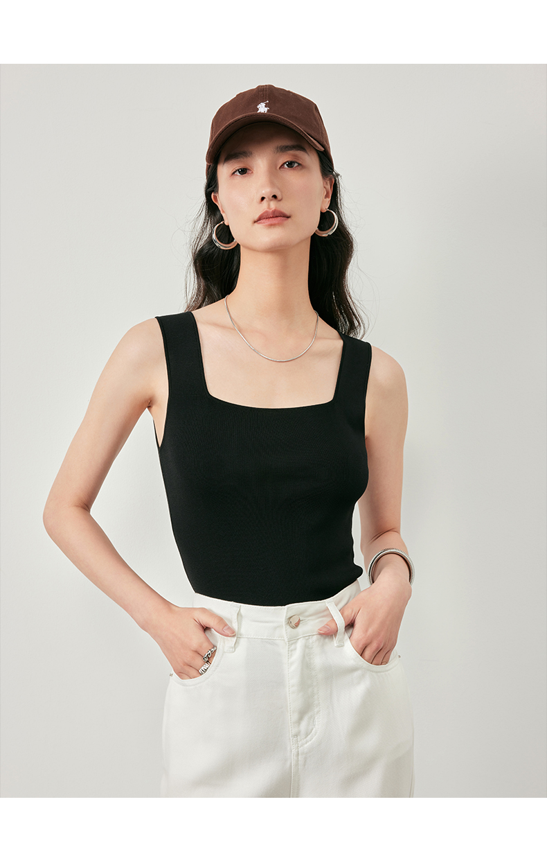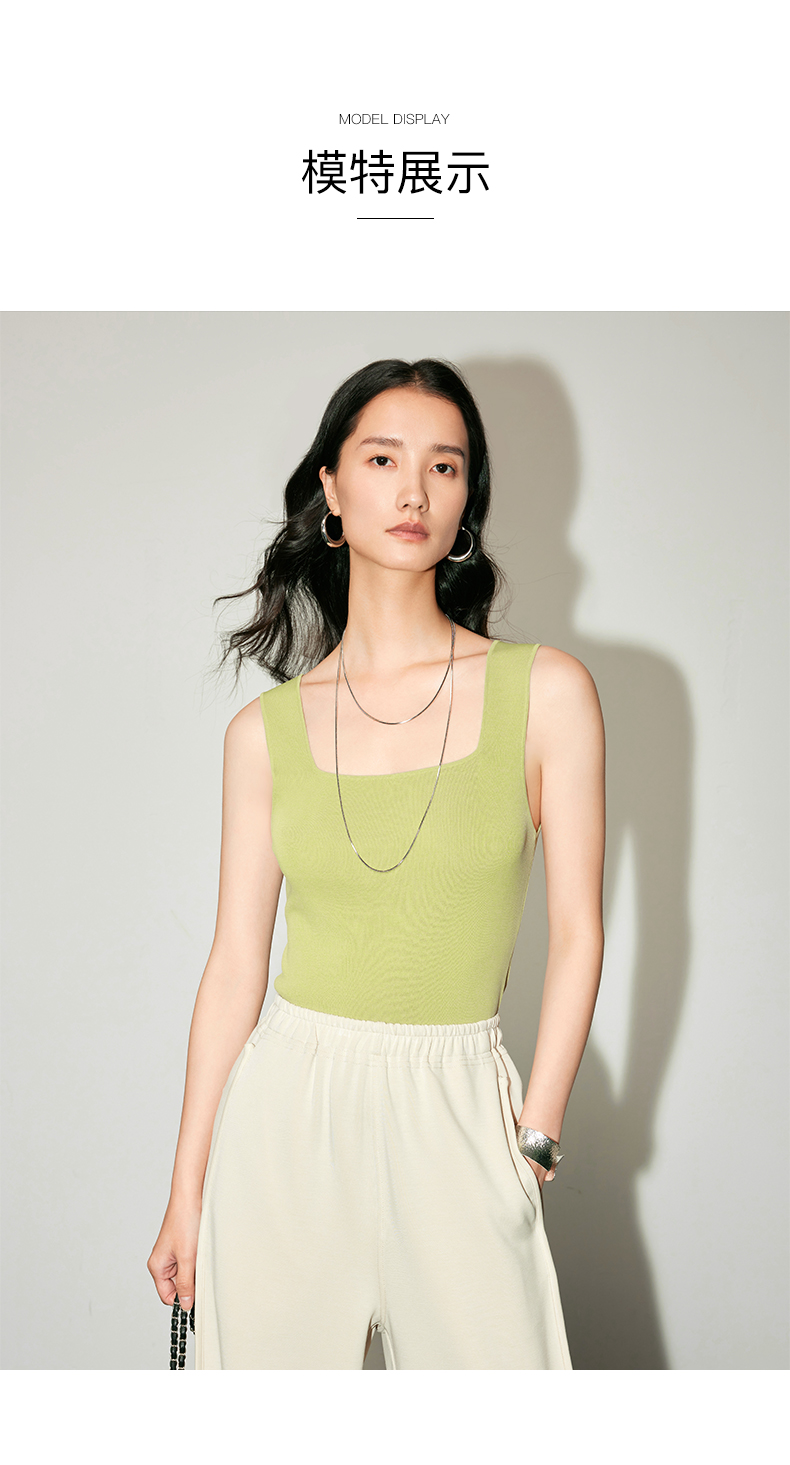 IN AND ON53456女士夏季新款背心打底凉感冰曲U领针织百搭宽松显瘦上衣