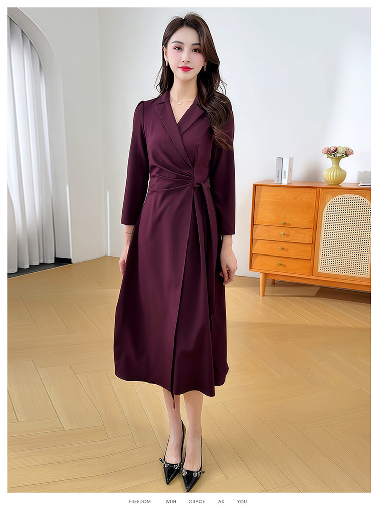 QYM 26809-Y收腰长袖连衣裙气质优雅中长款A字裙