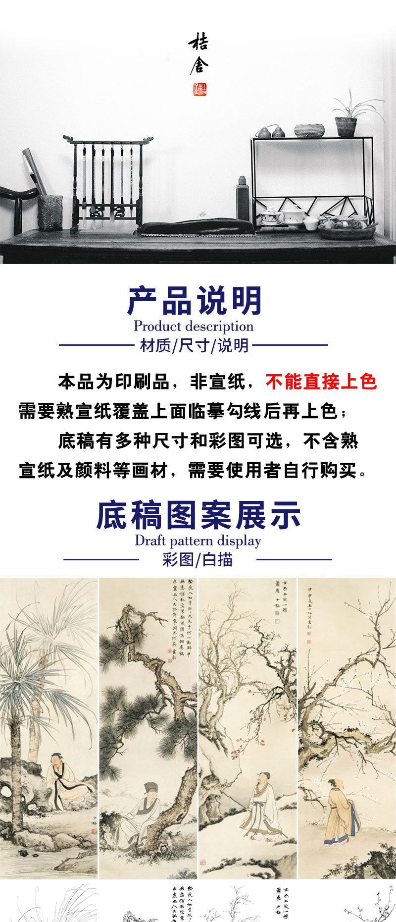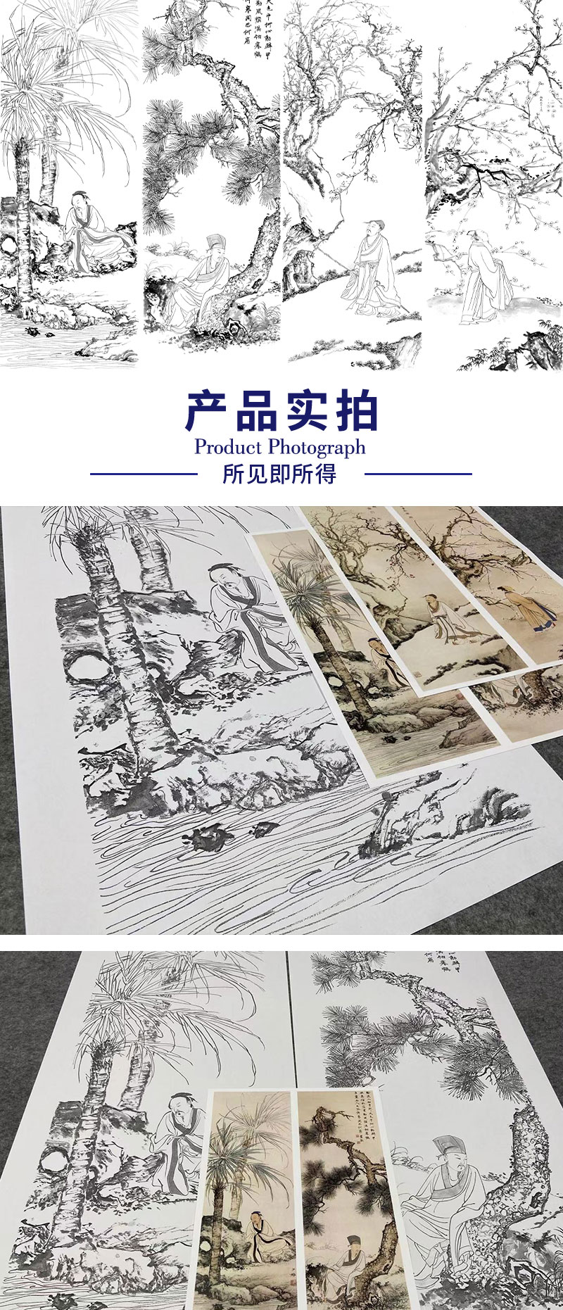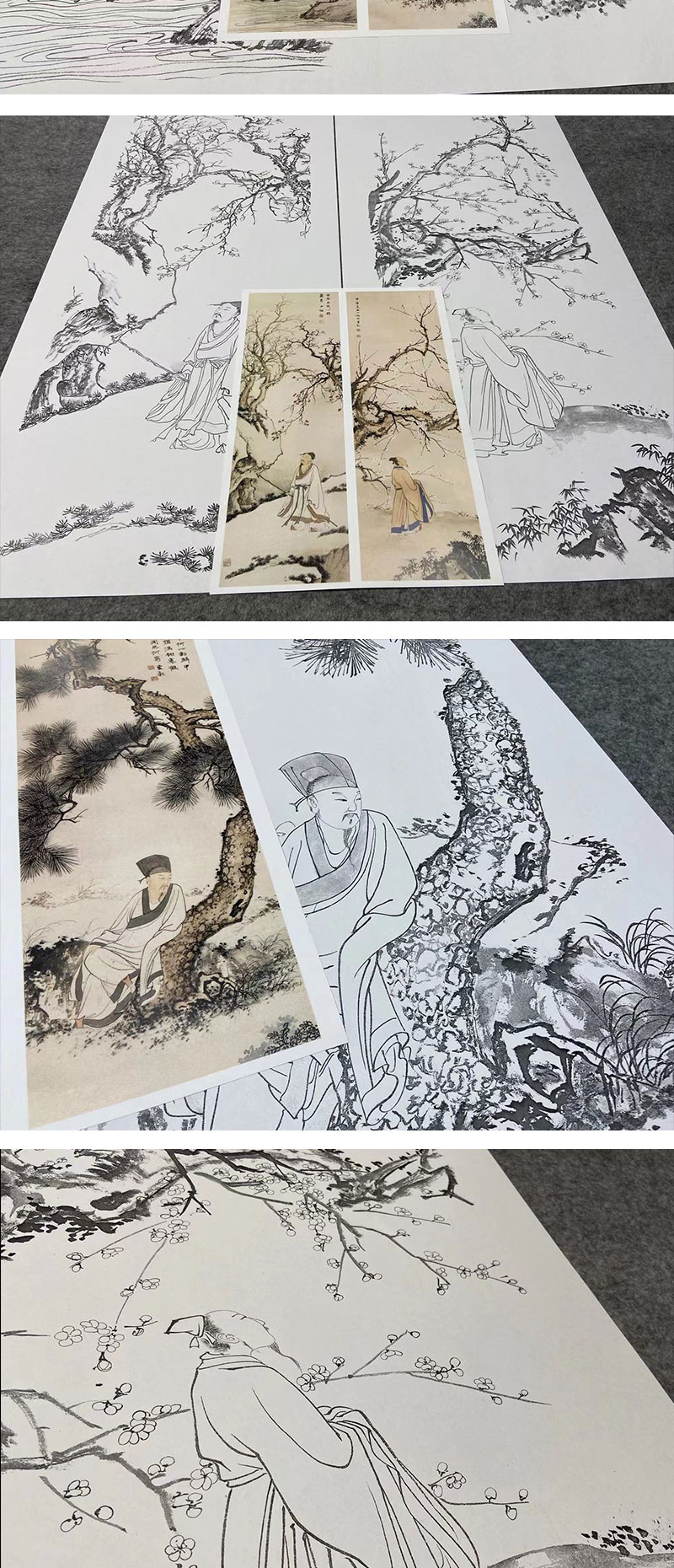 【四条屏】陈少梅工笔画白描底稿山水传统人物临摹勾线高清打印稿CR69