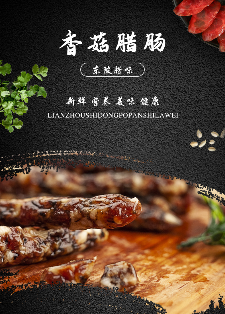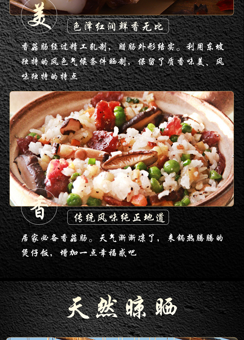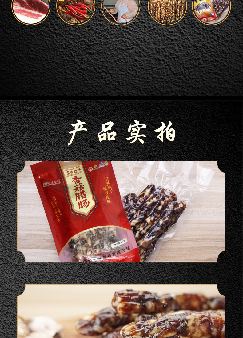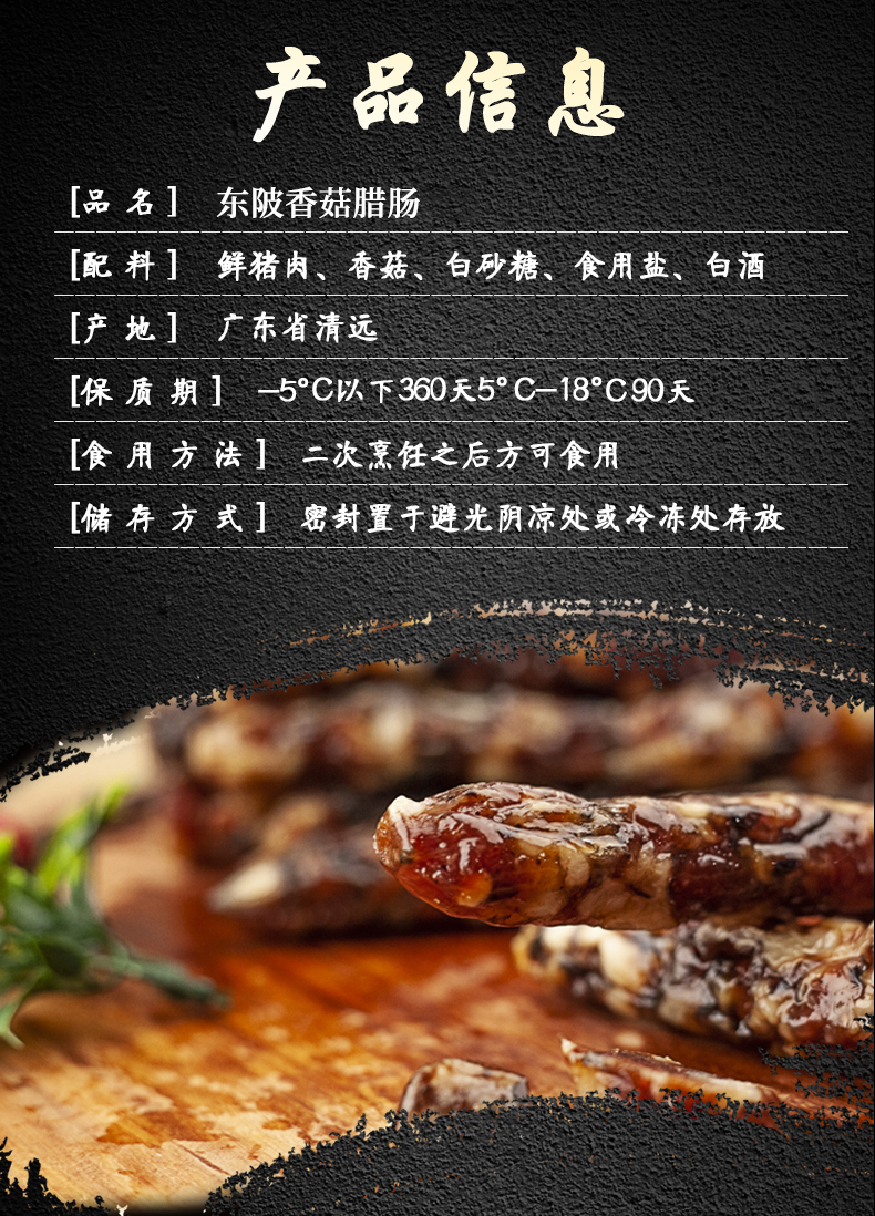 连州特产粤众佳源 东陂香菇腊肠袋装400g 传统风味自然风干