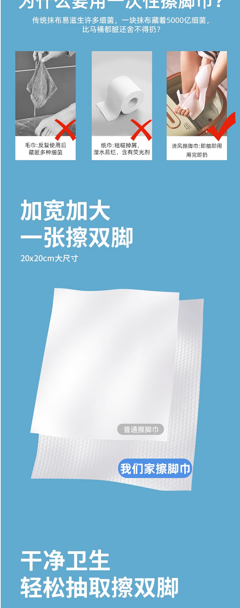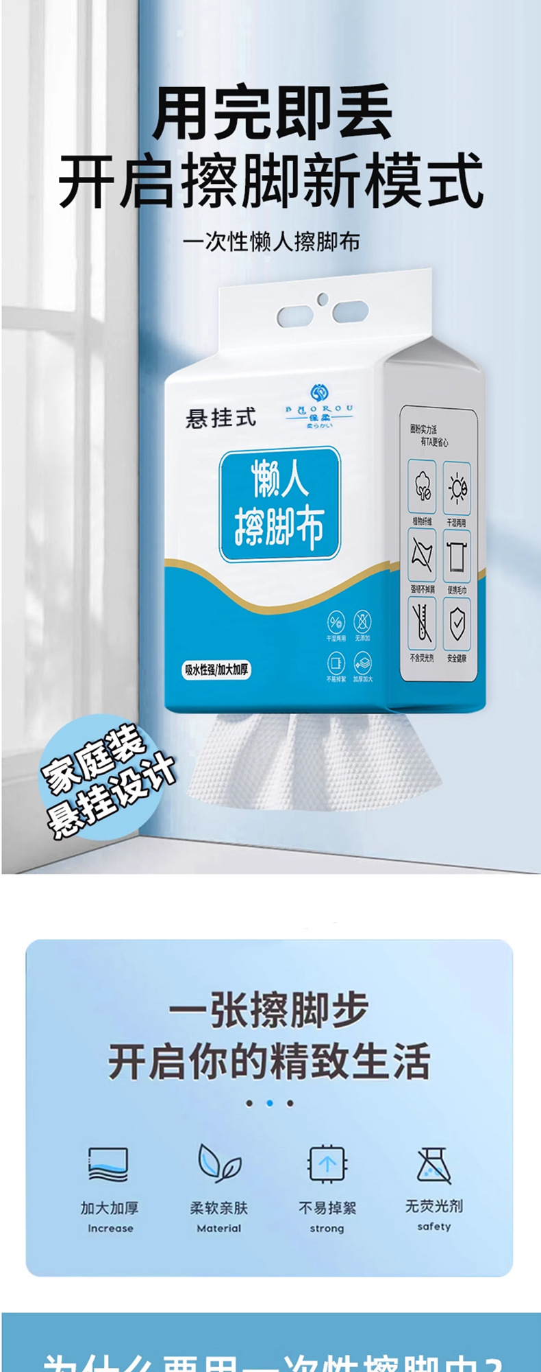 【用完即丢,擦脚新模式】一次性擦脚巾 懒人抹布 吸水擦脚布 干湿两用加厚悬挂式擦脚纸-QQ