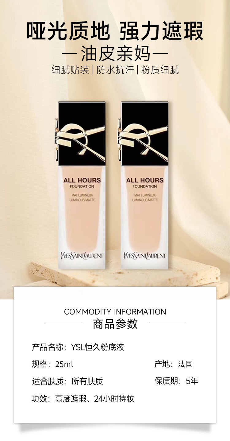 YSL圣罗兰2022新款ALL HOURS恒久持妆粉底液养肤美肌粉底