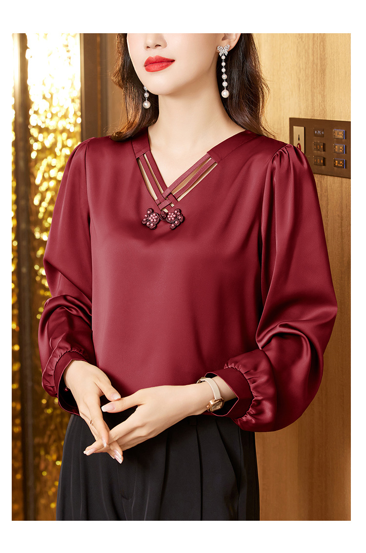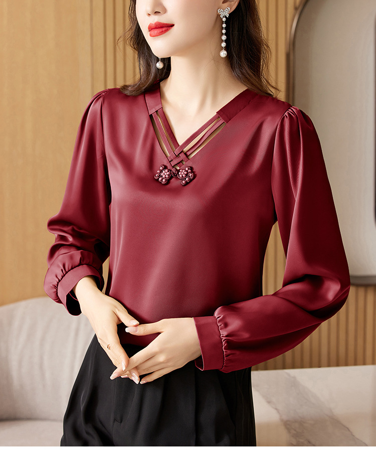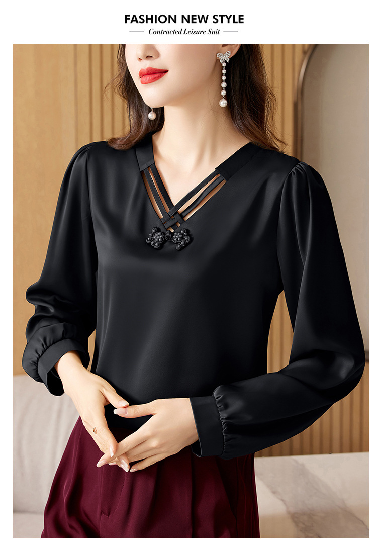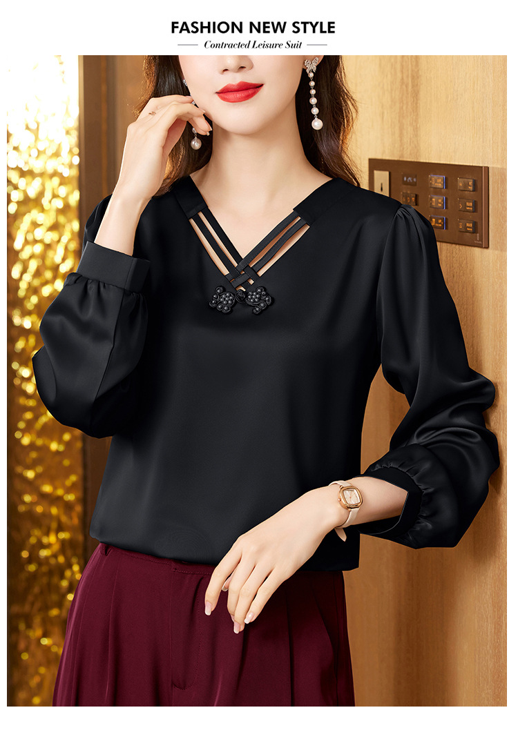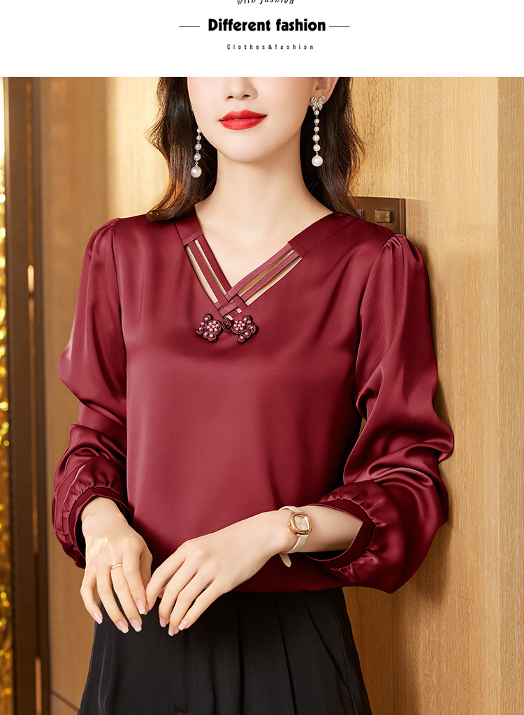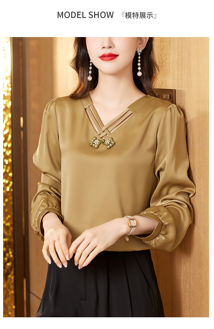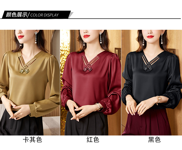 SMZ15139中国风盘扣衬衫女春季2024新款长袖缎面上衣复古洋气中年妈妈小衫