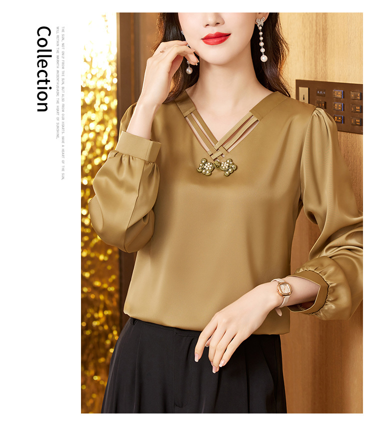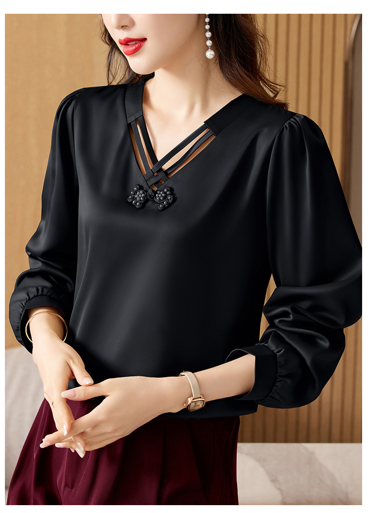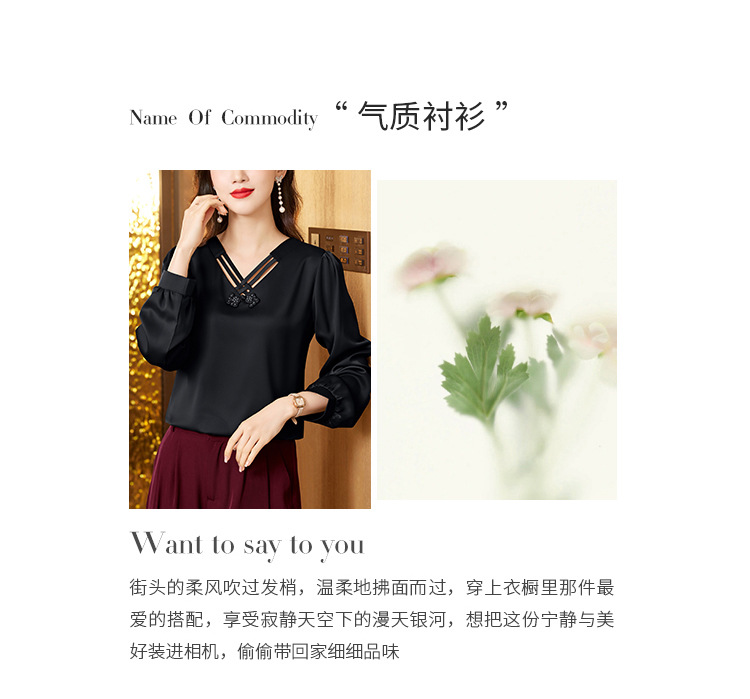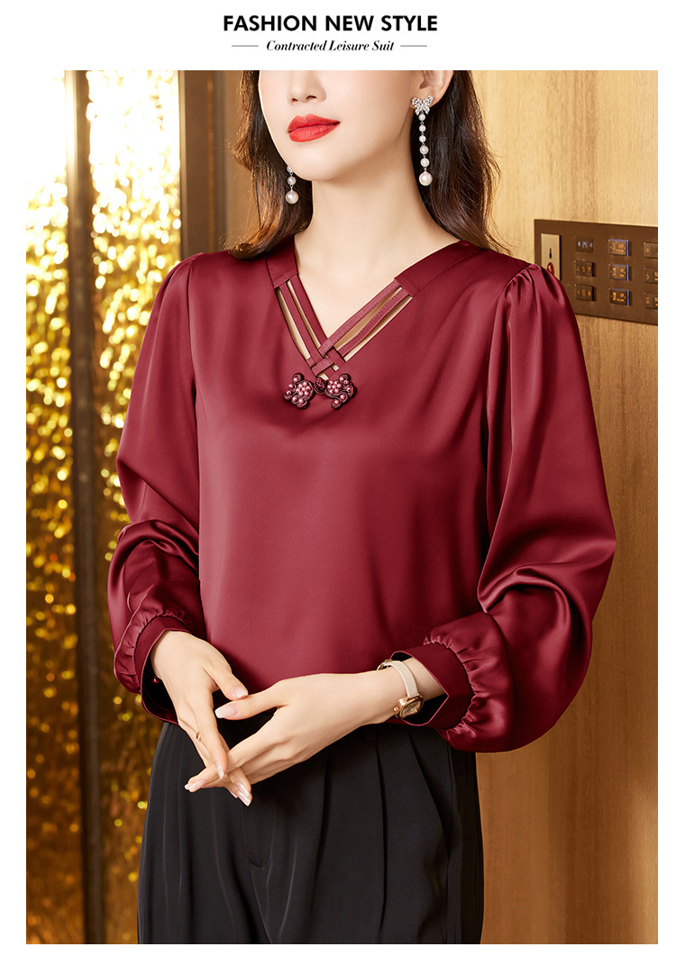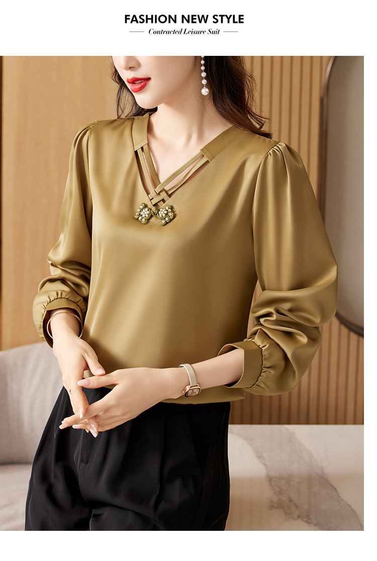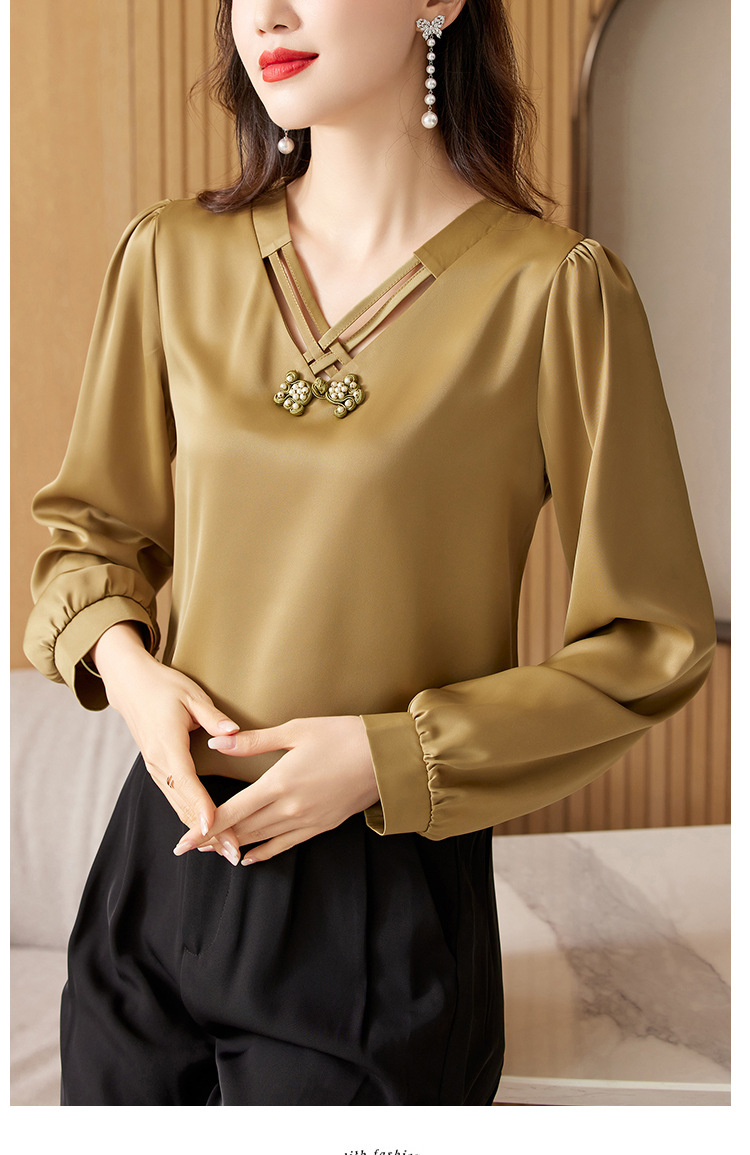 SMZ15139中国风盘扣衬衫女春季2024新款长袖缎面上衣复古洋气中年妈妈小衫