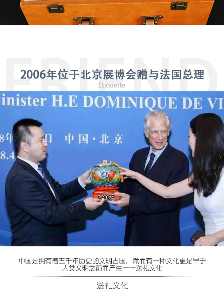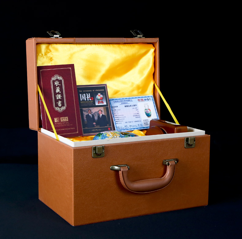 【彼达思】景泰蓝 镶和田玉和合平安花瓶φ138*275
