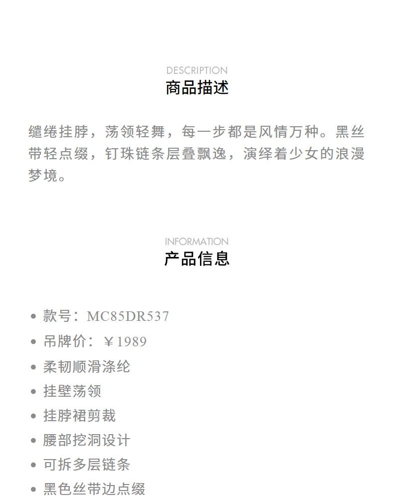 【贵雅日常-商场同款】MAXRIENY浪漫少女感挂脖荡领连衣裙(货号:MC85DR537)
