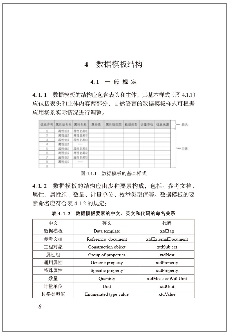 为建立工程建设领域统一的业务数字化环境,推进工程建设数字化实施,提高信息应用效率和效益,特制定本标准。本标准为推动国家工程数据信息模型技术发展,规范数据集成应用,在充分总结我国工程数据信息模型技术研究成果和应用实践经验,借鉴参考国内外相关标准,并广泛征求意见的基础上编制而成。本标准具有基础性、框架性、指导性作用,为促进数据信息模型技术在工程领域全生命周期的系统应用提供重要支撑。 本标准共分为7章和3个附录,主要技术内容包括:1.总则、2.术语、3.基本规定、4.数据模板结构、5.数据模板创建、6.数据模板应用、7. 数据模板管理、附录A、附录B、附录C。