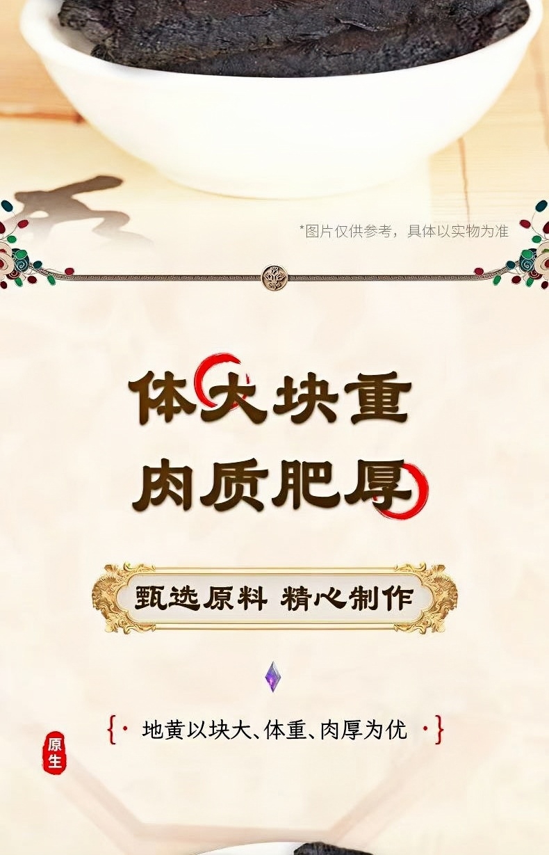 九蒸九晒熟地黄,是一种传统的中药材炮制方法,旨在通过反复蒸煮和晾晒,使地黄内部的营养成分和药效得以充分释放和提高。都市购实惠品控的地黄为四大怀药之乡的温县产地,优选根茎肥大的生地黄蒸煮,将晾干后的生地黄放入蒸锅中,用旺火蒸煮2-3小时,直到地黄变软、颜色变深。然后取出晾晒,晒干后再进行第二次蒸煮。如此反复进行,一共需要蒸煮九次,这就是非常有名的九蒸九制地黄。