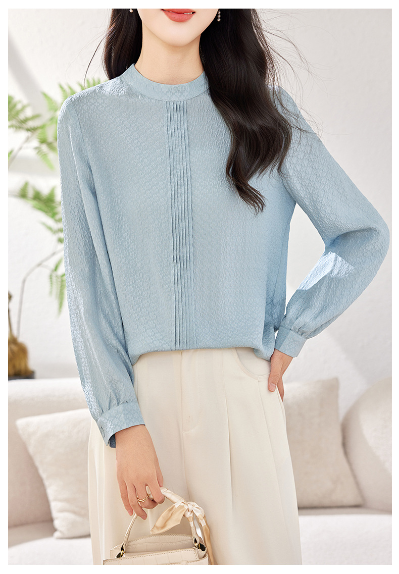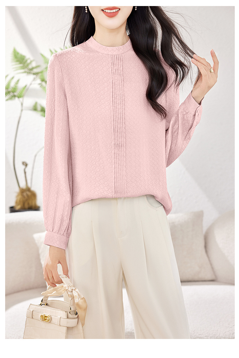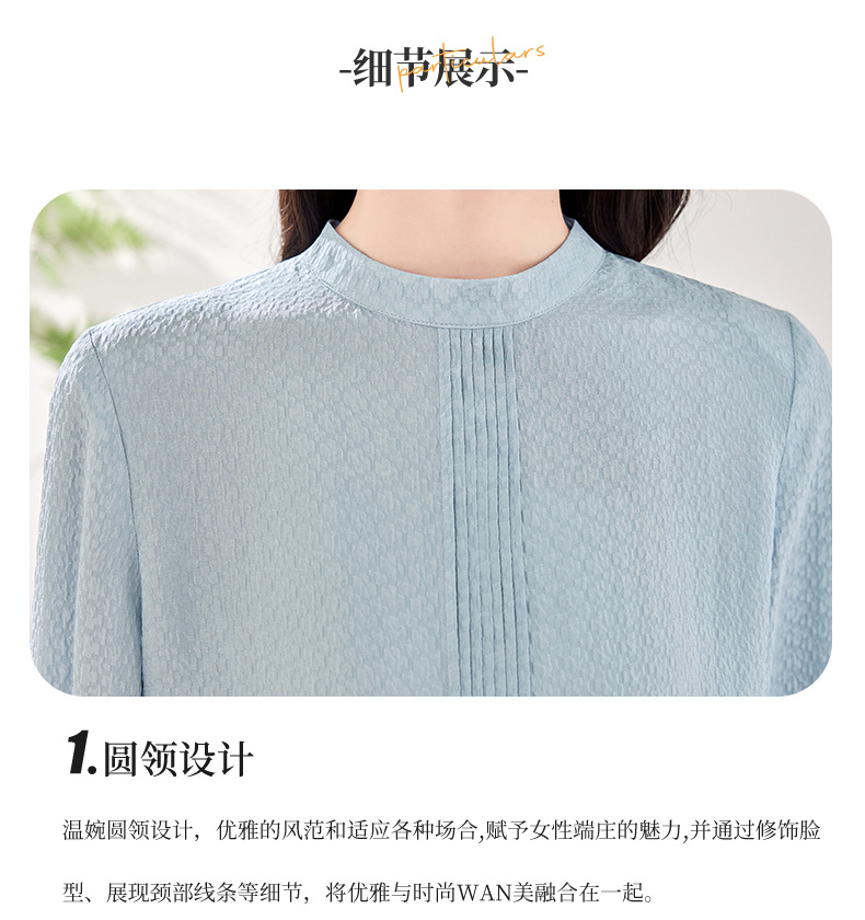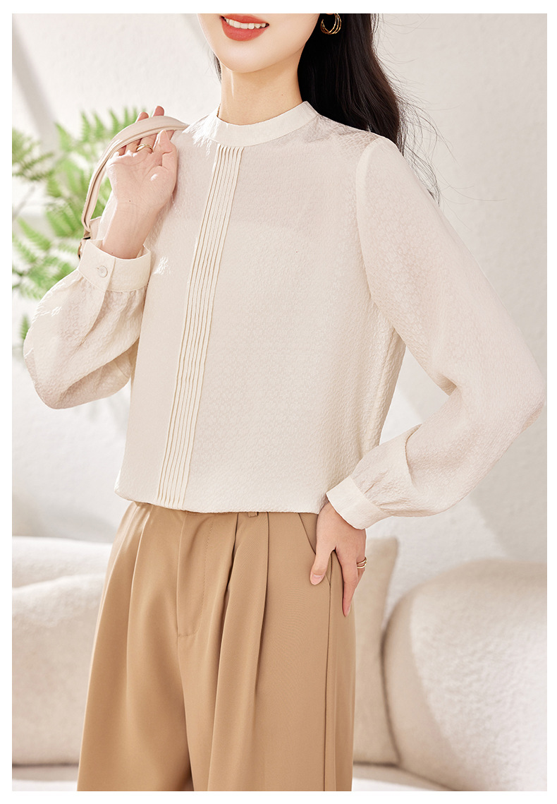 KQ-真丝长袖衬衫2026年春季新款法式圆领纯色桑蚕丝长袖白色上衣衬衣