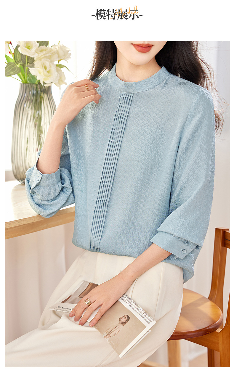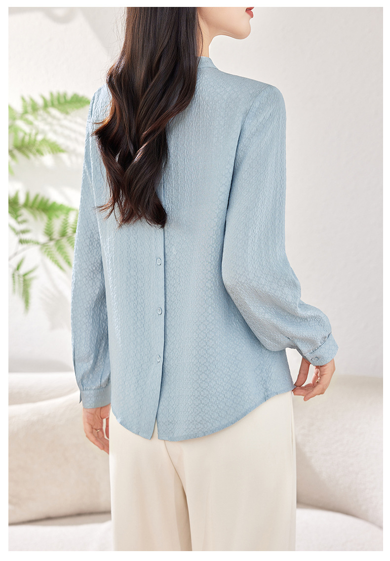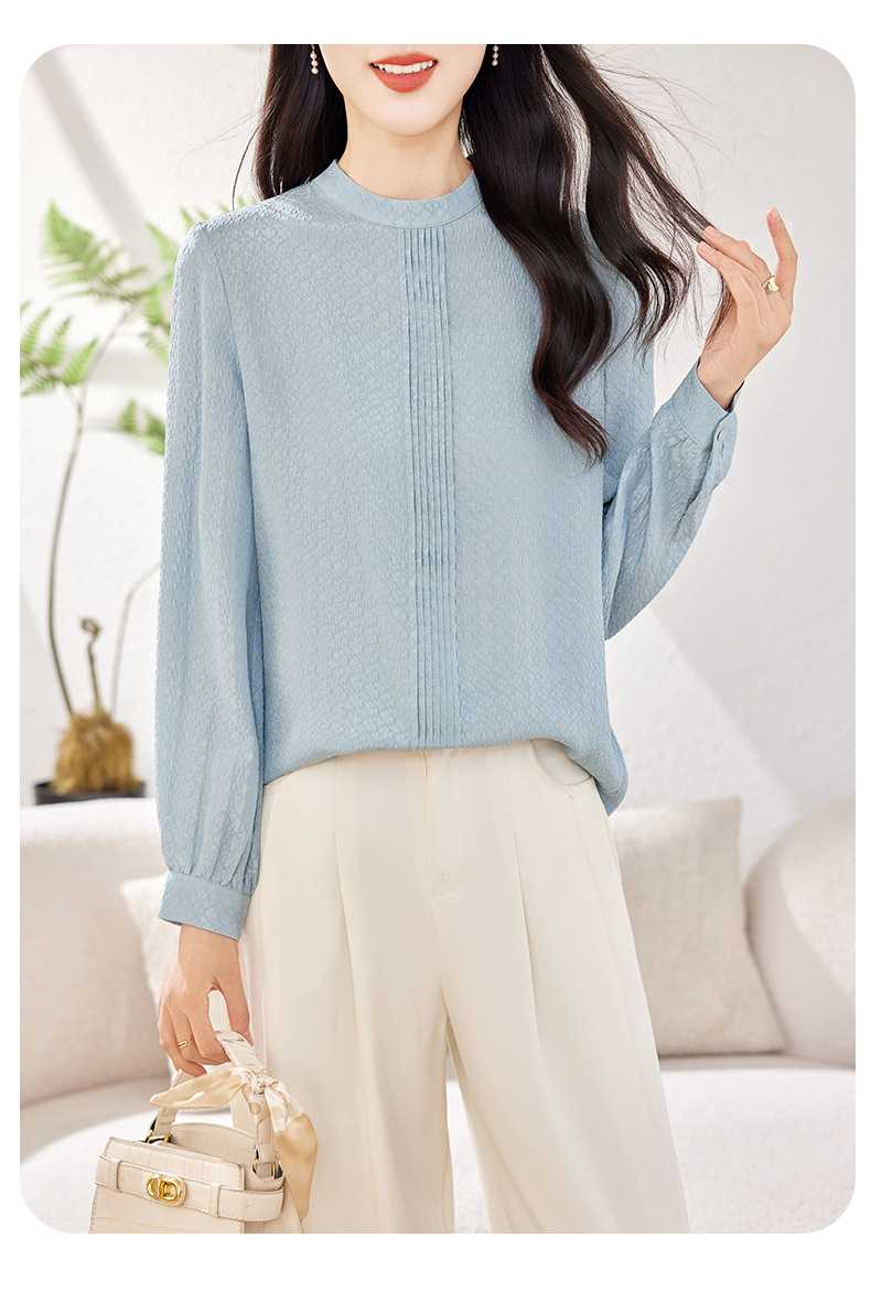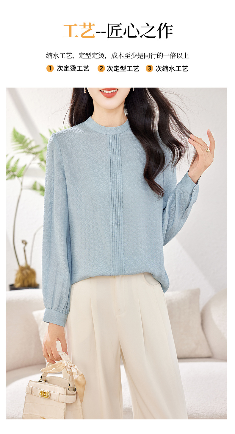 KQ-真丝长袖衬衫2026年春季新款法式圆领纯色桑蚕丝长袖白色上衣衬衣