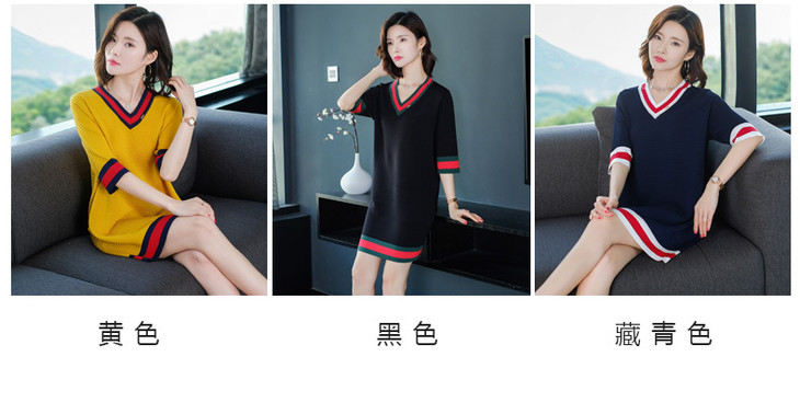 SYL-034316135039夏装大码胖mm短袖仿冰丝针织衫阔太太遮肚子连衣裙