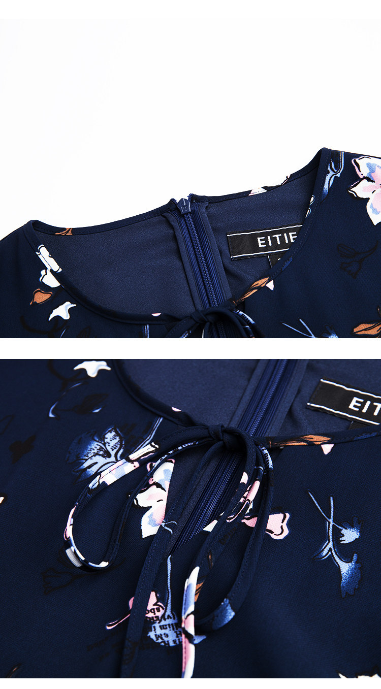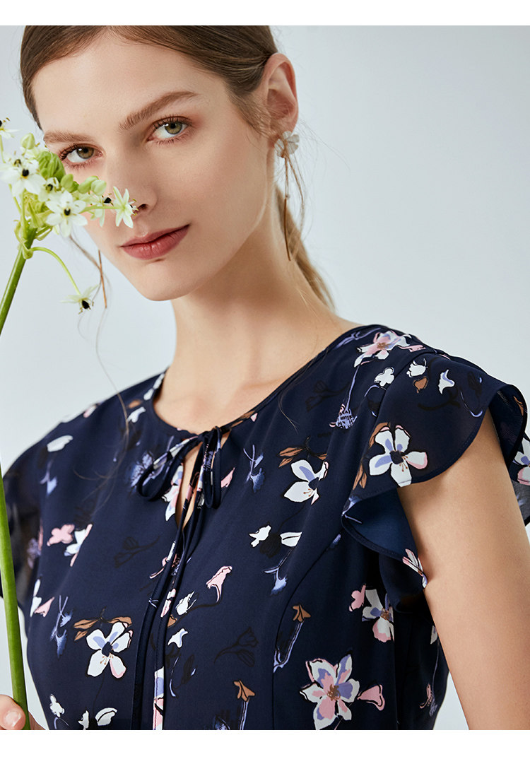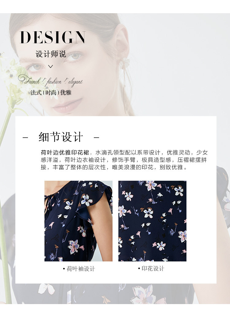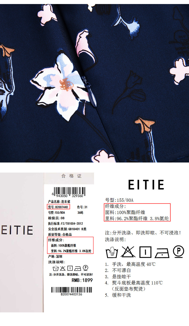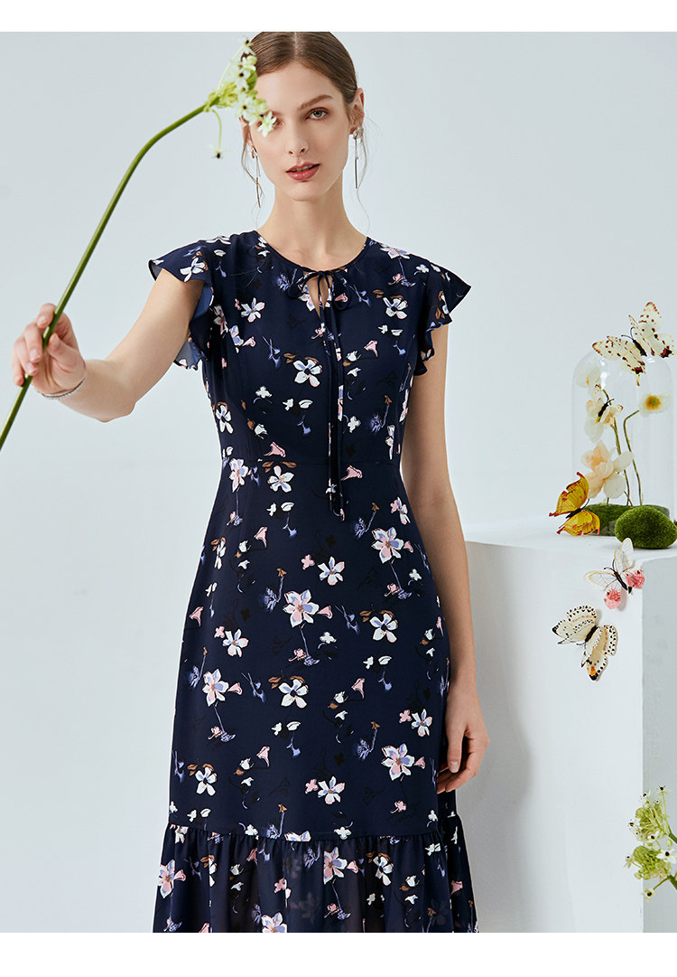 EITIE爱特爱夏季新款时尚飞飞袖系带收腰鱼尾印花连衣裙B2007440