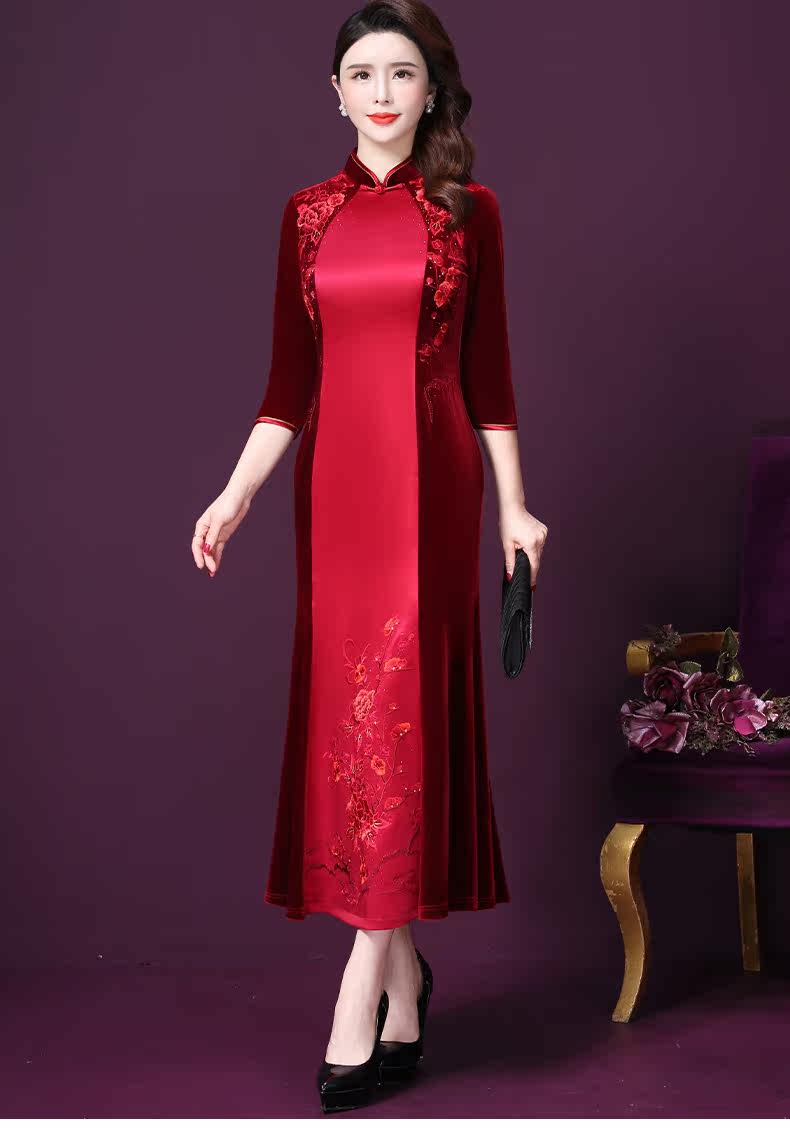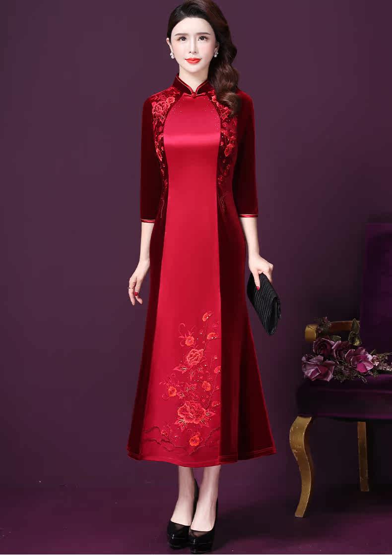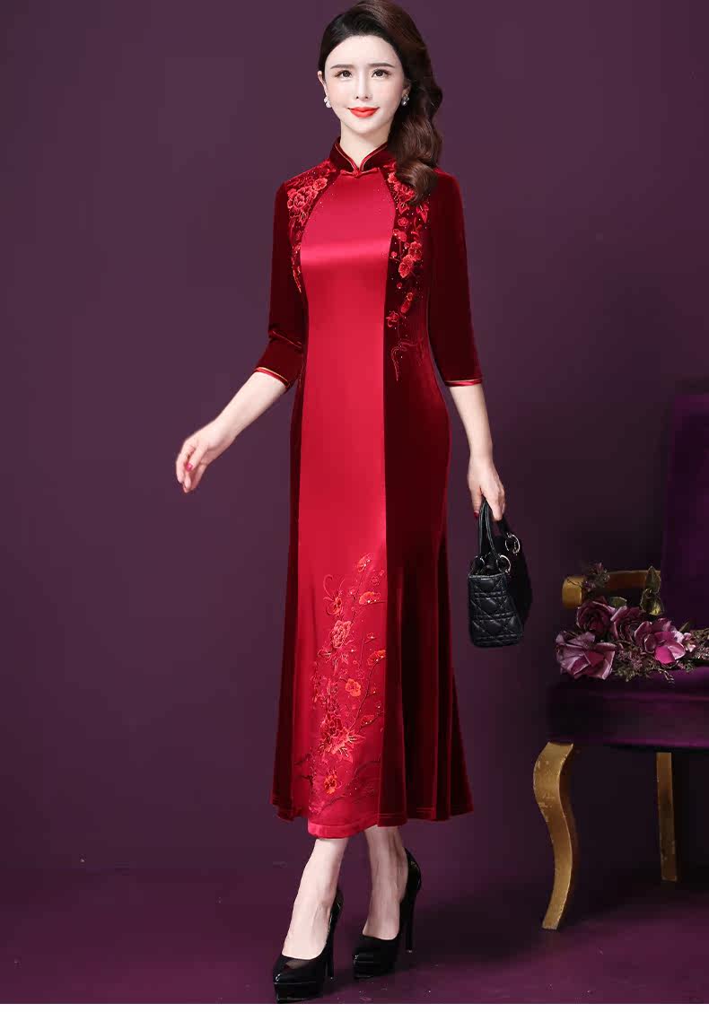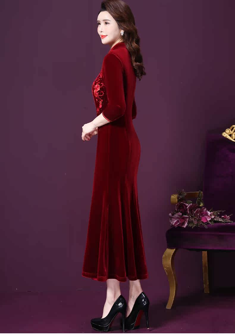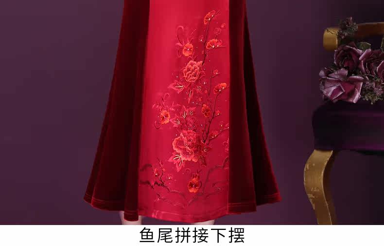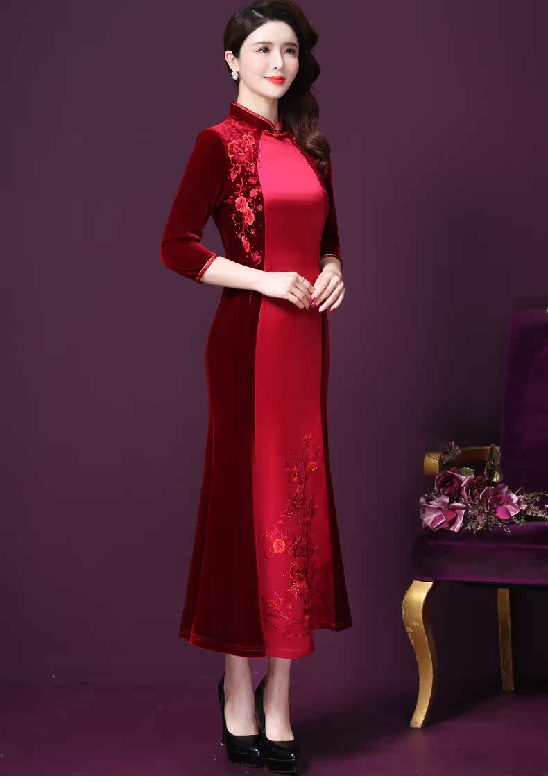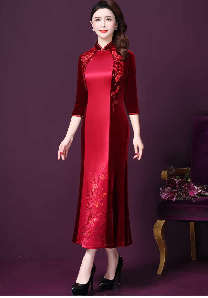 WXY-6508W新款中国风复古礼服金丝绒修身旗袍裙