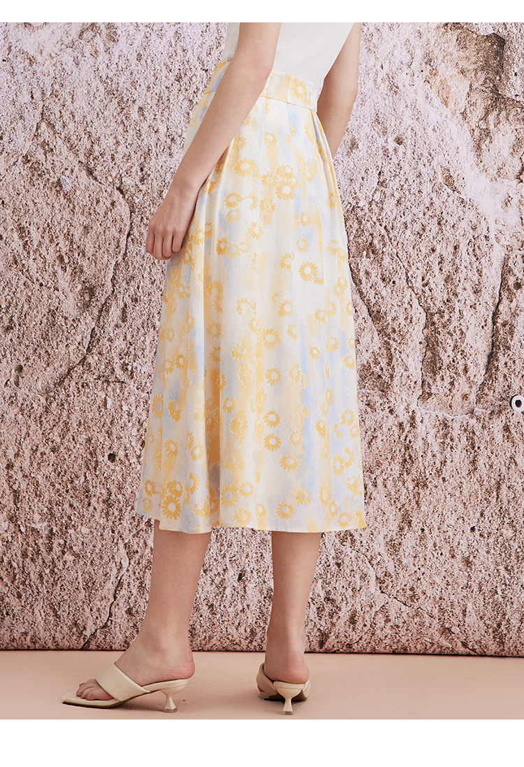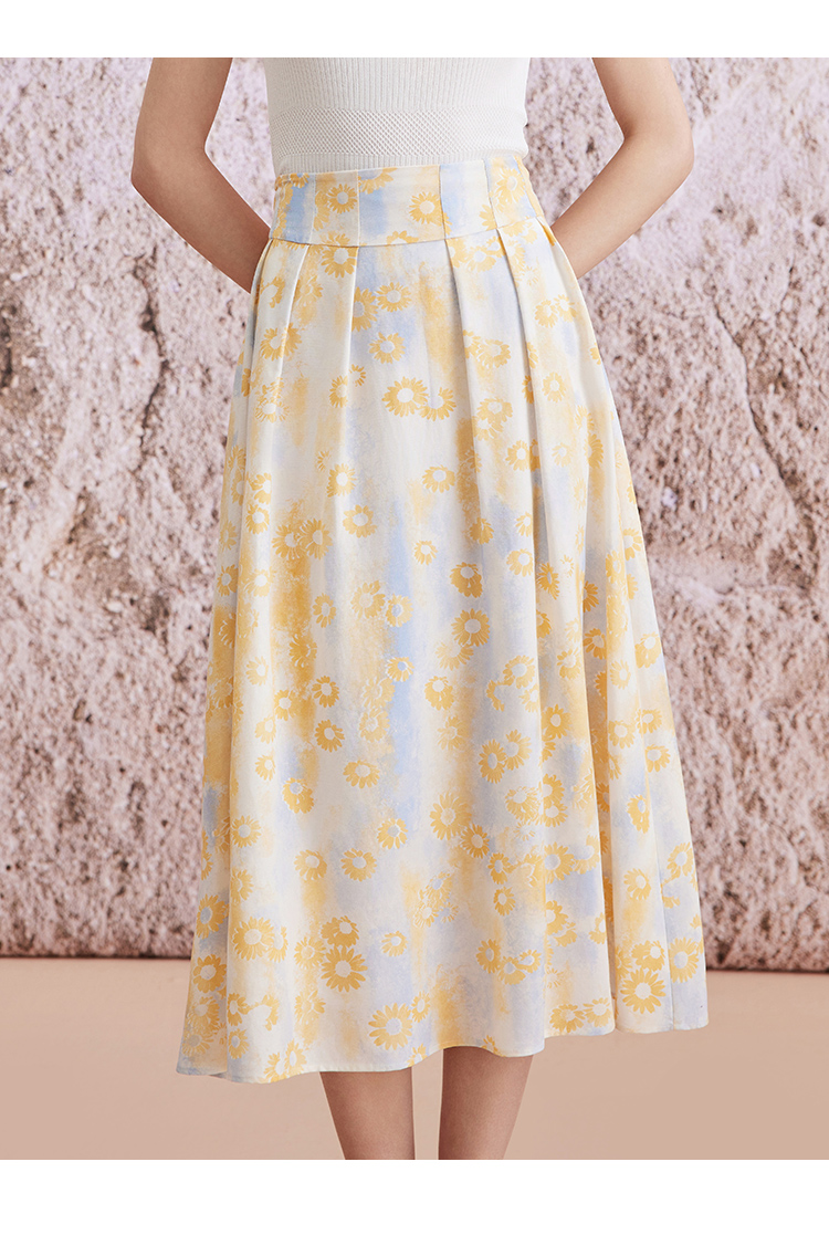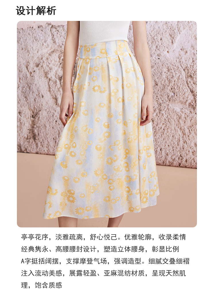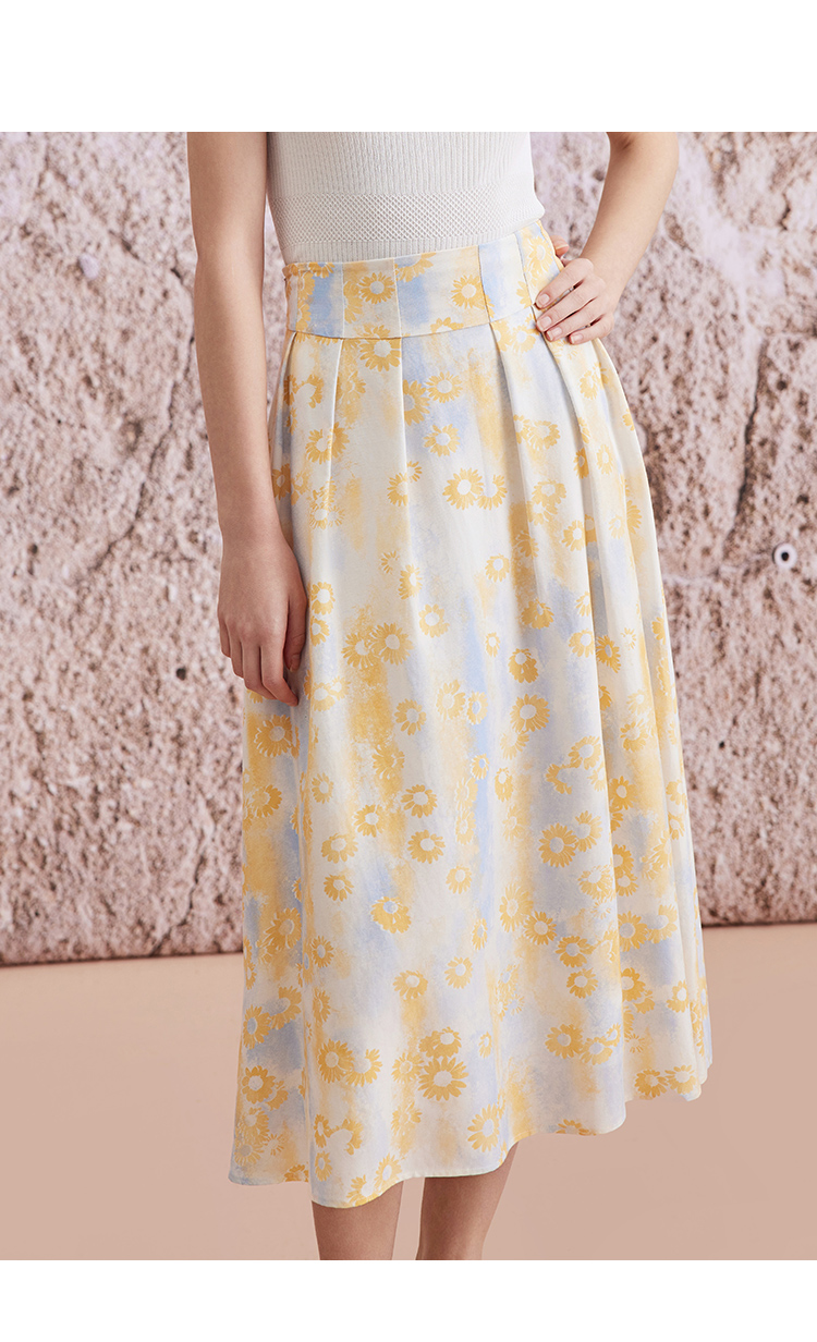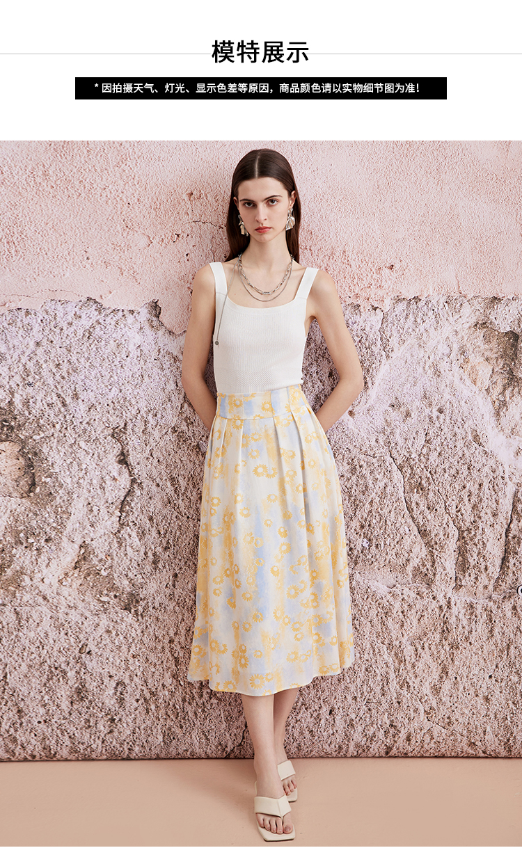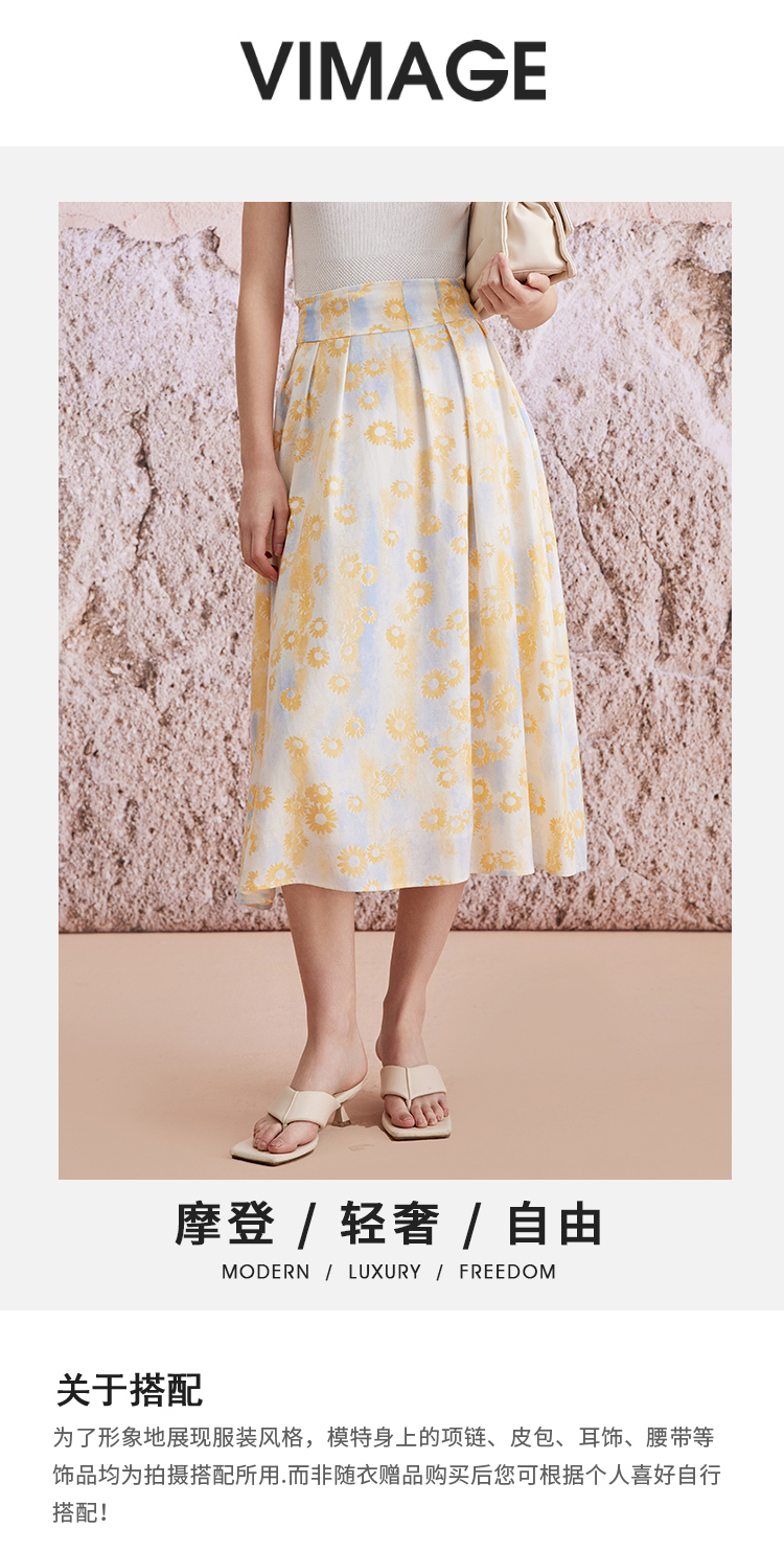 VIMAGE纬漫纪夏季新款优雅时尚高腰百搭印花半身裙V2106715