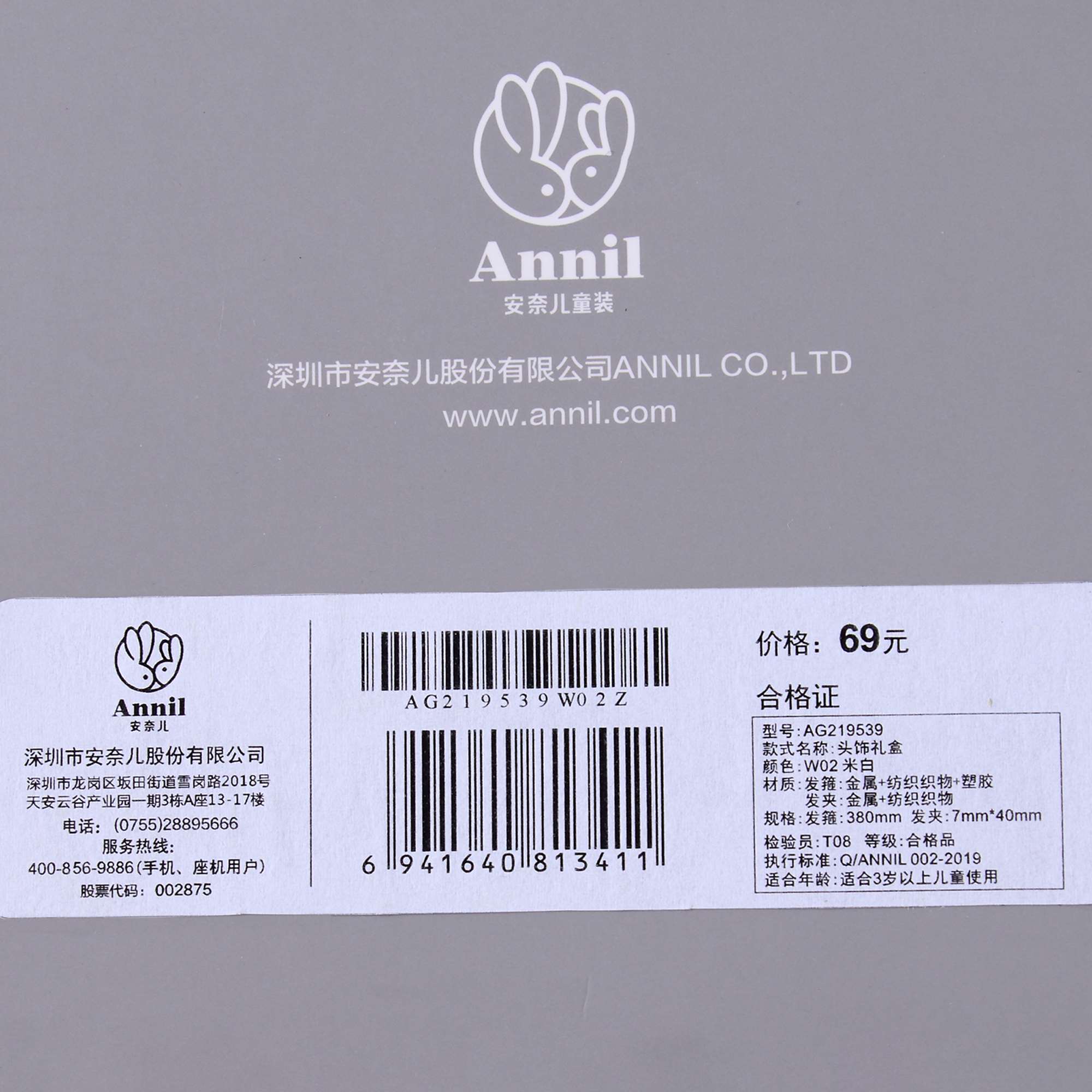 【实体店同款】女童头饰礼盒2022夏季新款安奈儿童装AG219539