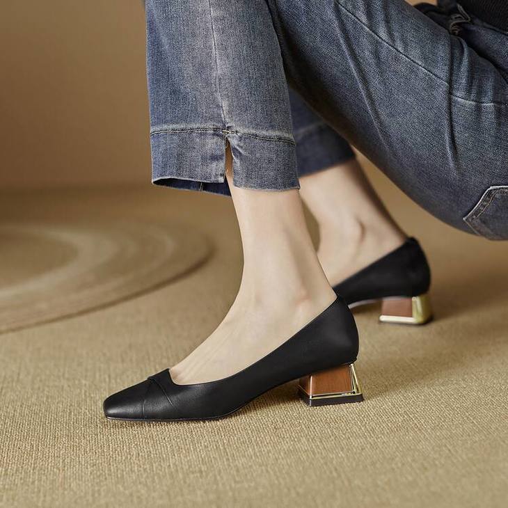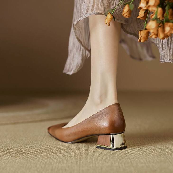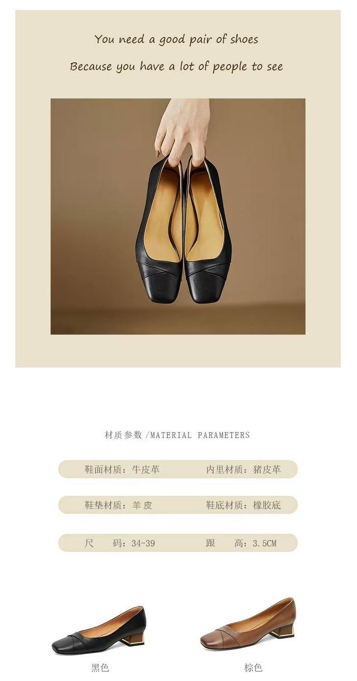 【货 号】:15083S【颜 色】: 黑色 /棕色【鞋 面】:牛皮【内 里】:猪皮【鞋 垫】:羊皮【鞋 底】:橡胶底【跟 高】:3.5CM【尺 码】:34-39
