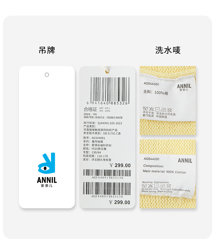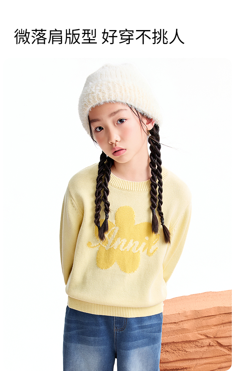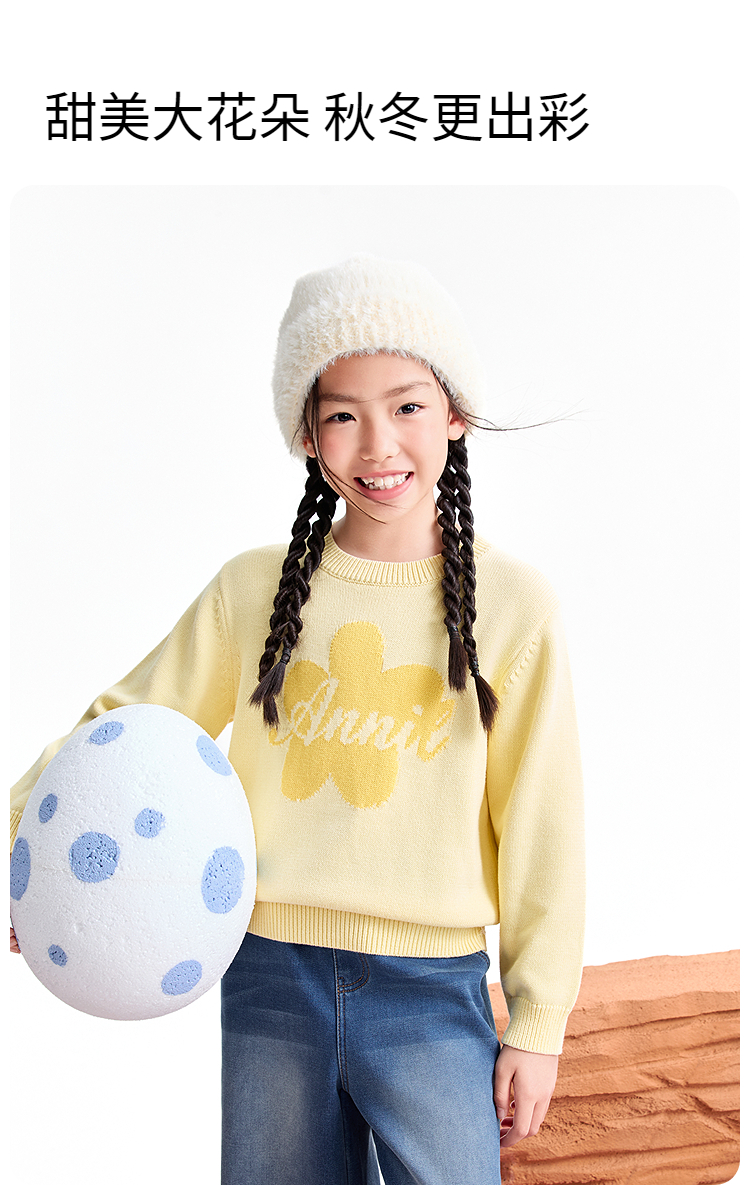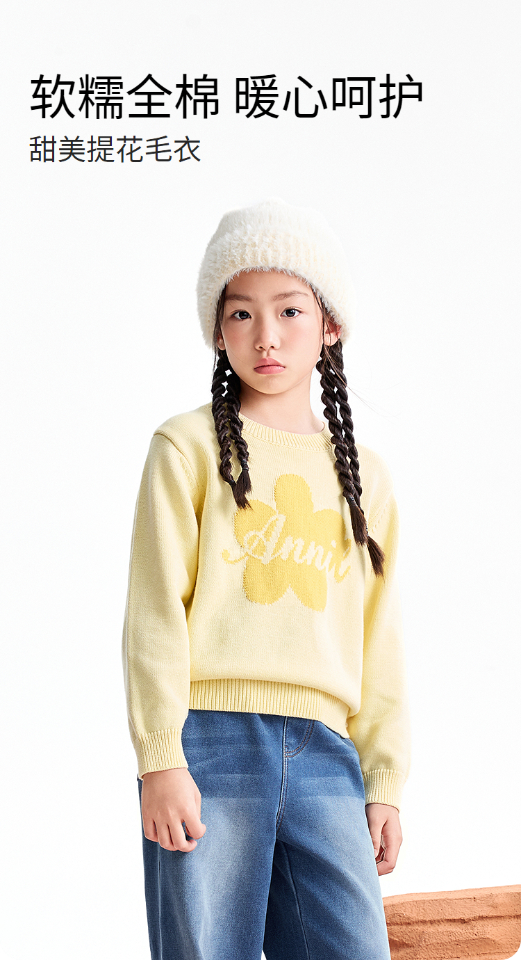【实体店同款】女童圆领长袖针织衫冬季新款安奈儿童装AG544091