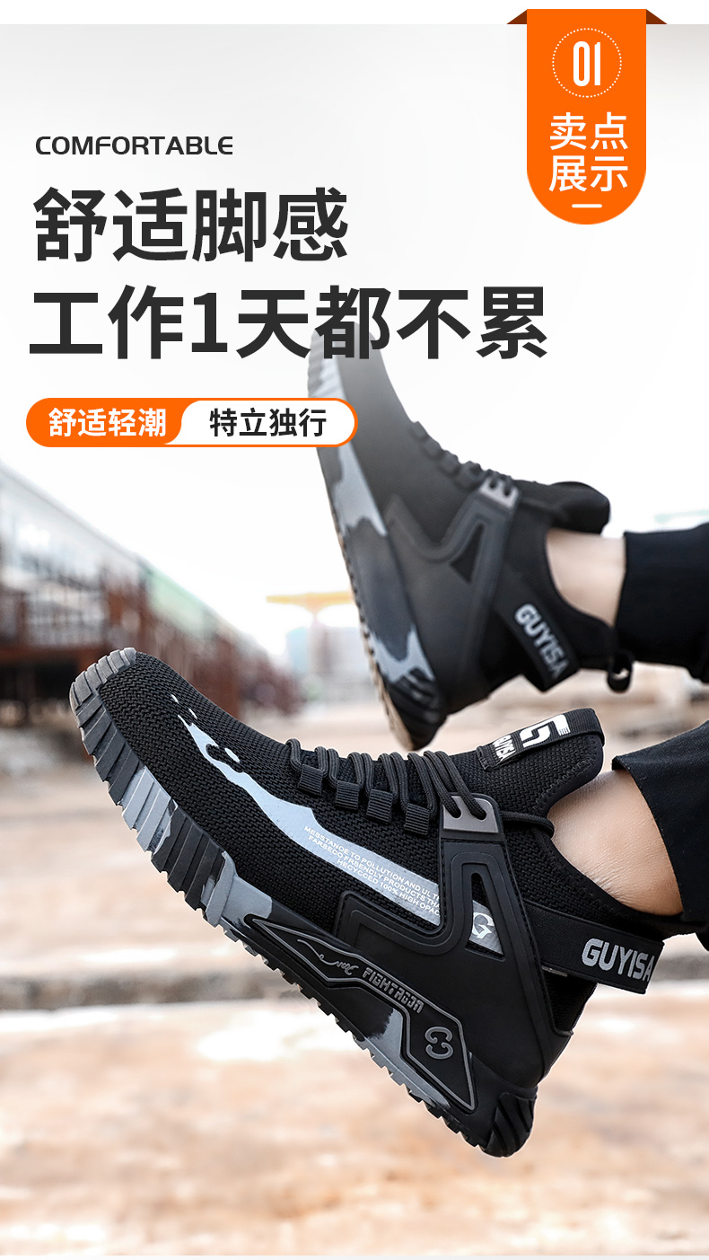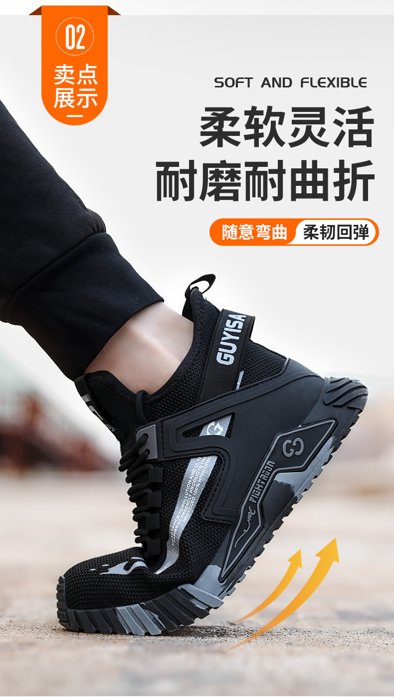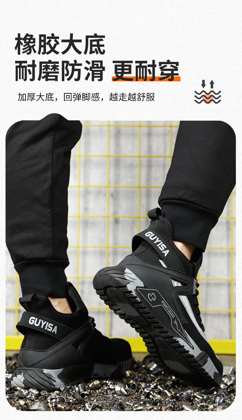 新款男士防砸防刺劳保鞋耐磨透气款黑色