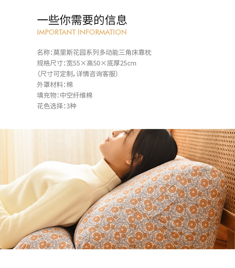 莫里斯花园系列多功能三角床靠软包高级感腰靠可拆洗