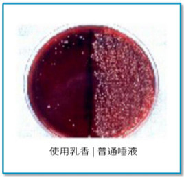 日本汉方研究所做了个实验,在左边的唾液中添加乳香油,HP明显少了很多;