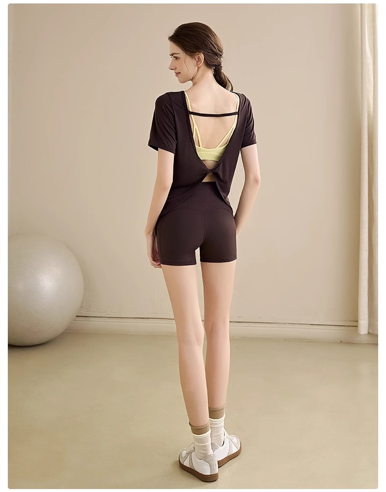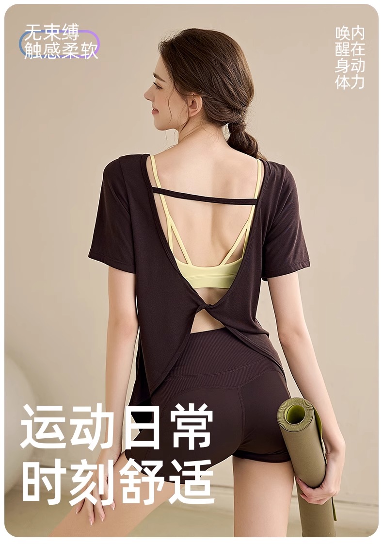 【限时秒】YOGACODE【火树银花系列】大码短袖女T恤宽松透气运动罩衫性感露背瑜伽服上衣DWA215439