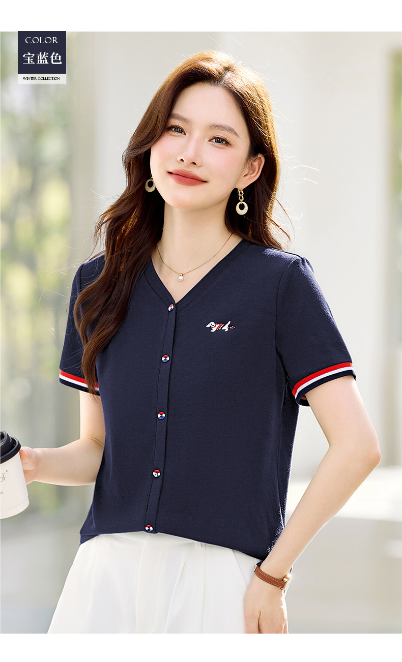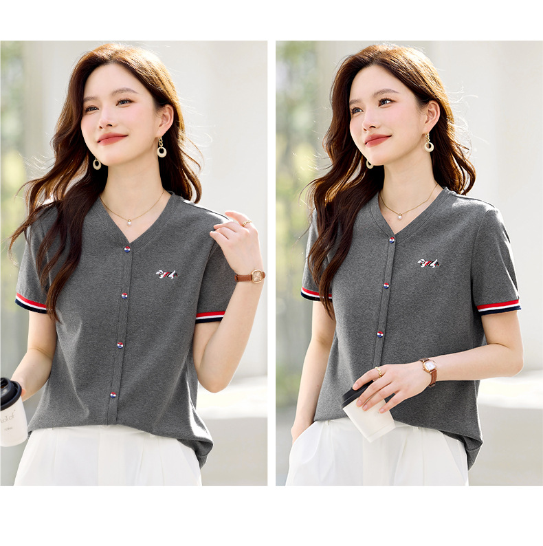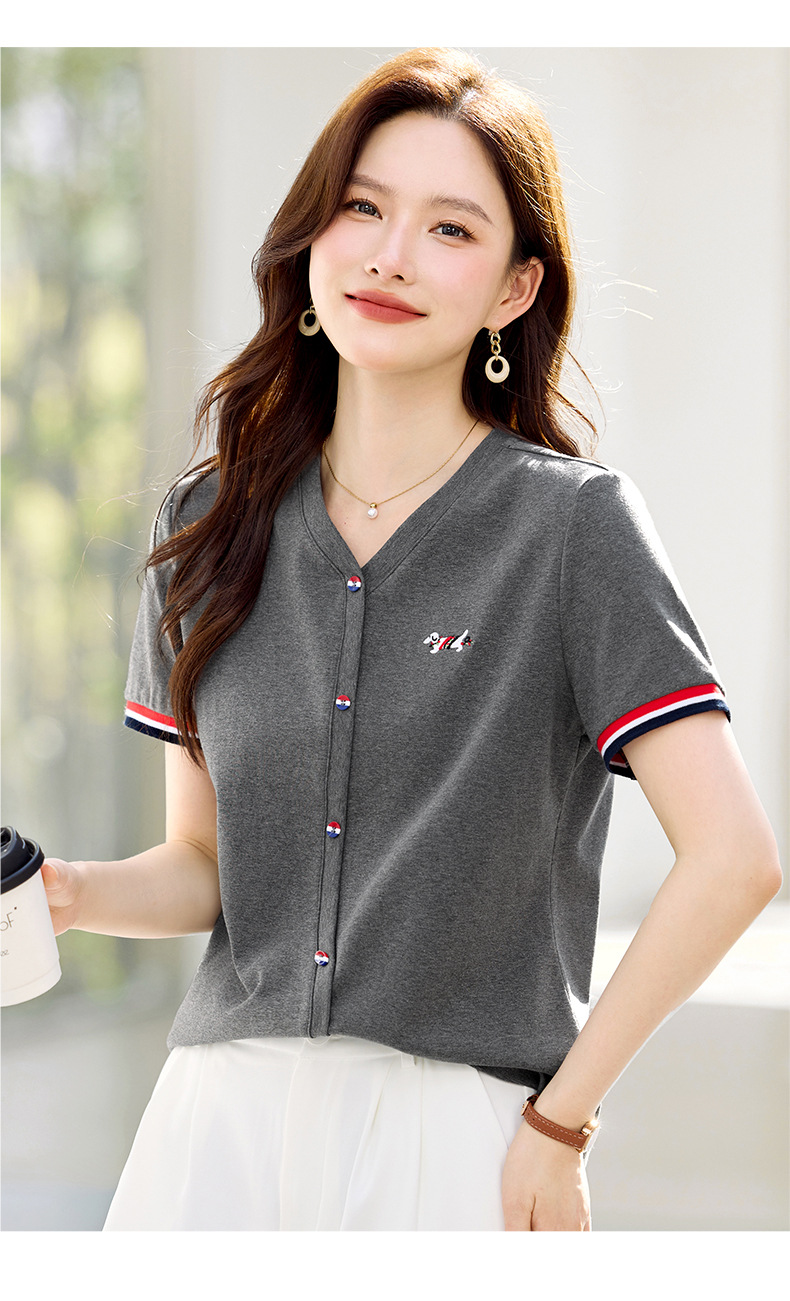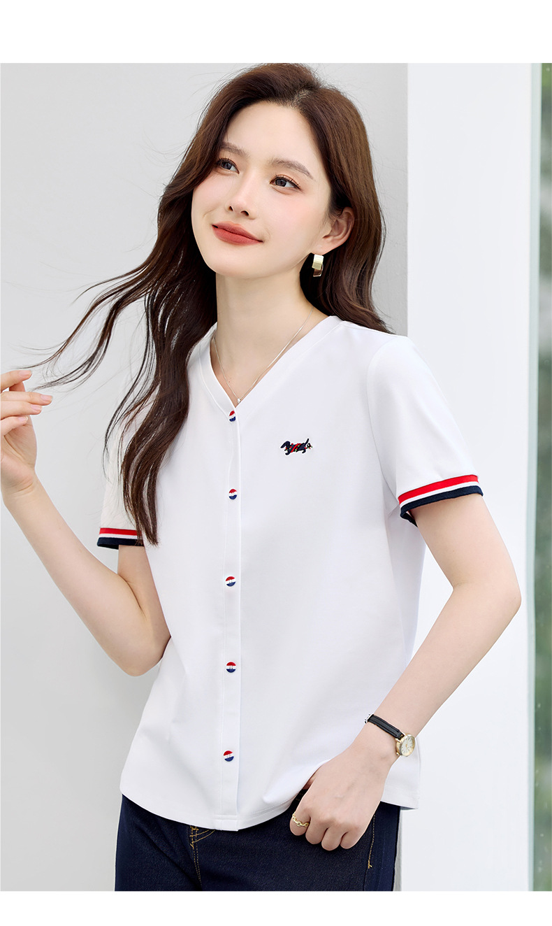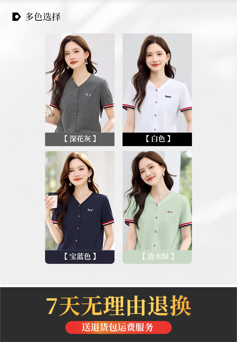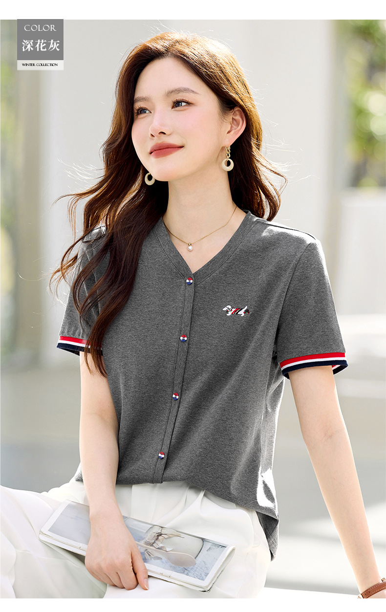 百媚生 棉质V领T恤短袖女可外穿休闲上衣S82620010