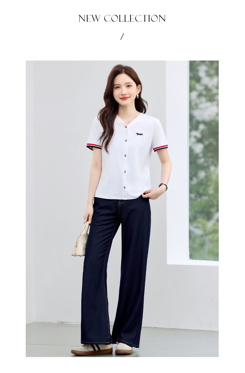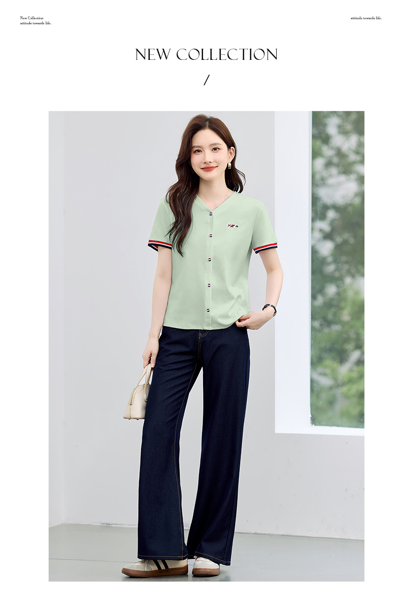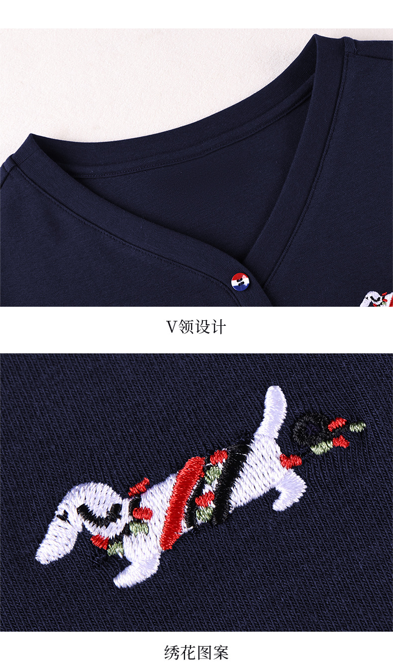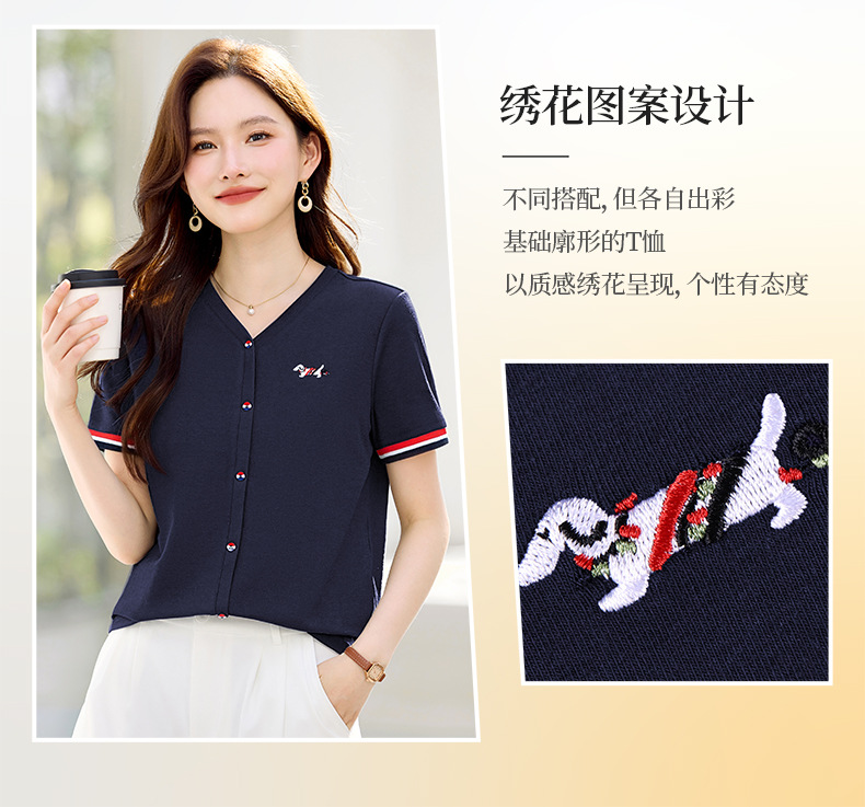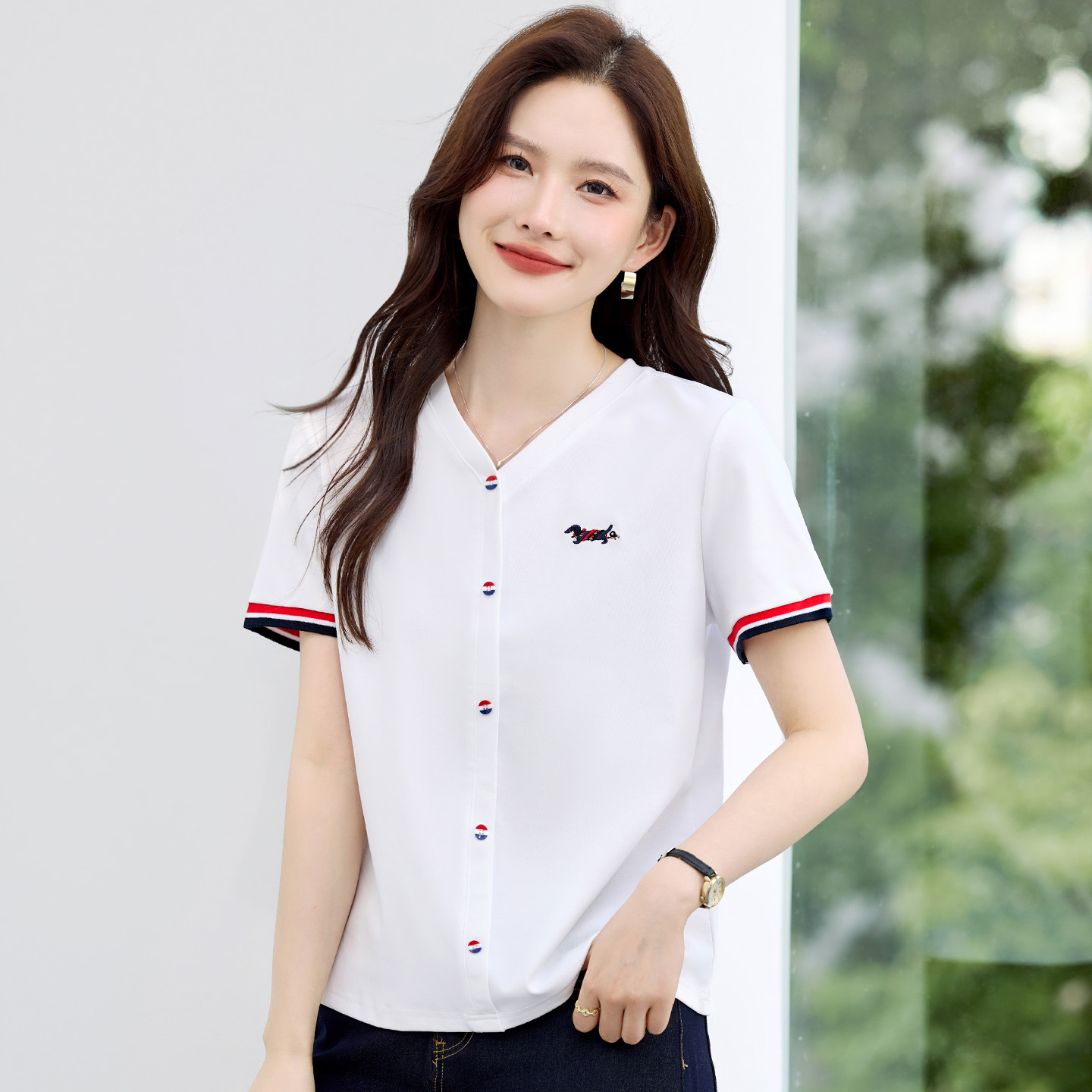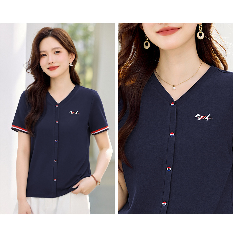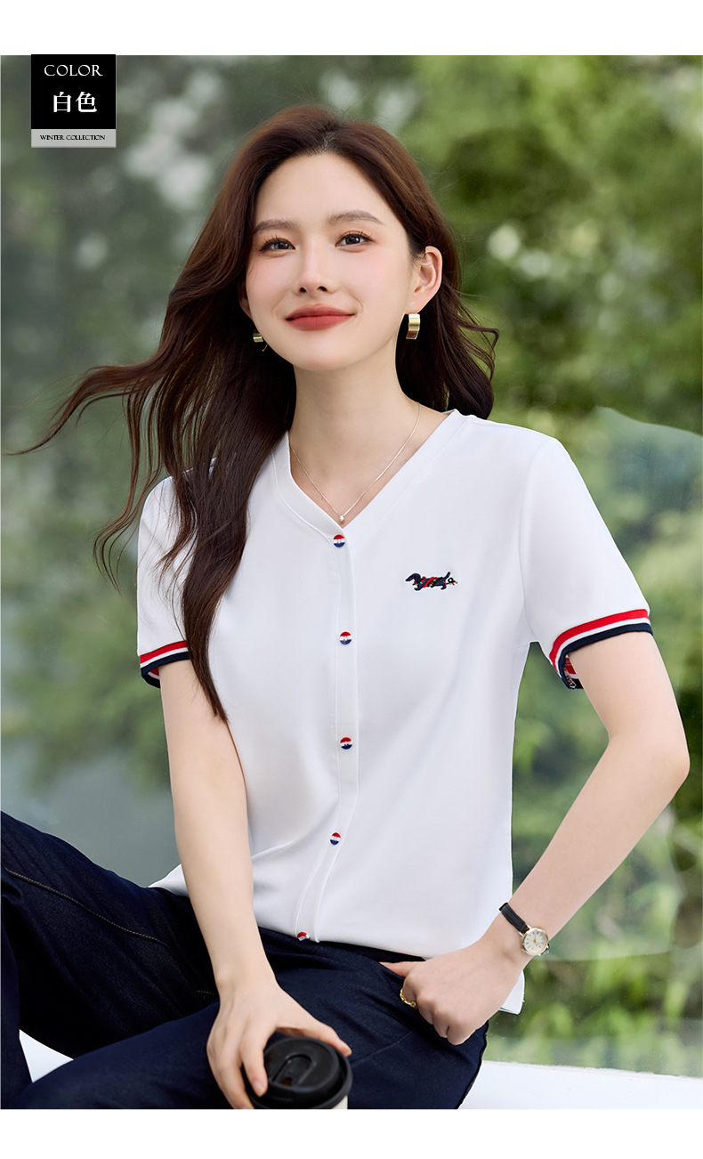 百媚生 棉质V领T恤短袖女可外穿休闲上衣S82620010