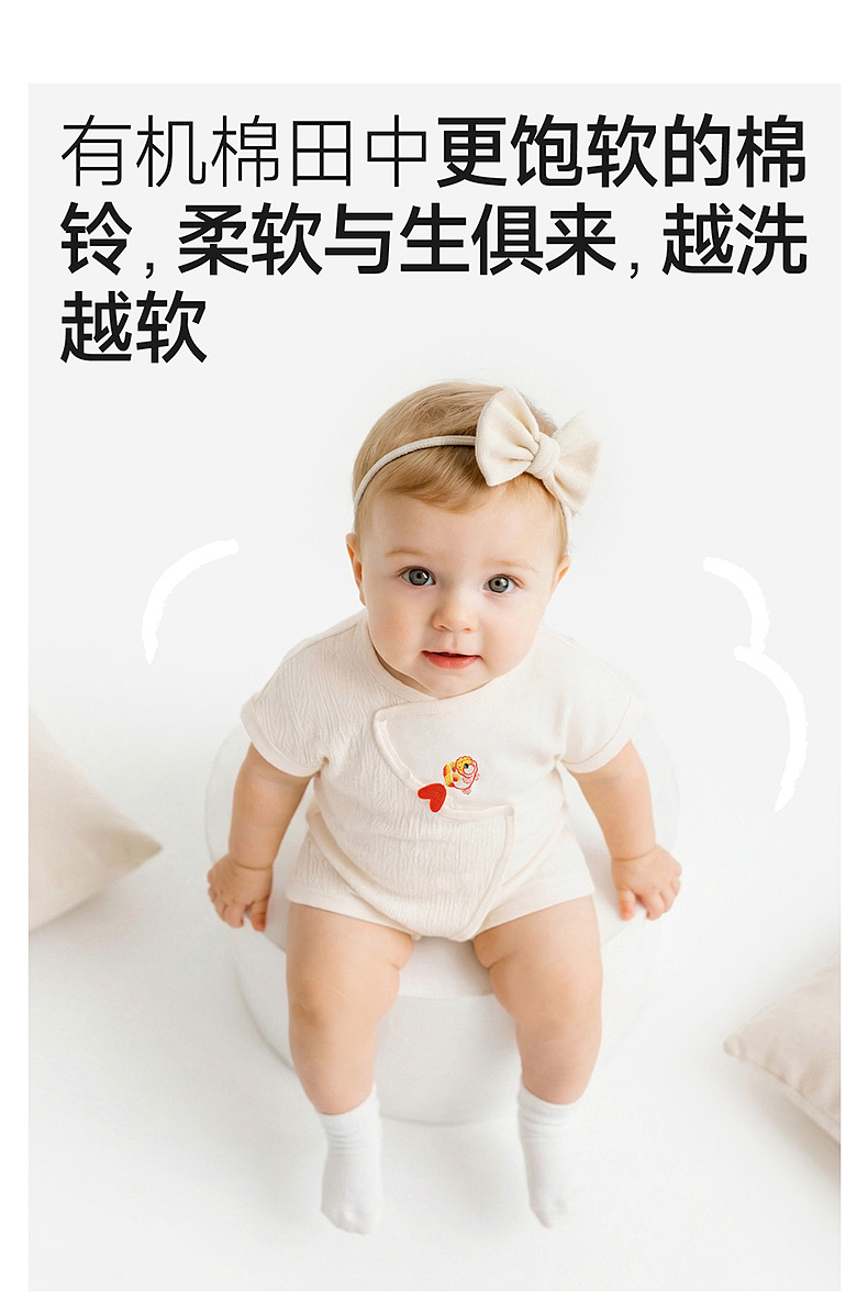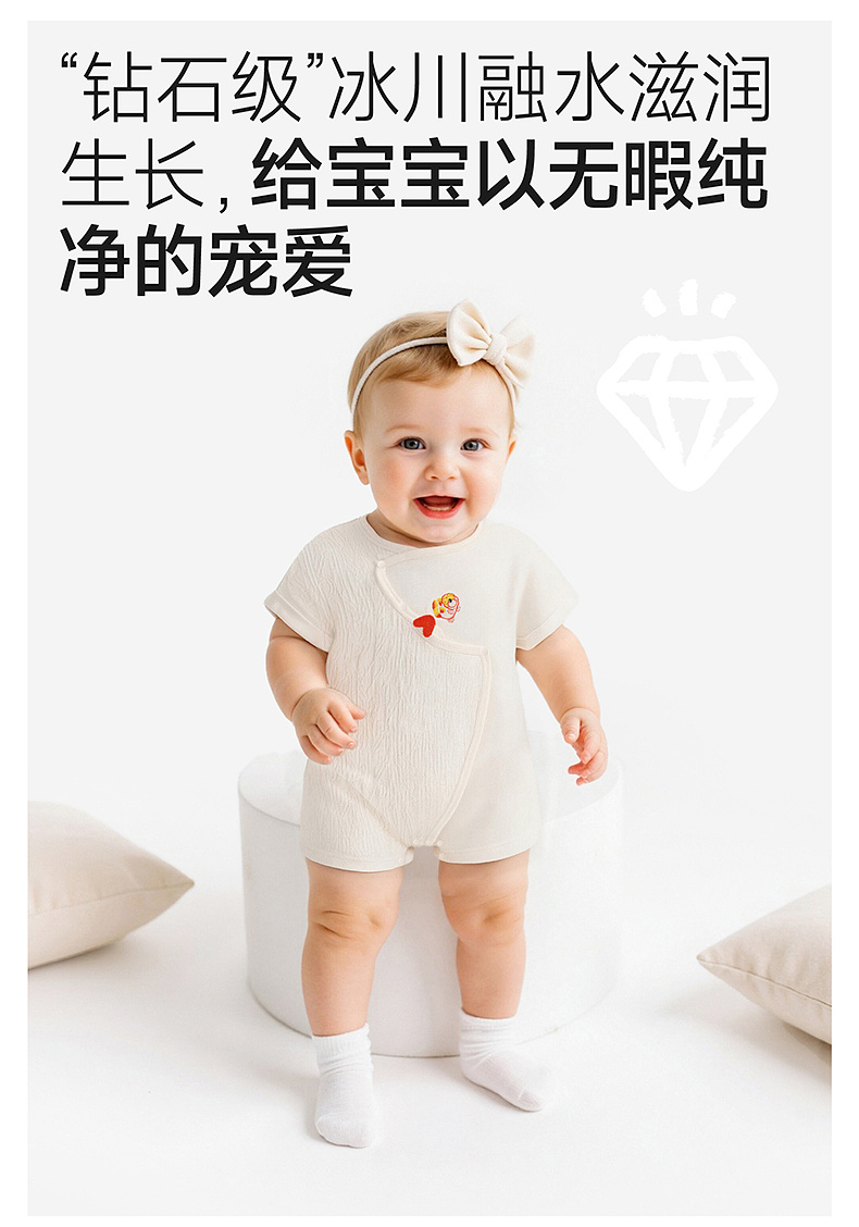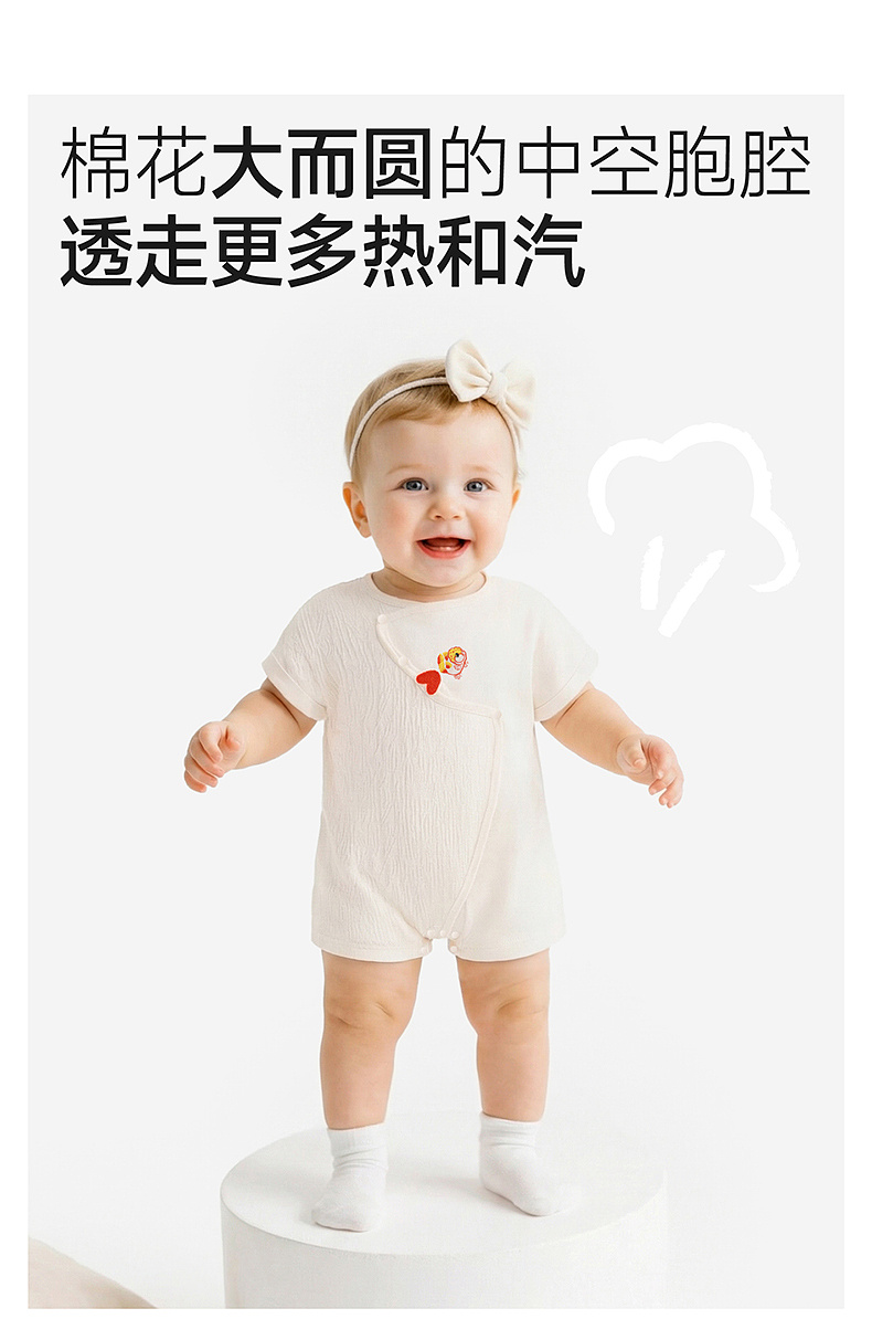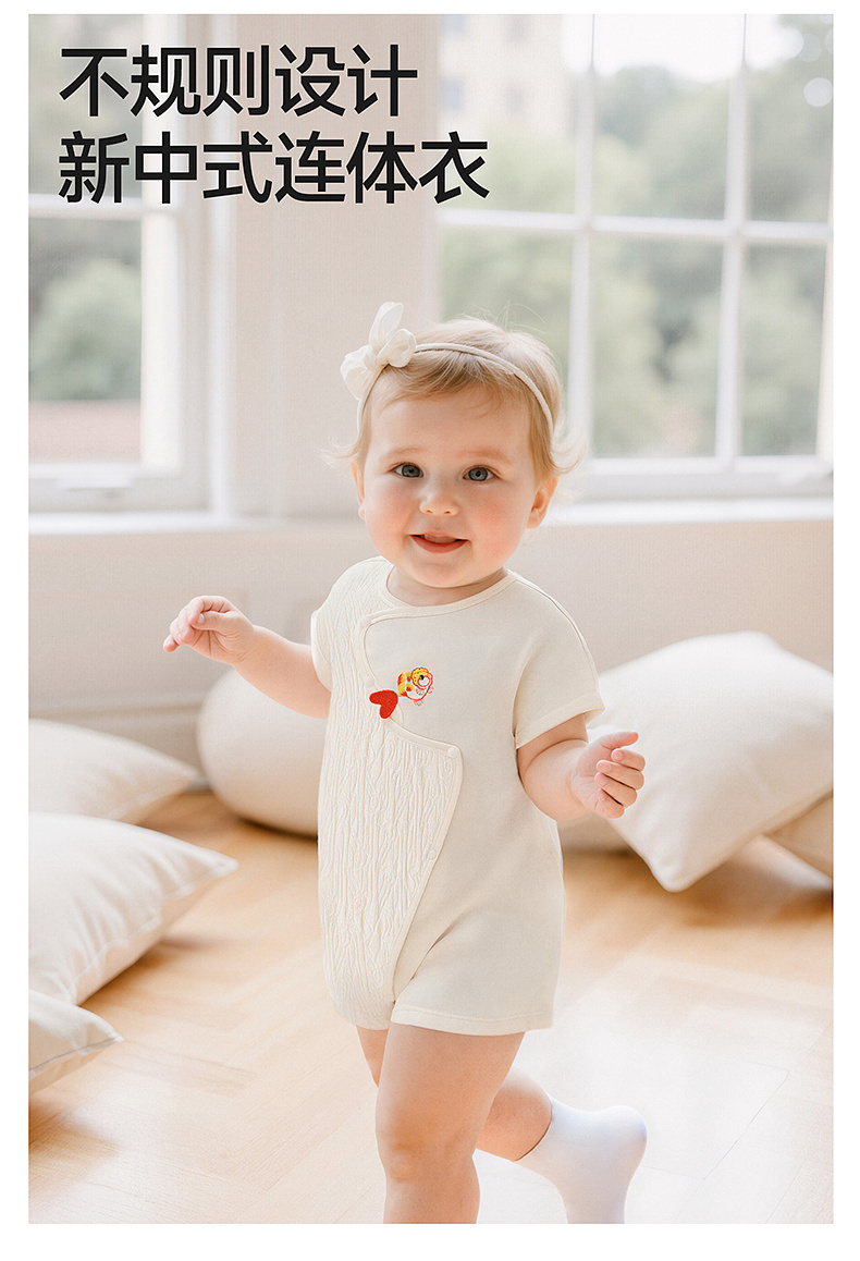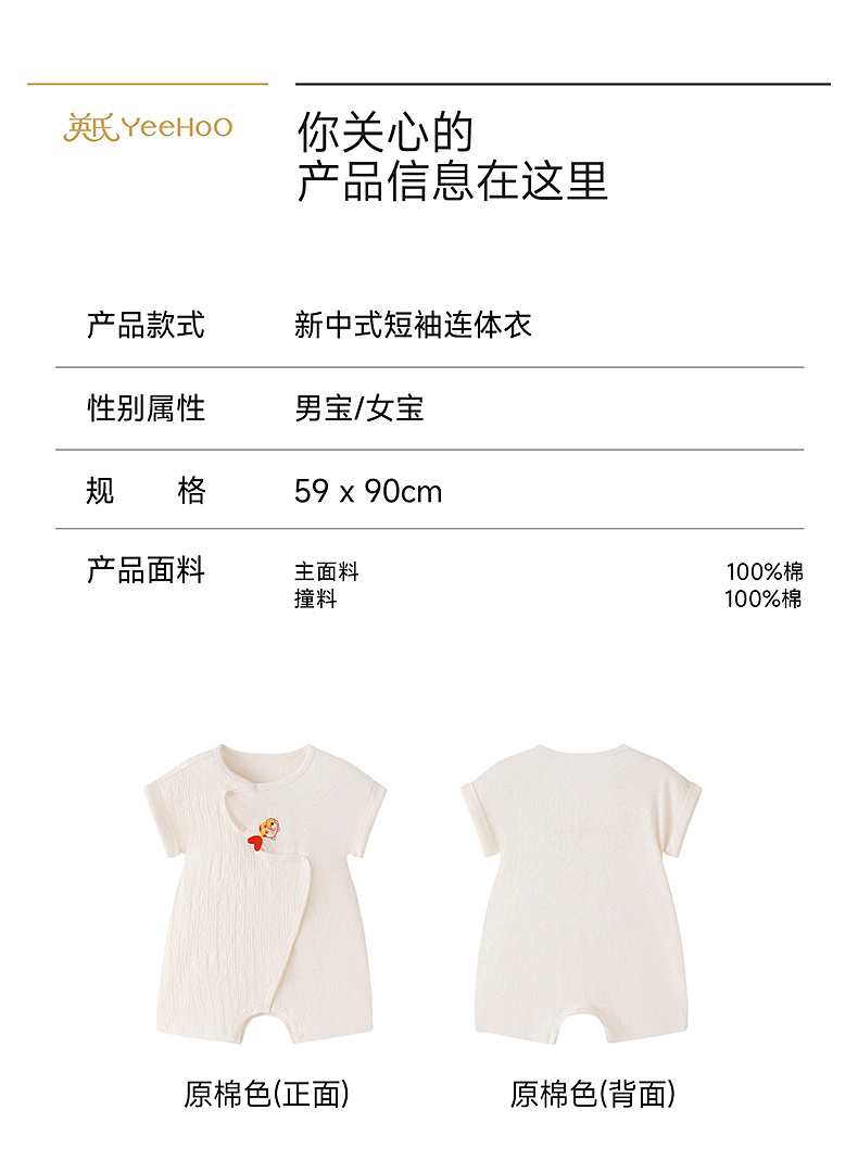 【商场同款】英氏婴儿连体衣夏季纯棉短袖哈衣宝宝居家连身睡衣