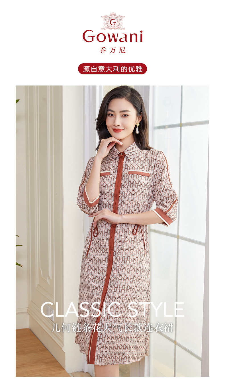 乔万尼连衣裙女新款法式气质衬衫领中长款春夏新品EF3E901