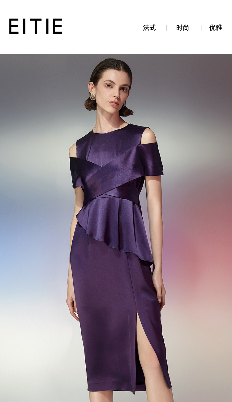 EITIE爱特爱夏季新款洋气气质高腰显瘦礼服连衣裙7777410