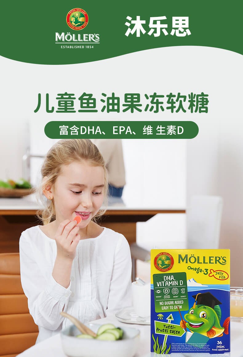 【跨境】挪威Mollers 沐乐思 鱼油果冻软糖(水果味)36粒/盒 3岁+儿童 EPA DHA 维生素D