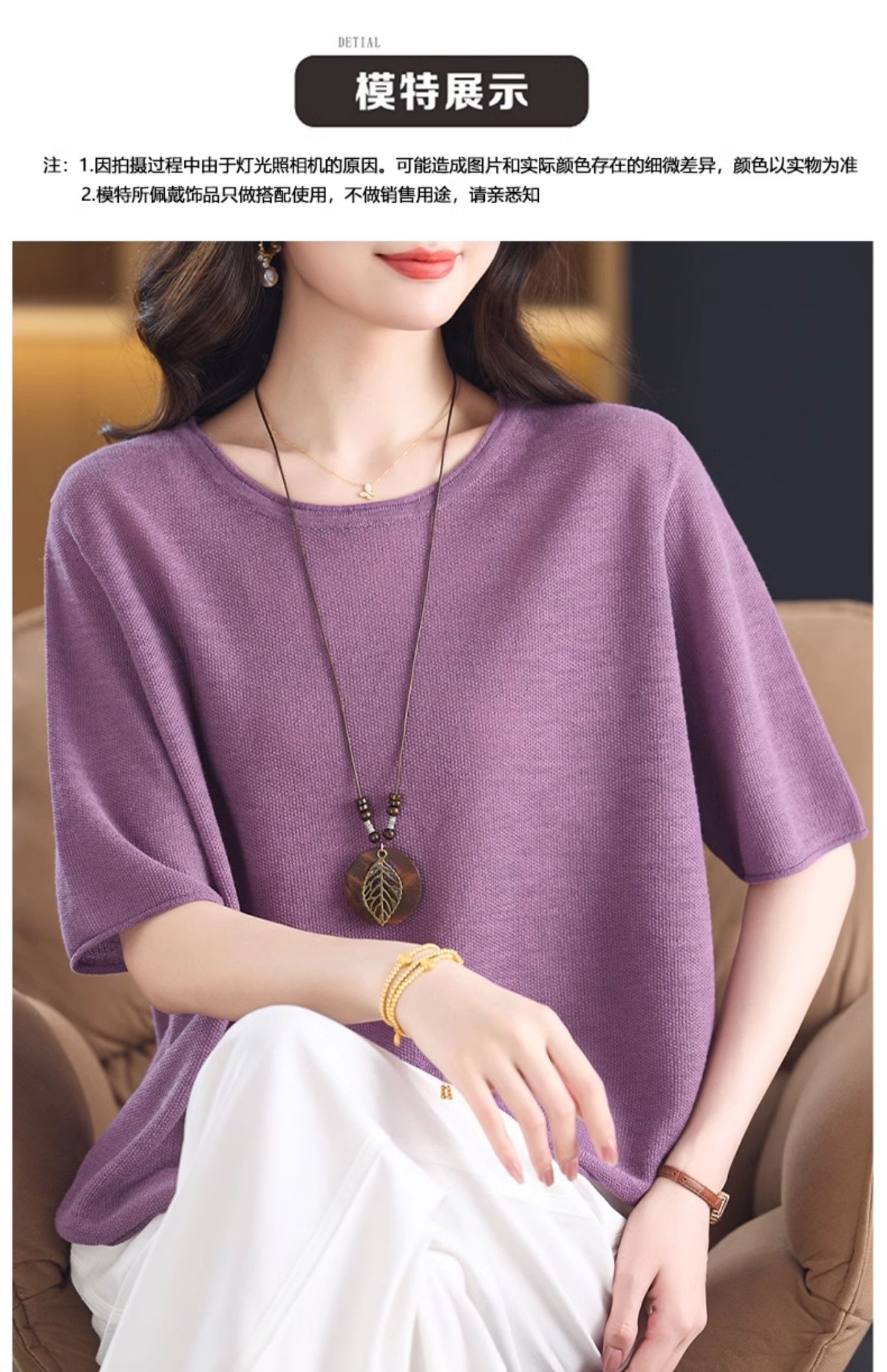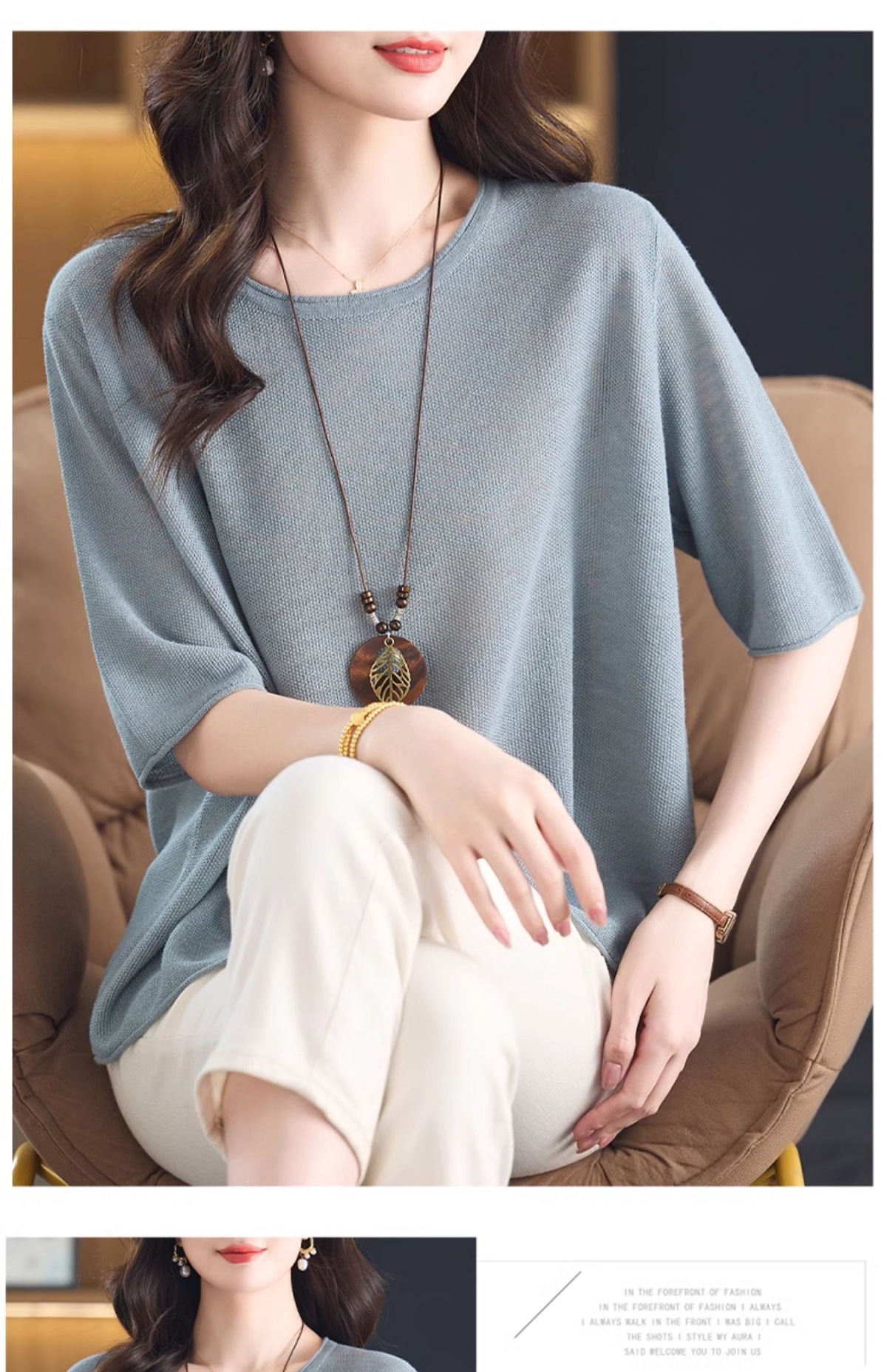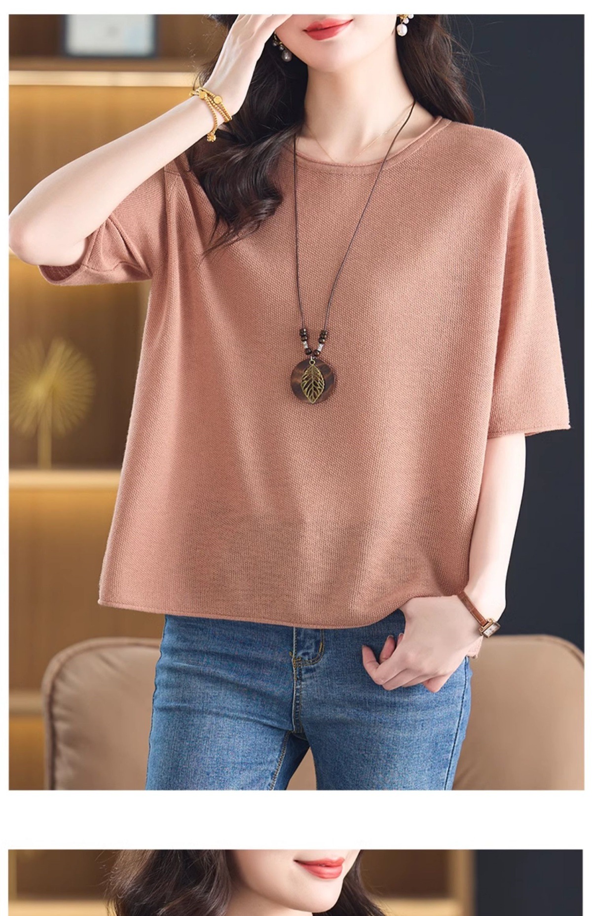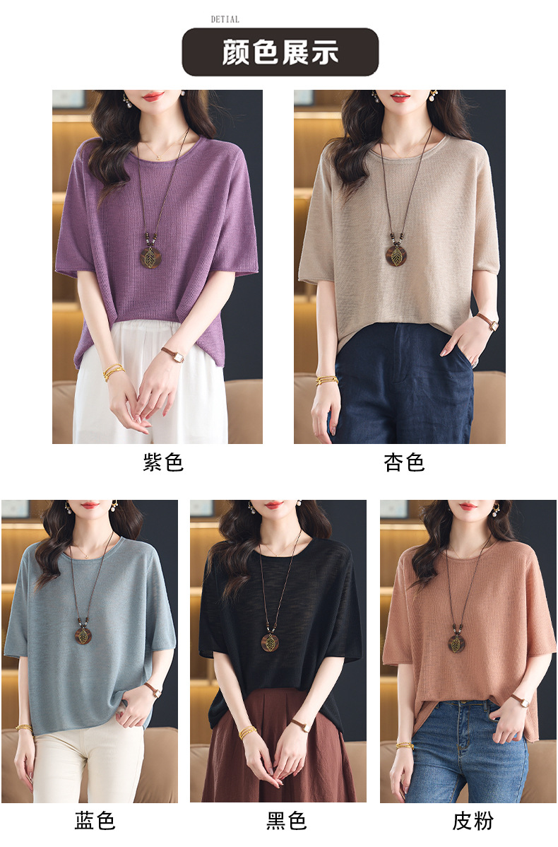 韩版纯色双面T恤,短袖薄款遮肚t冰丝宽松大码CC-5-6362