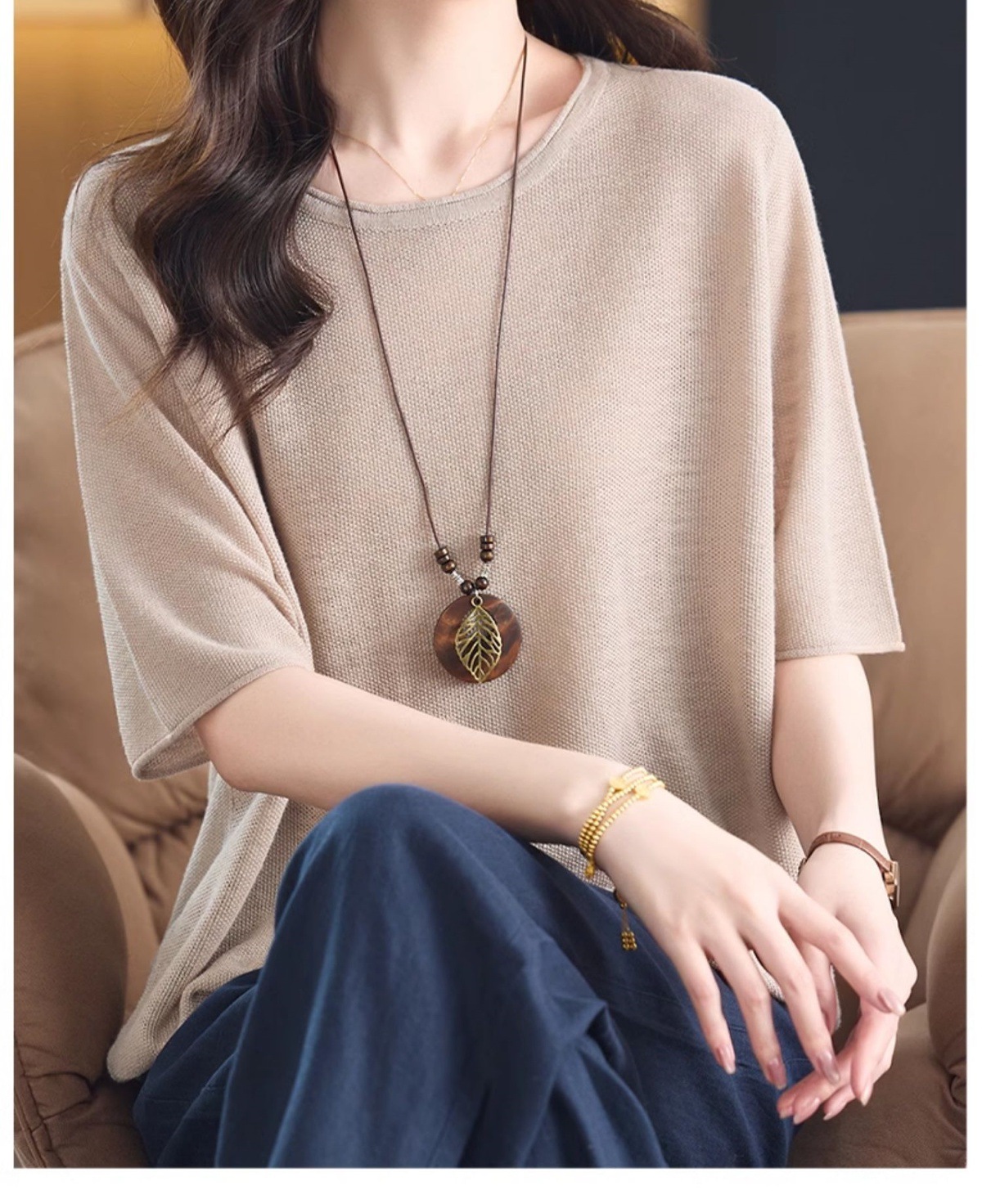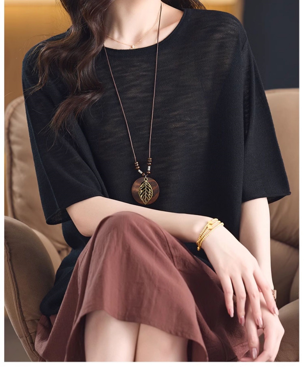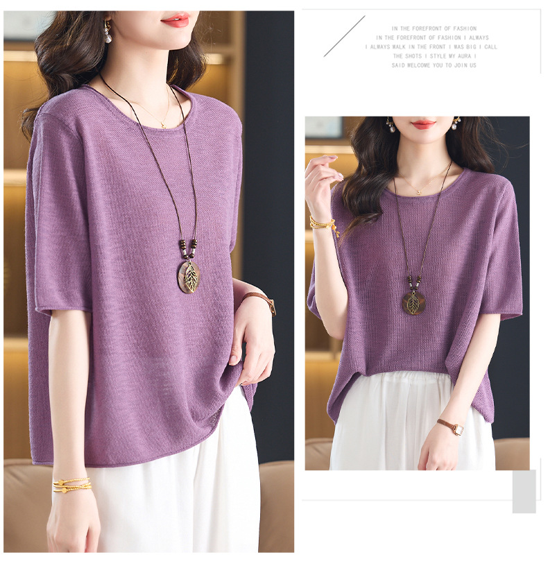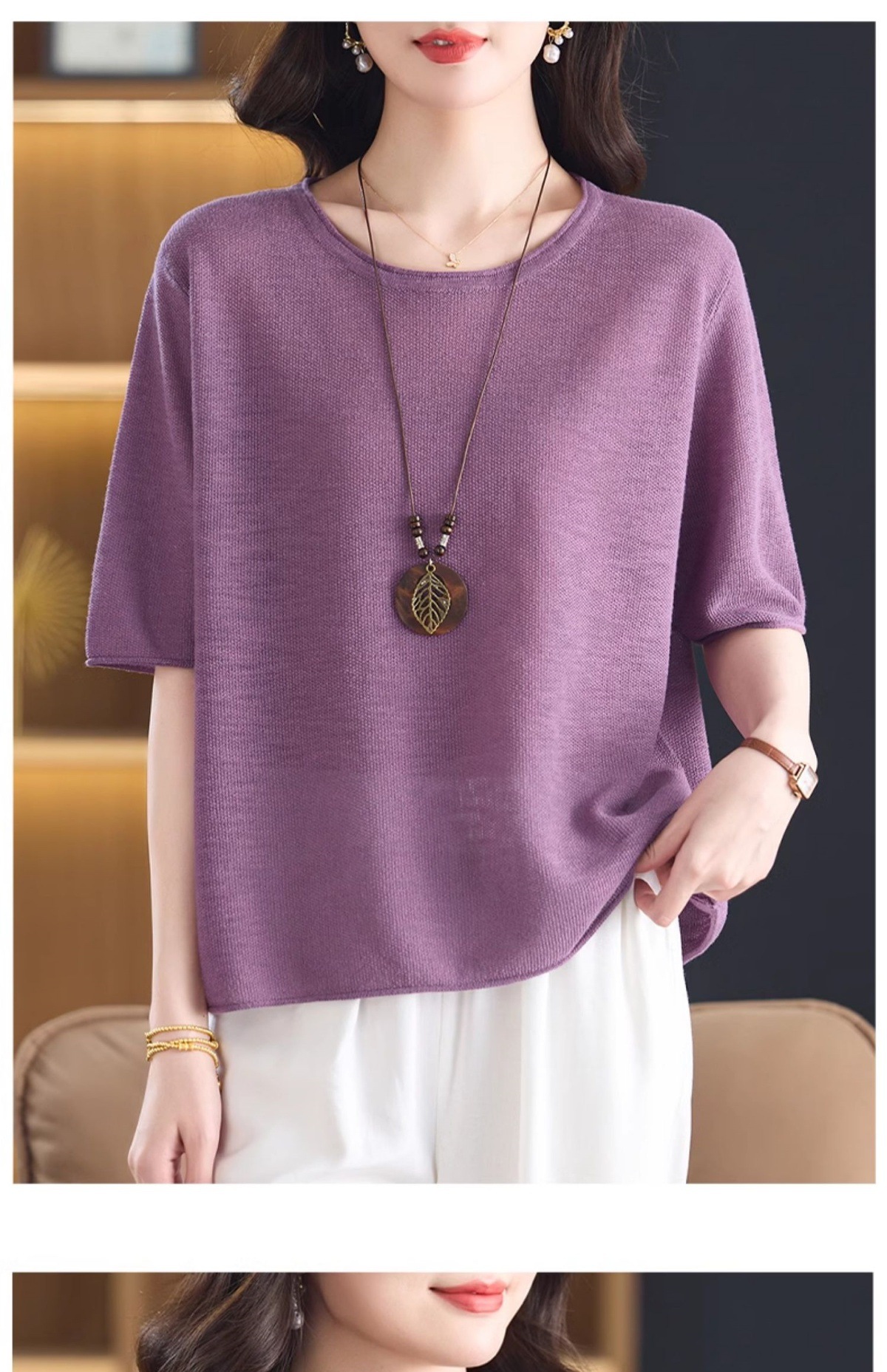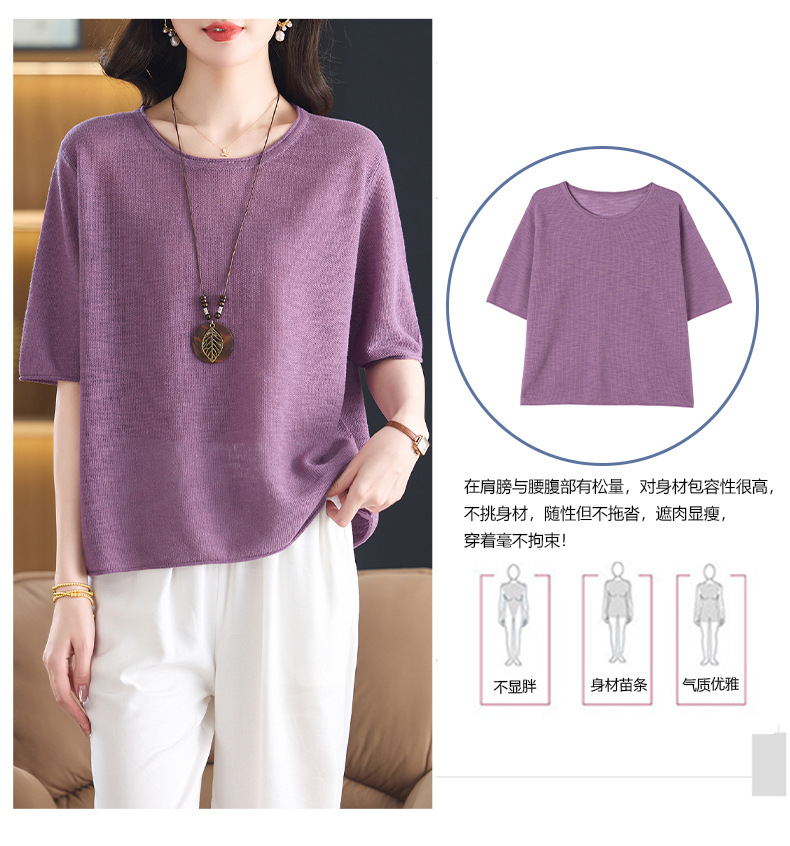 韩版纯色双面T恤,短袖薄款遮肚t冰丝宽松大码CC-5-6362