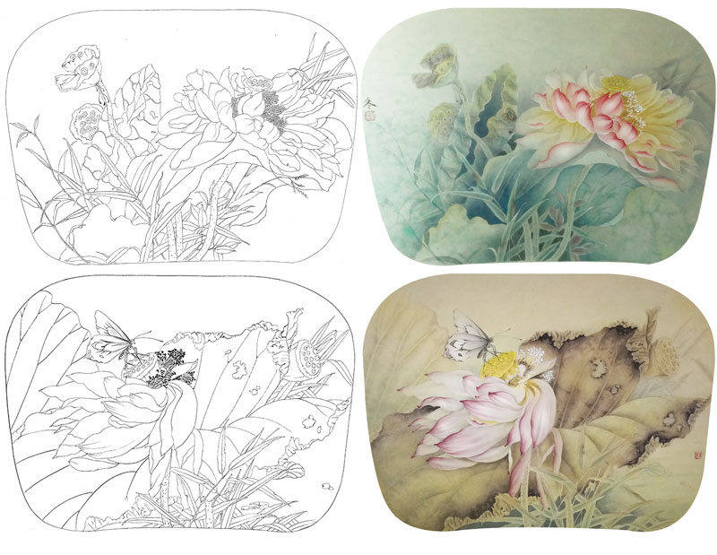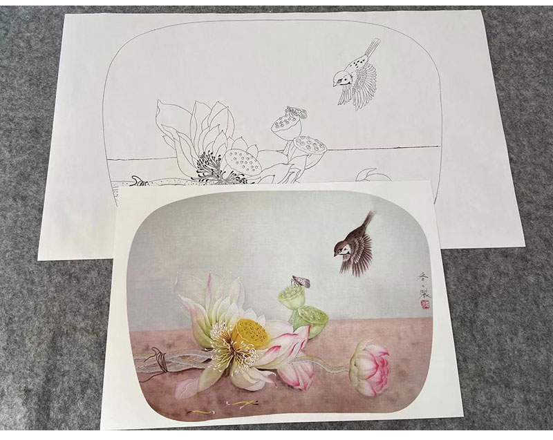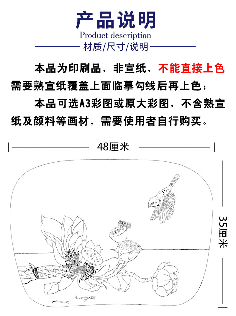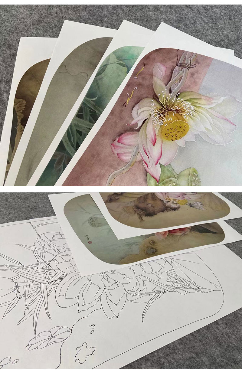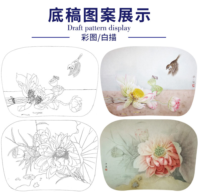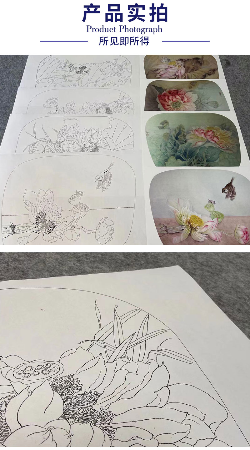 杨冬冬工笔画白描底稿荷花雀鸟一套四幅初学者尺寸35*48厘米TY06