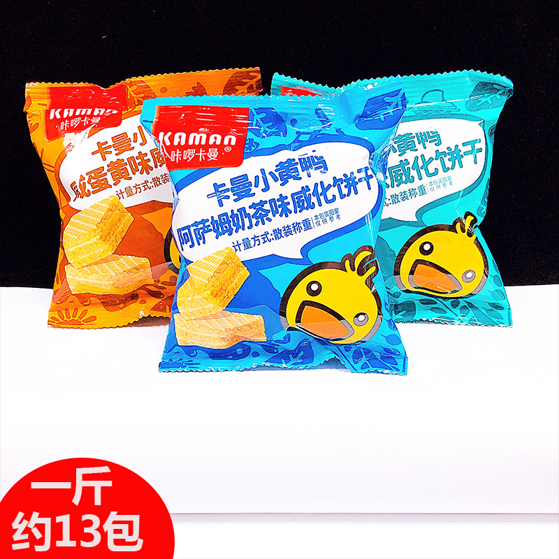 500g 散卡曼小黄鸭 海盐芝士味/咸蛋黄味/阿萨姆奶茶味/冰淇淋 威化饼干
