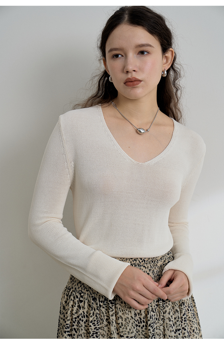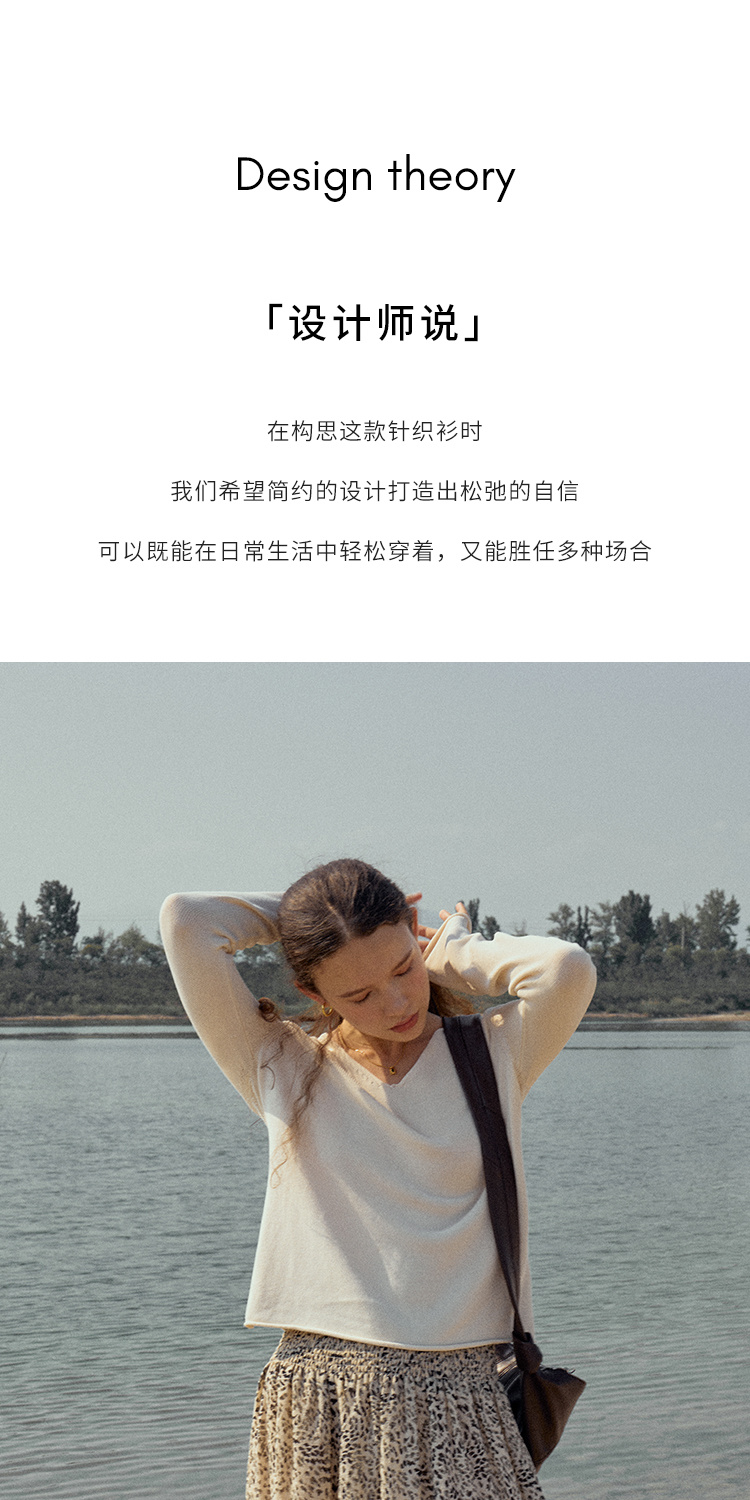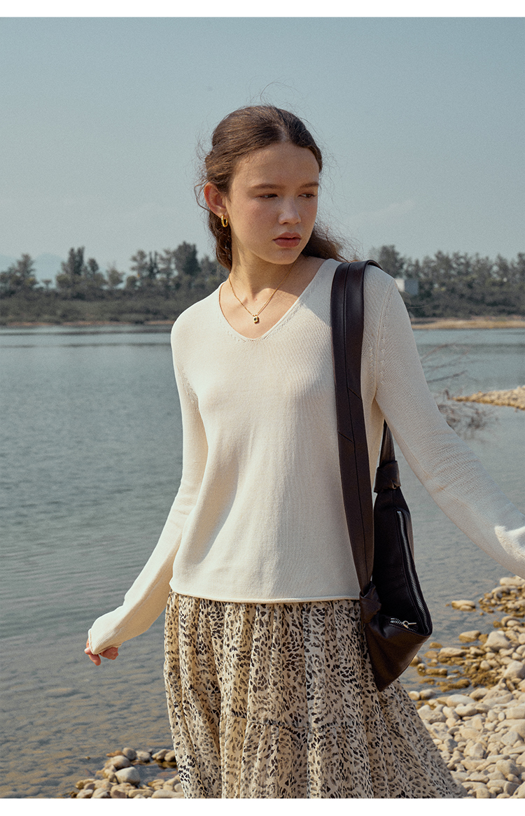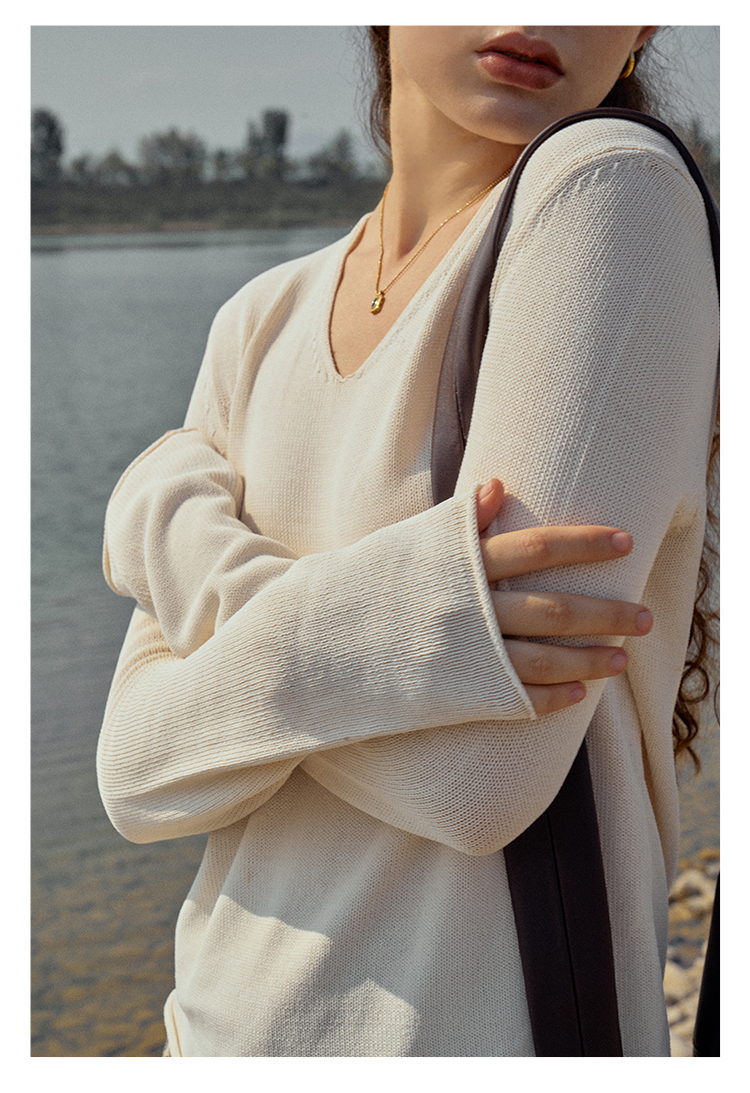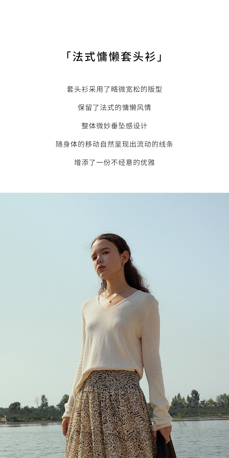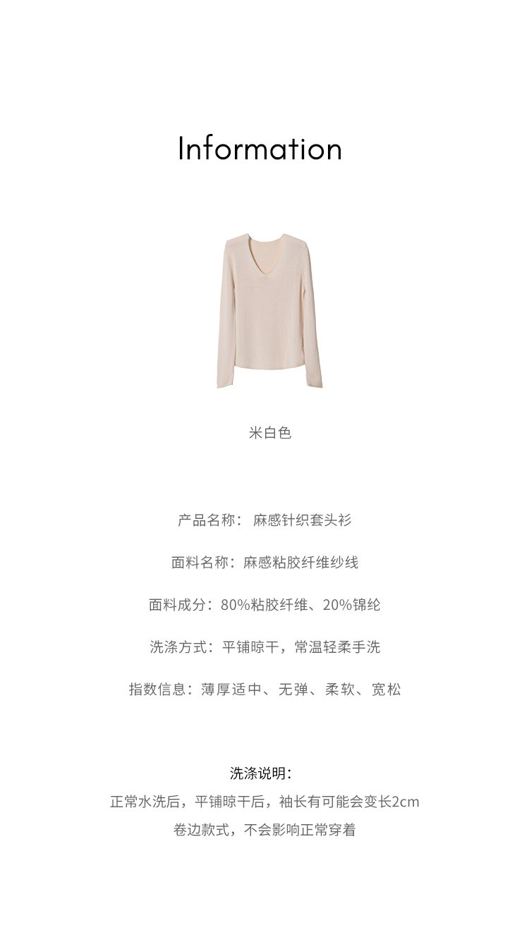 HeyDress麻感针织衫女春秋复古V领宽松慵懒休闲百搭套头气质上衣