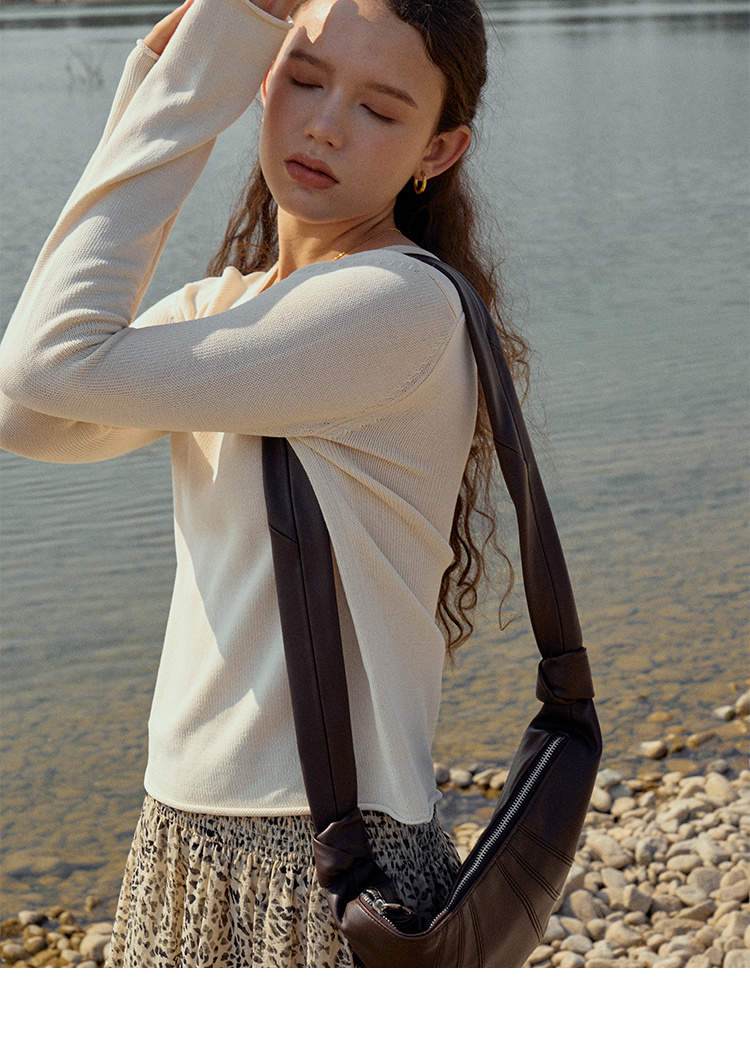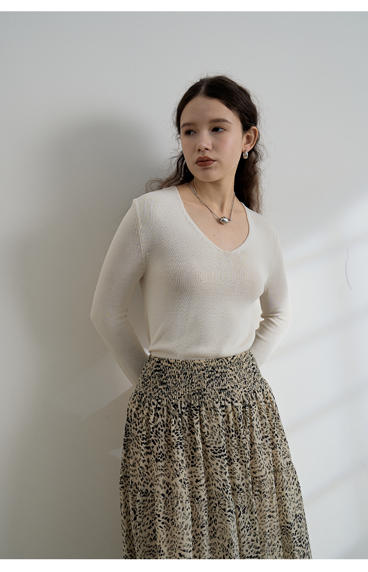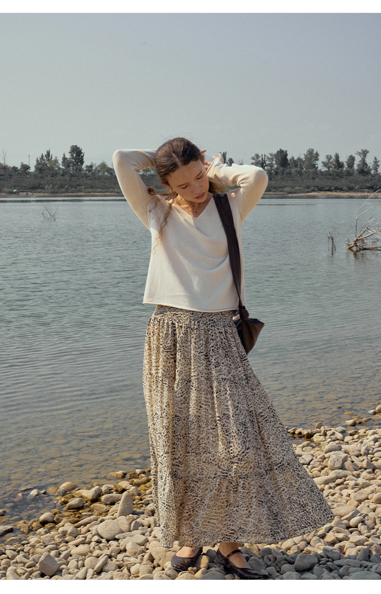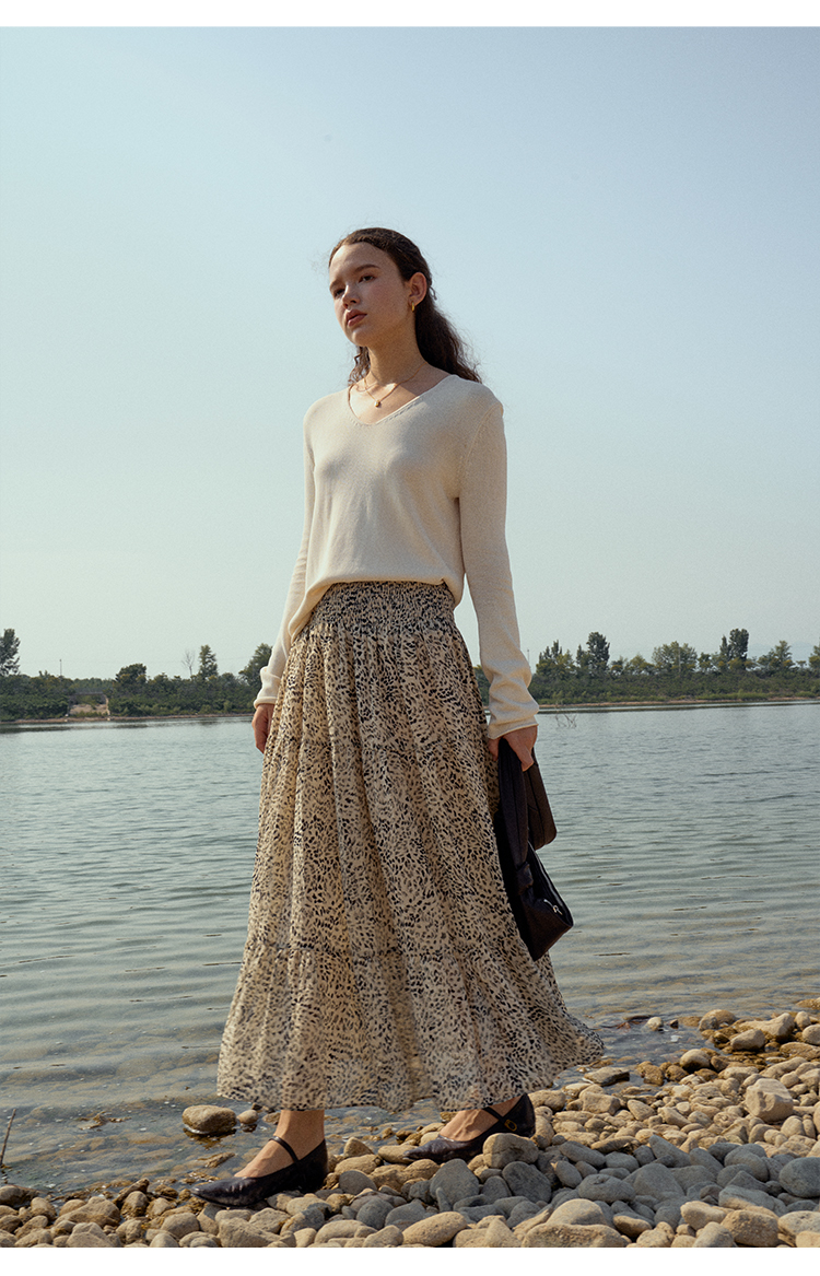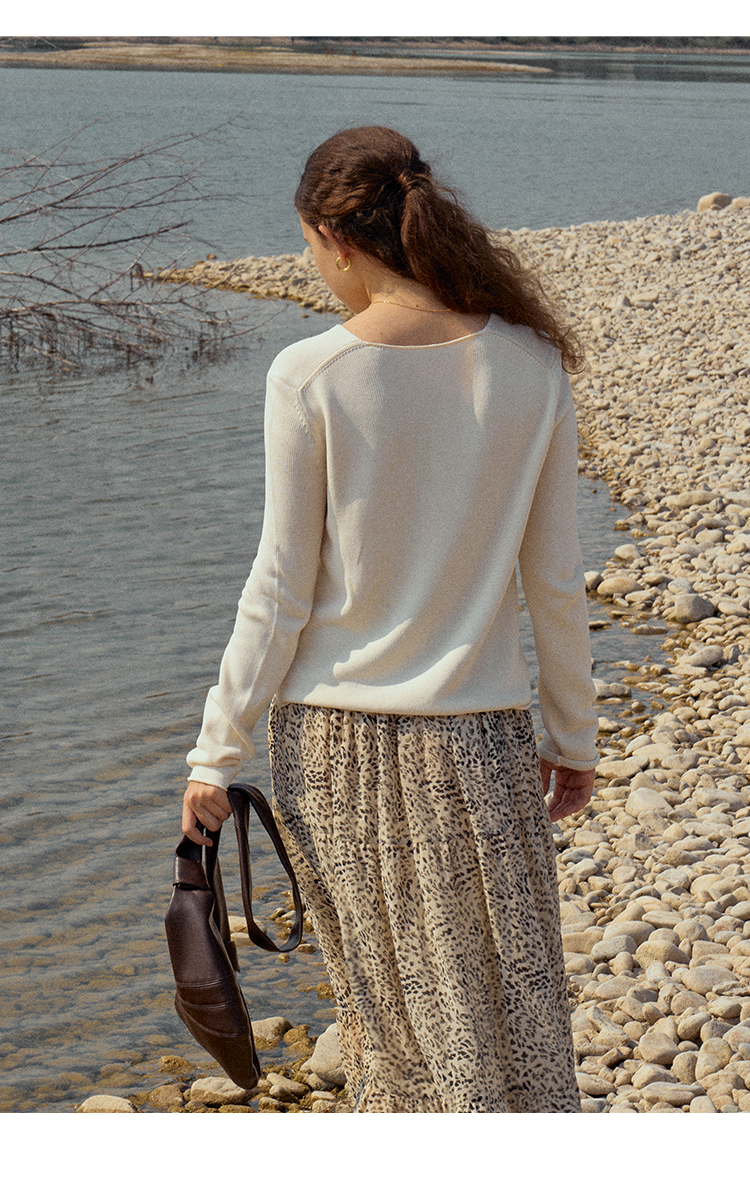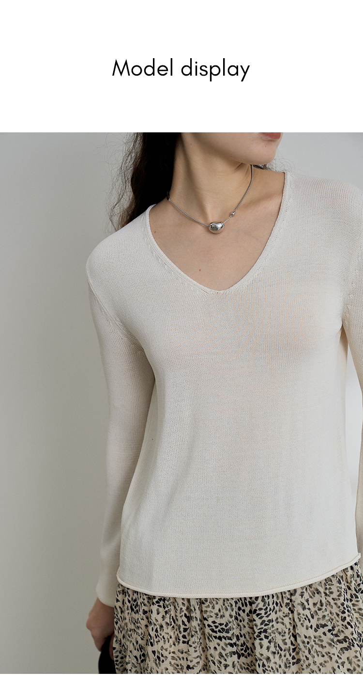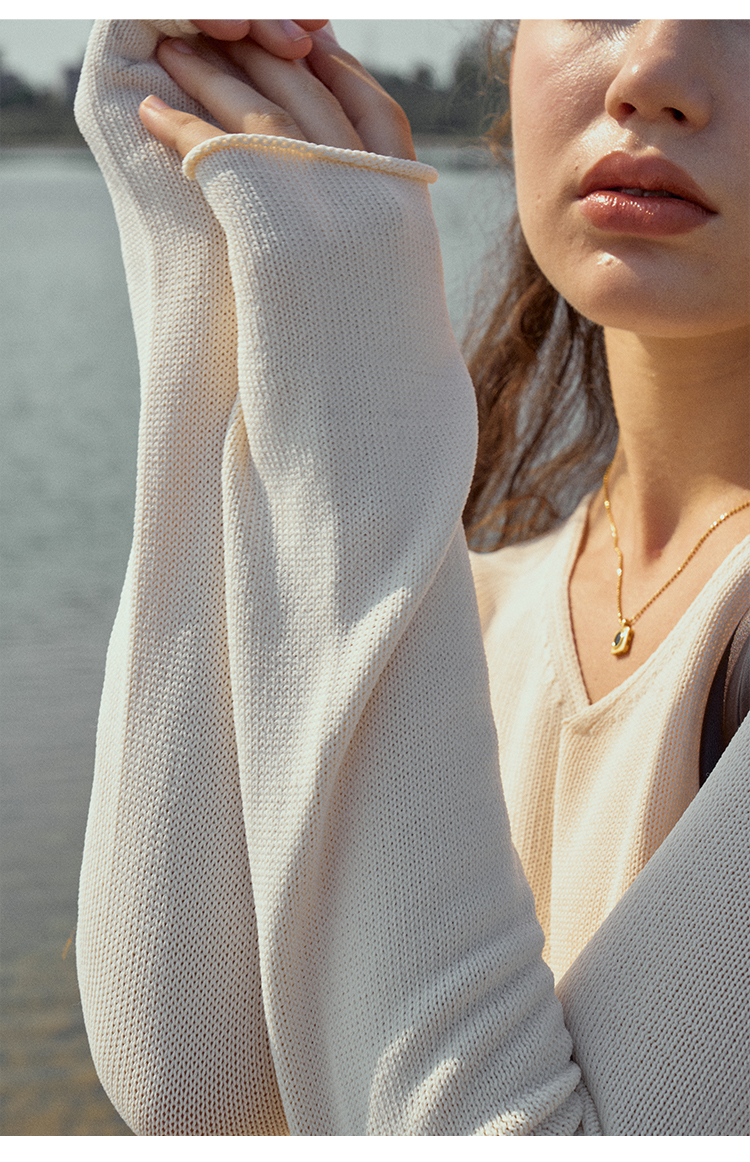 HeyDress麻感针织衫女春秋复古V领宽松慵懒休闲百搭套头气质上衣