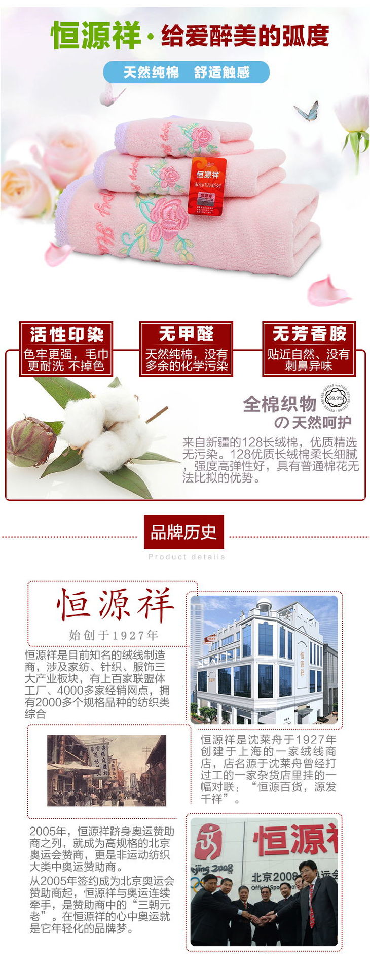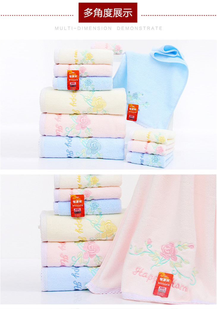 恒源祥无捻绣玫瑰面巾2条装2GT2353