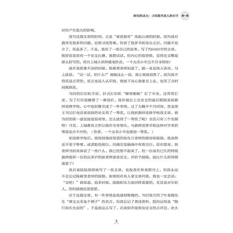 一位教师要在研究中成长,那他就要回答教师研究的“海尔迈耶十问”:你想做什么?已有的相关研究是怎样的?现在研究的局限何在?你的方法有何新意,为什么会成功?谁会关心你的研究?如果你成功了,你的工作会带来什么改变?此项目的风险和回报是什么?要多少成本?花多少时间?有无中期检查和终题检查能检验它是否成功?本书以一线教师二十余年的研究实践,对上述问题做出了自己的回答,为一线教师在专业成长中如何具备研究意识、研究方法、研究能力、研究氛围等提供了可资借鉴的操作经验。