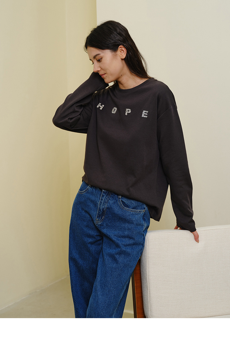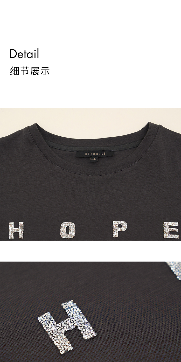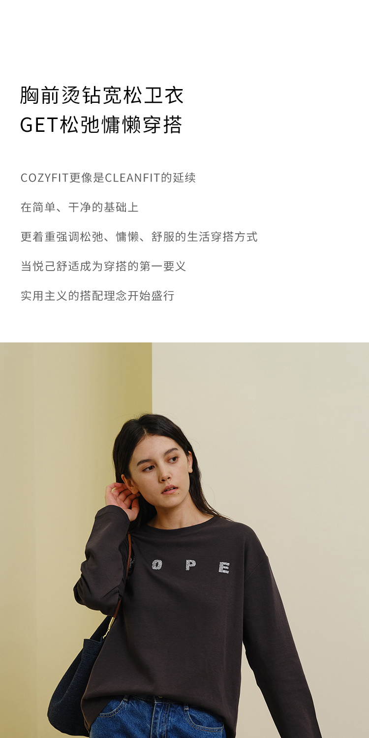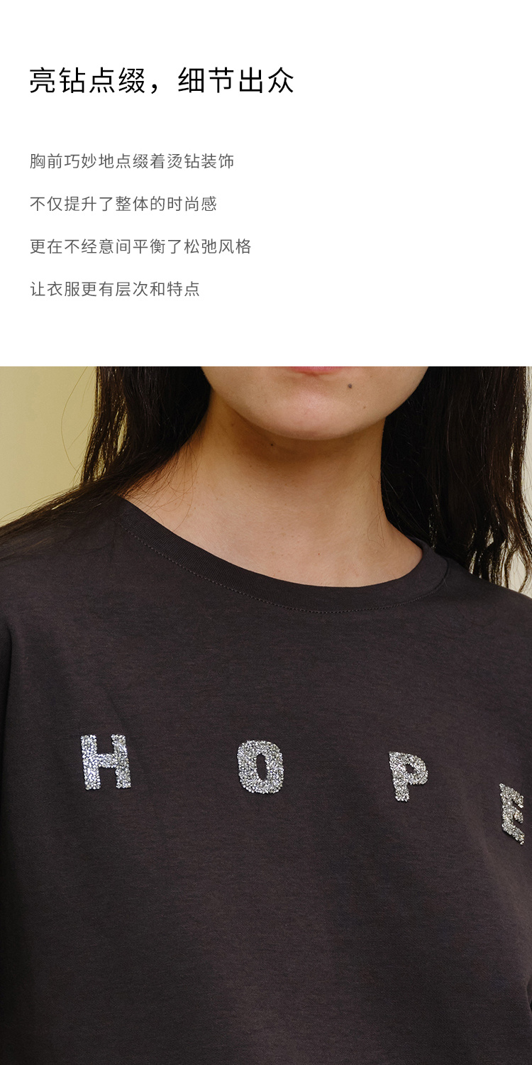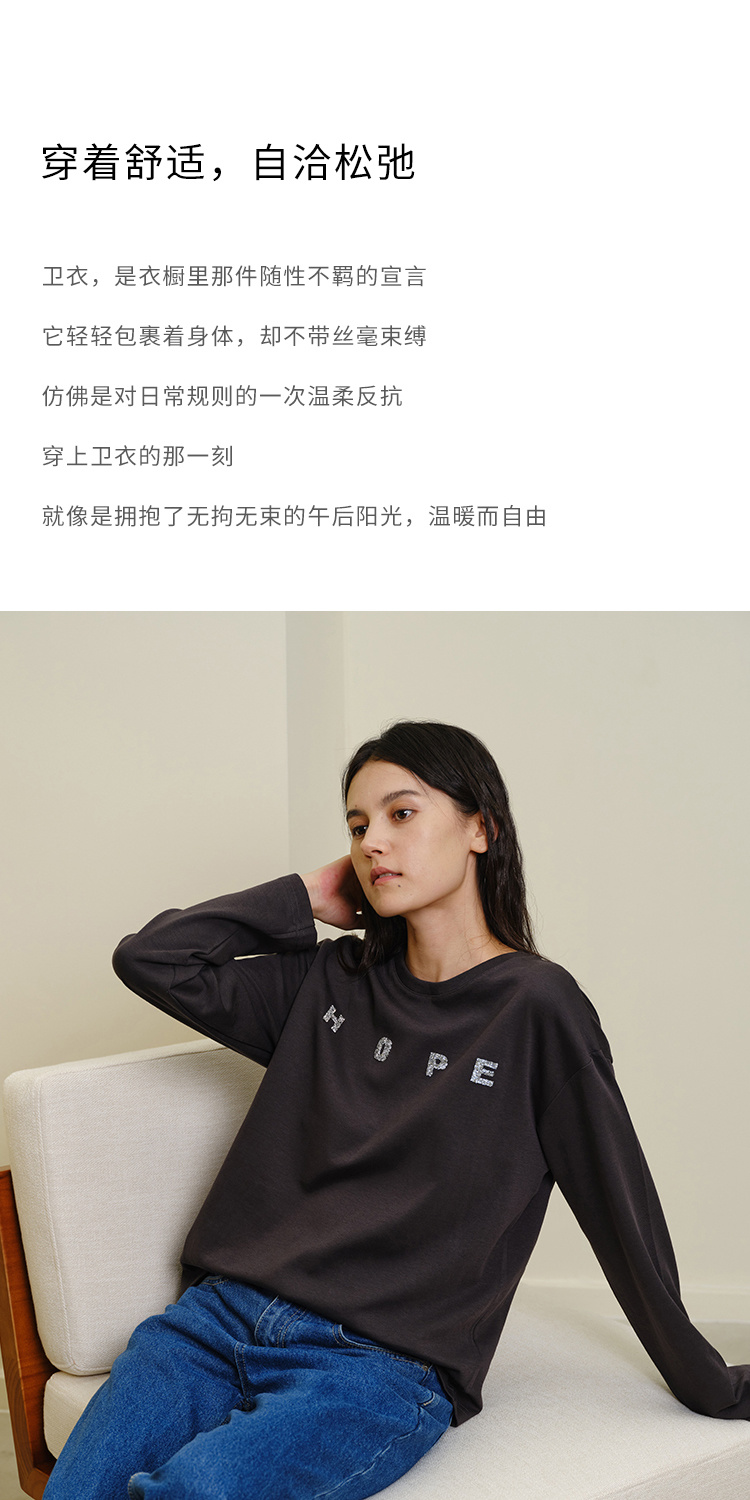 HeyDress灰色卫衣女秋季圆领宽松烫钻简约休闲慵懒百搭长袖上衣