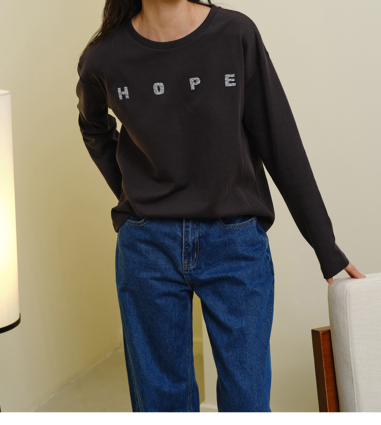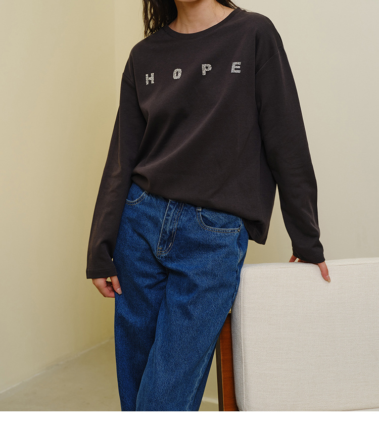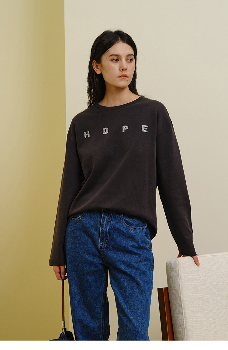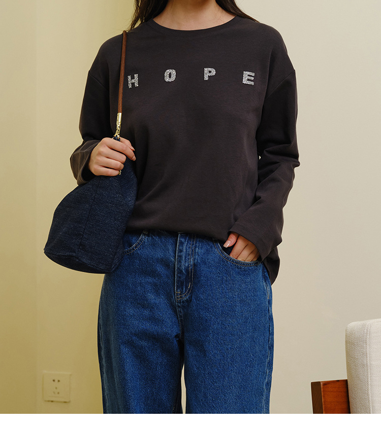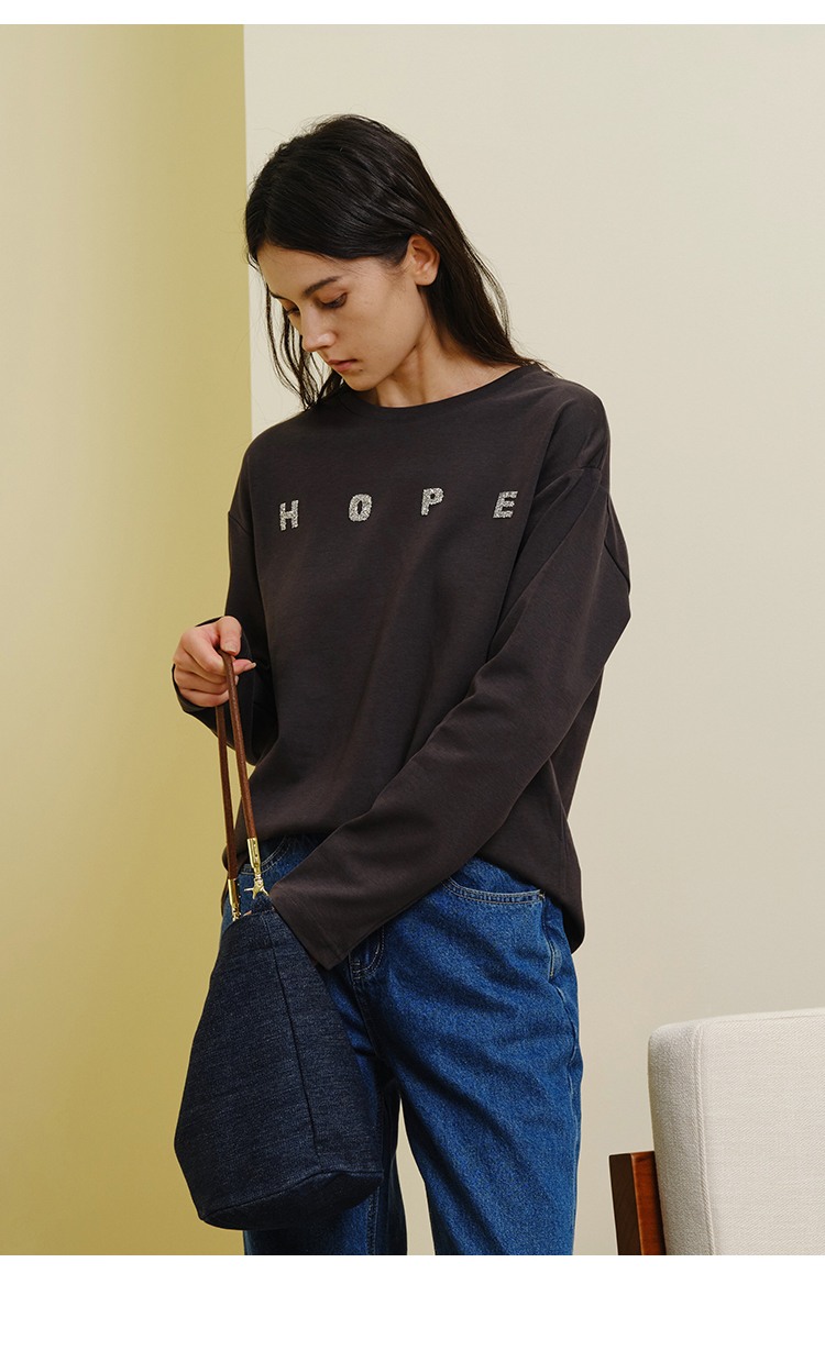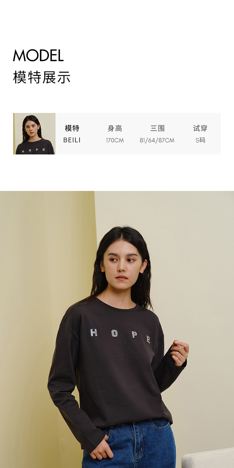 HeyDress灰色卫衣女秋季圆领宽松烫钻简约休闲慵懒百搭长袖上衣
