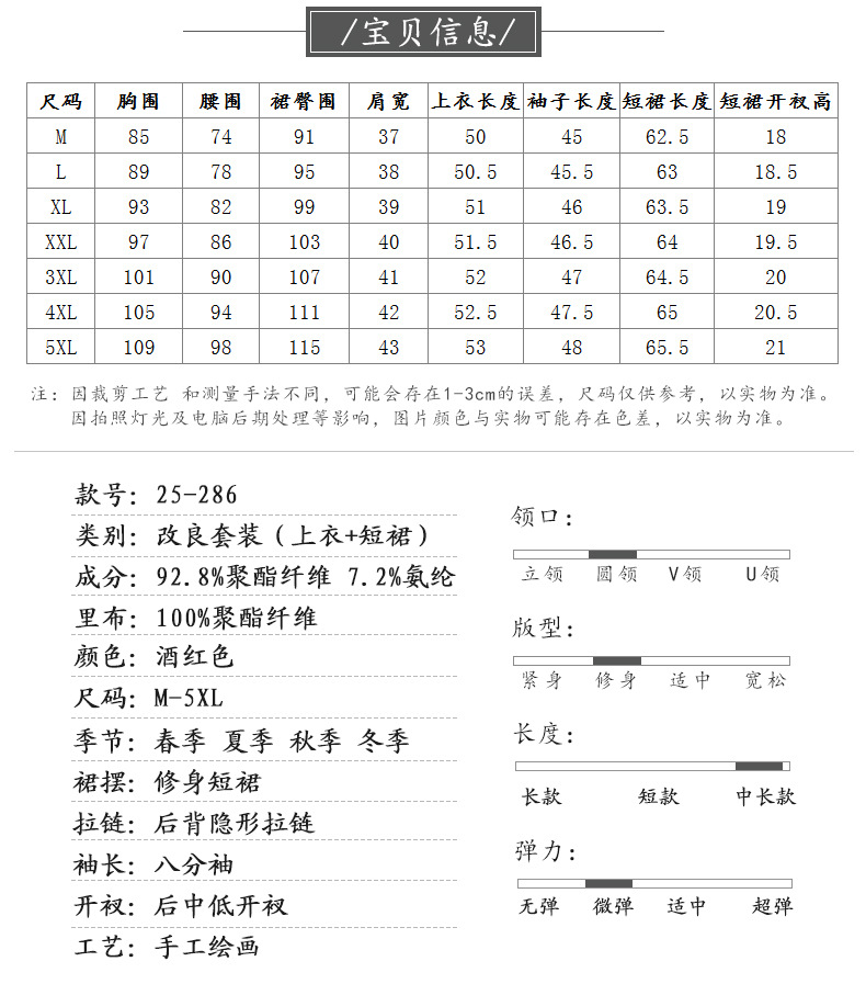 HYX圆领上衣短裙旗袍套装两件套改良版时尚敬酒服日常穿