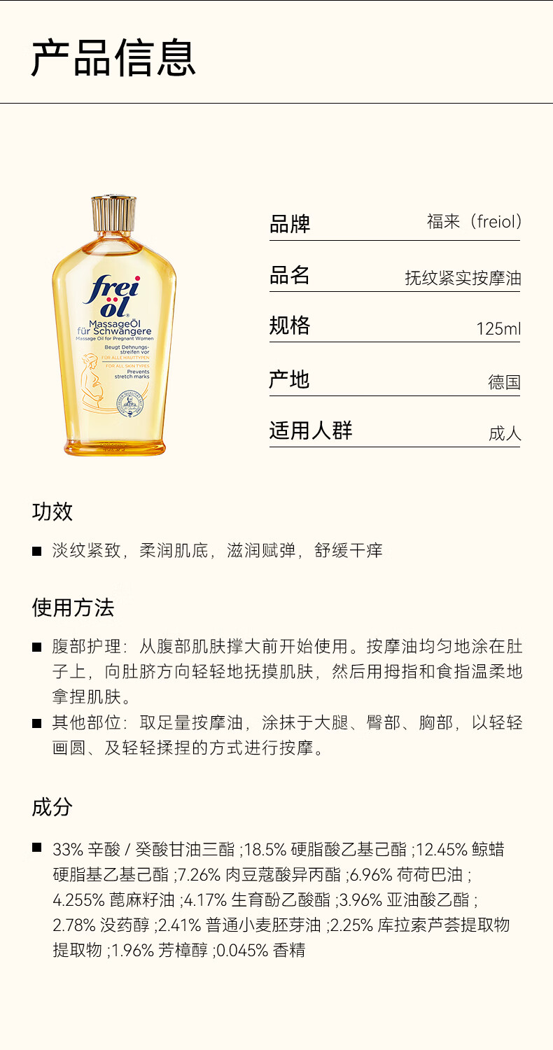 专柜238 德国FREIOL福来油 身体精华油125ml 润而不油