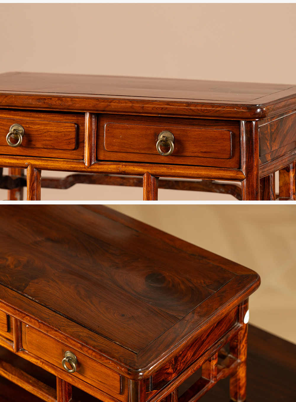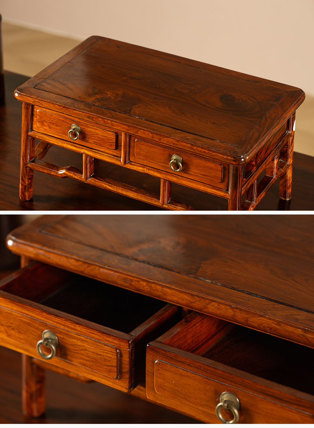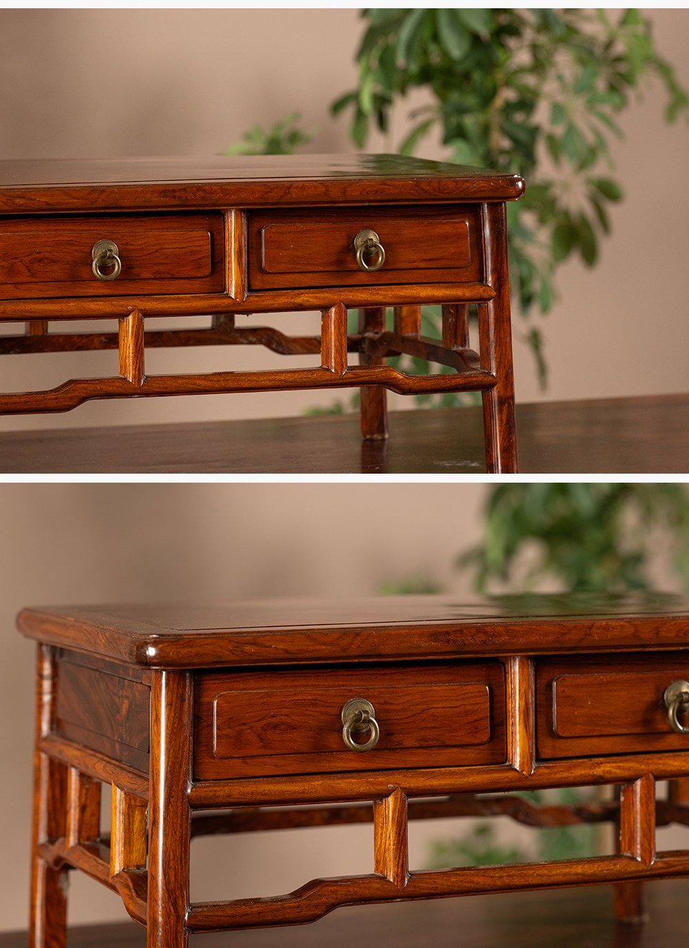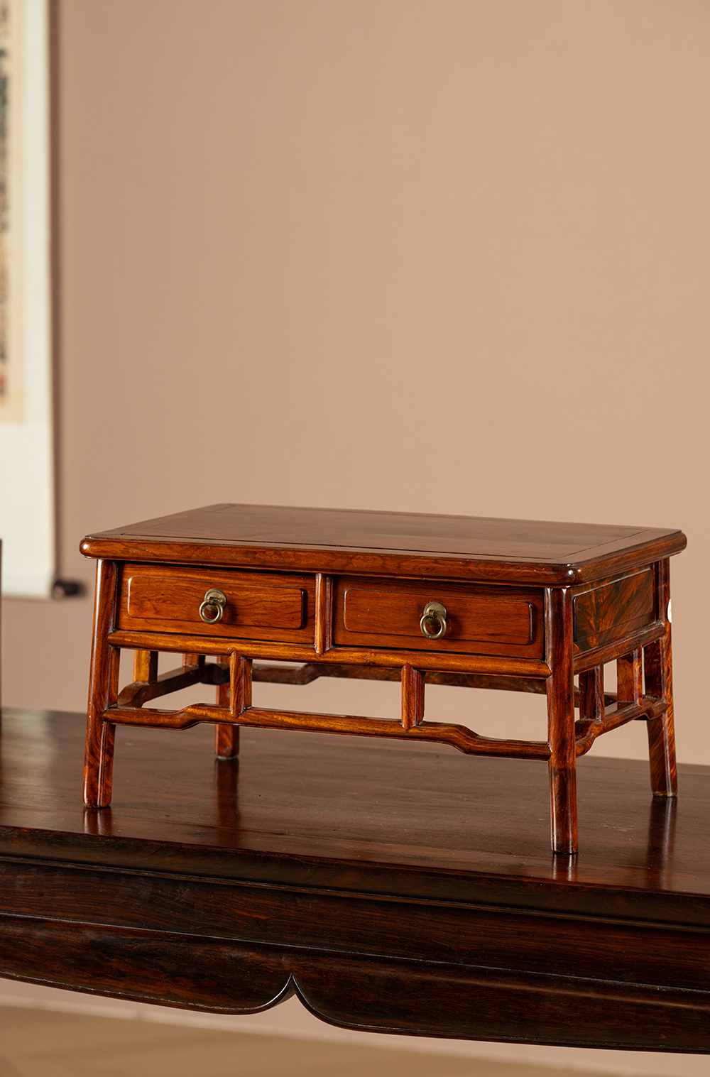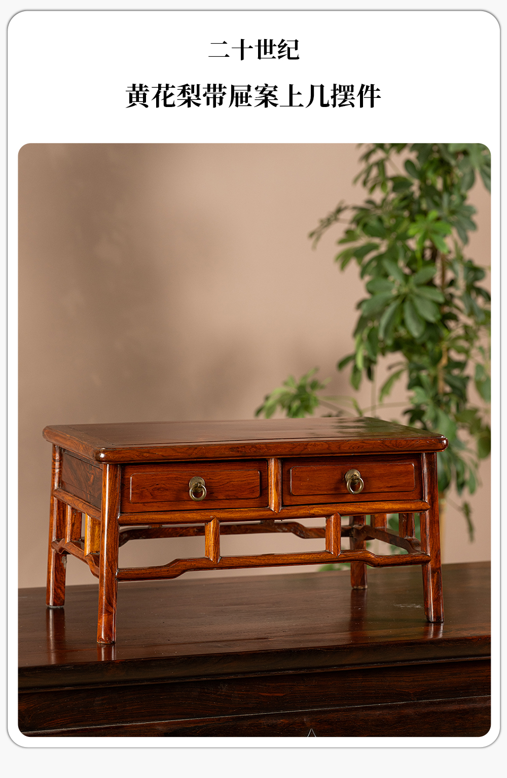 二十世纪 黄花梨带屉案上几摆件