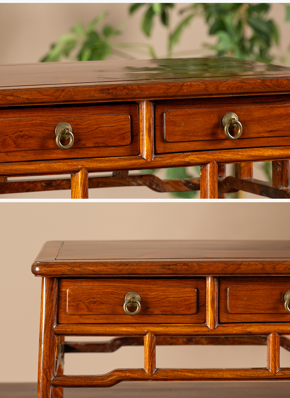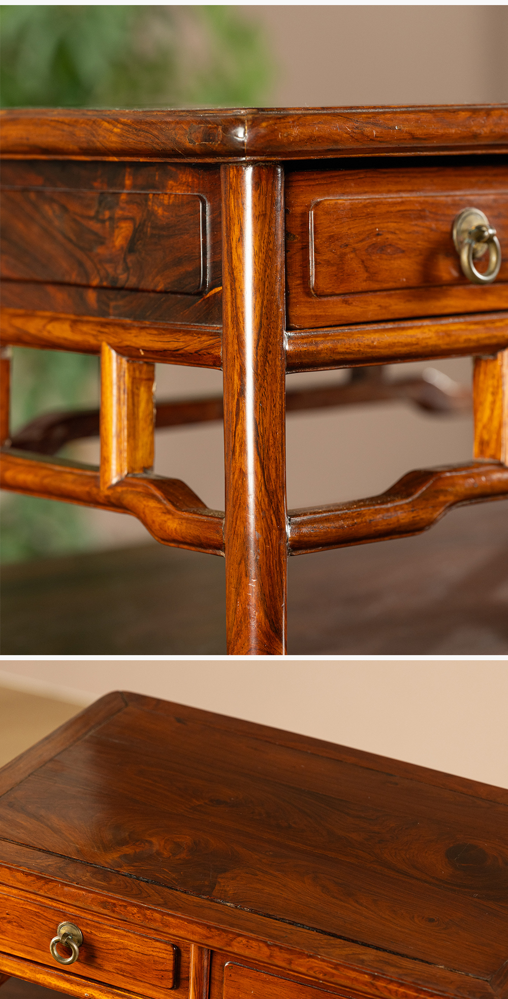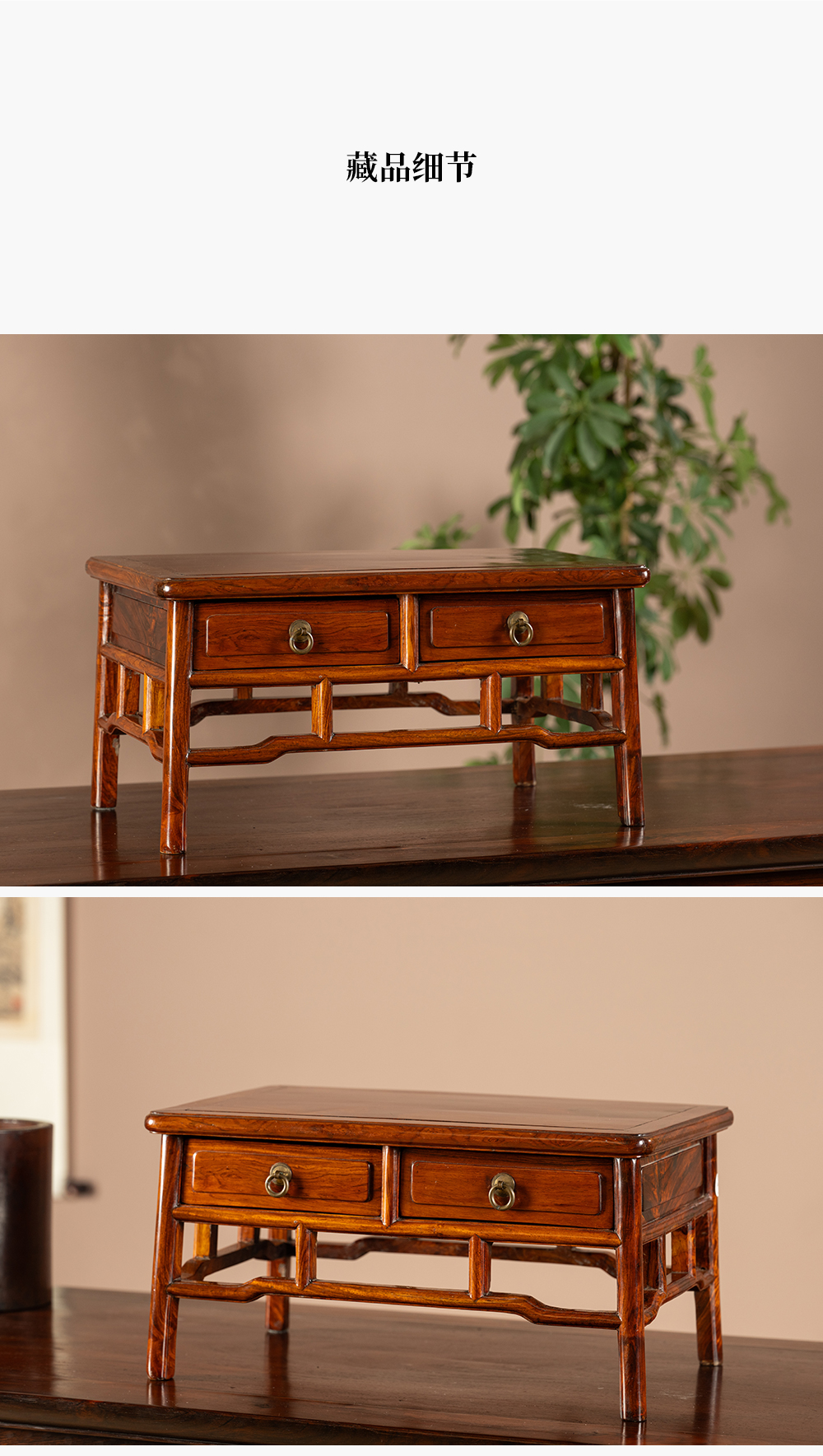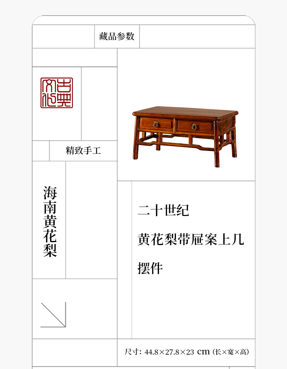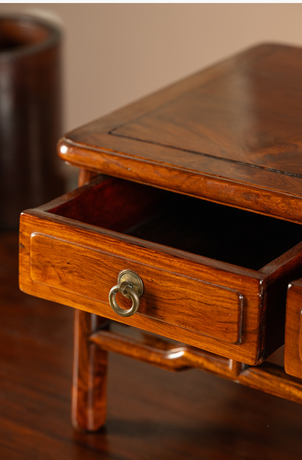 二十世纪 黄花梨带屉案上几摆件