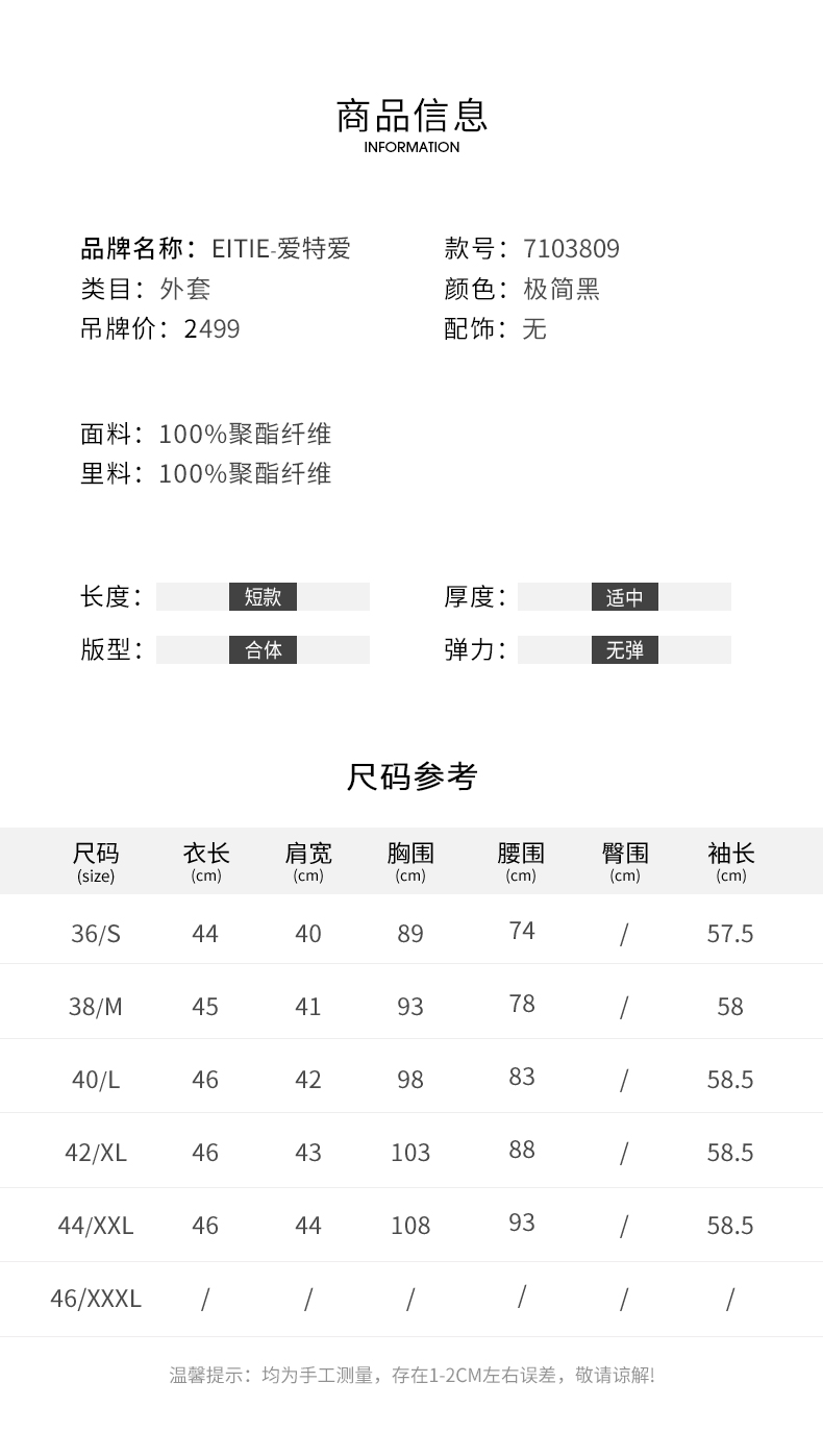 EITIE爱特爱秋季新款翻领洋气显瘦短款外套7103809